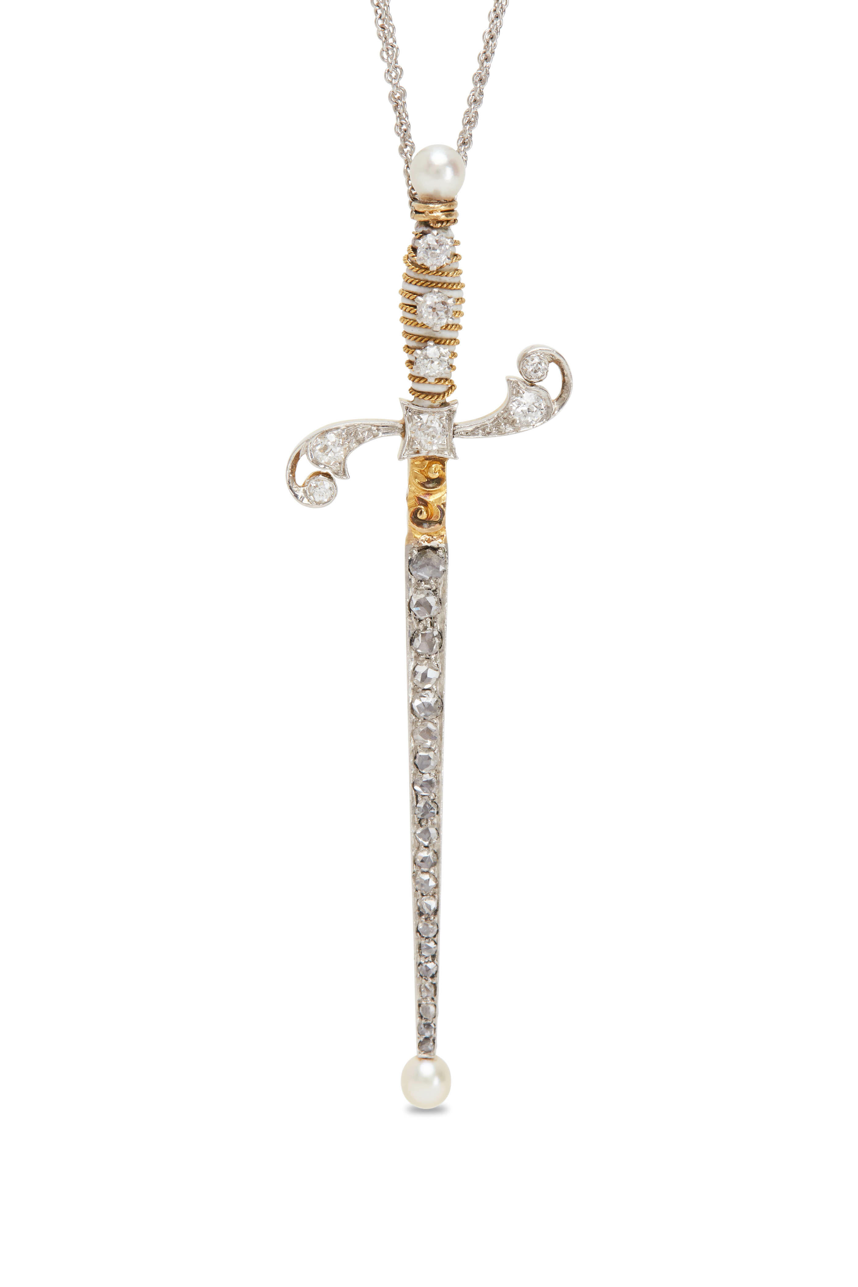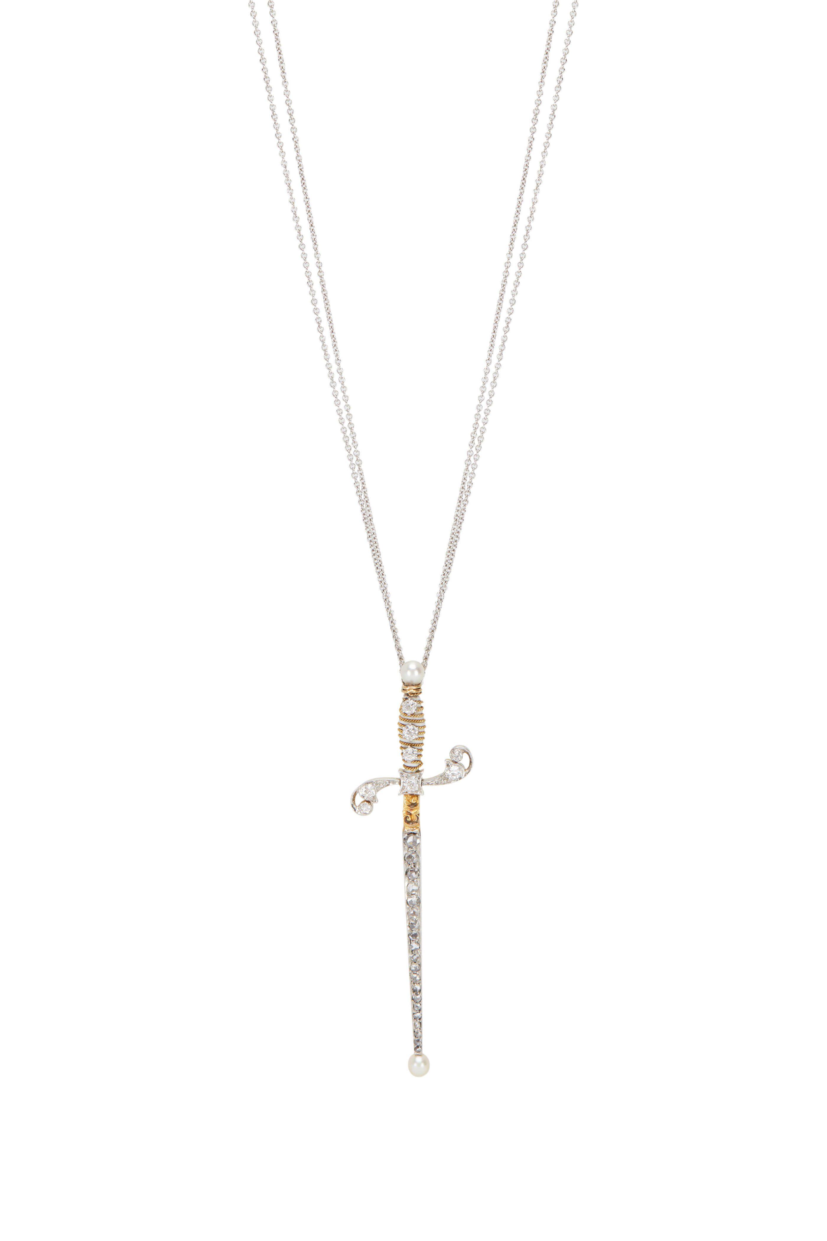 White Gold Two Chain Diamond Sword Charm Necklace