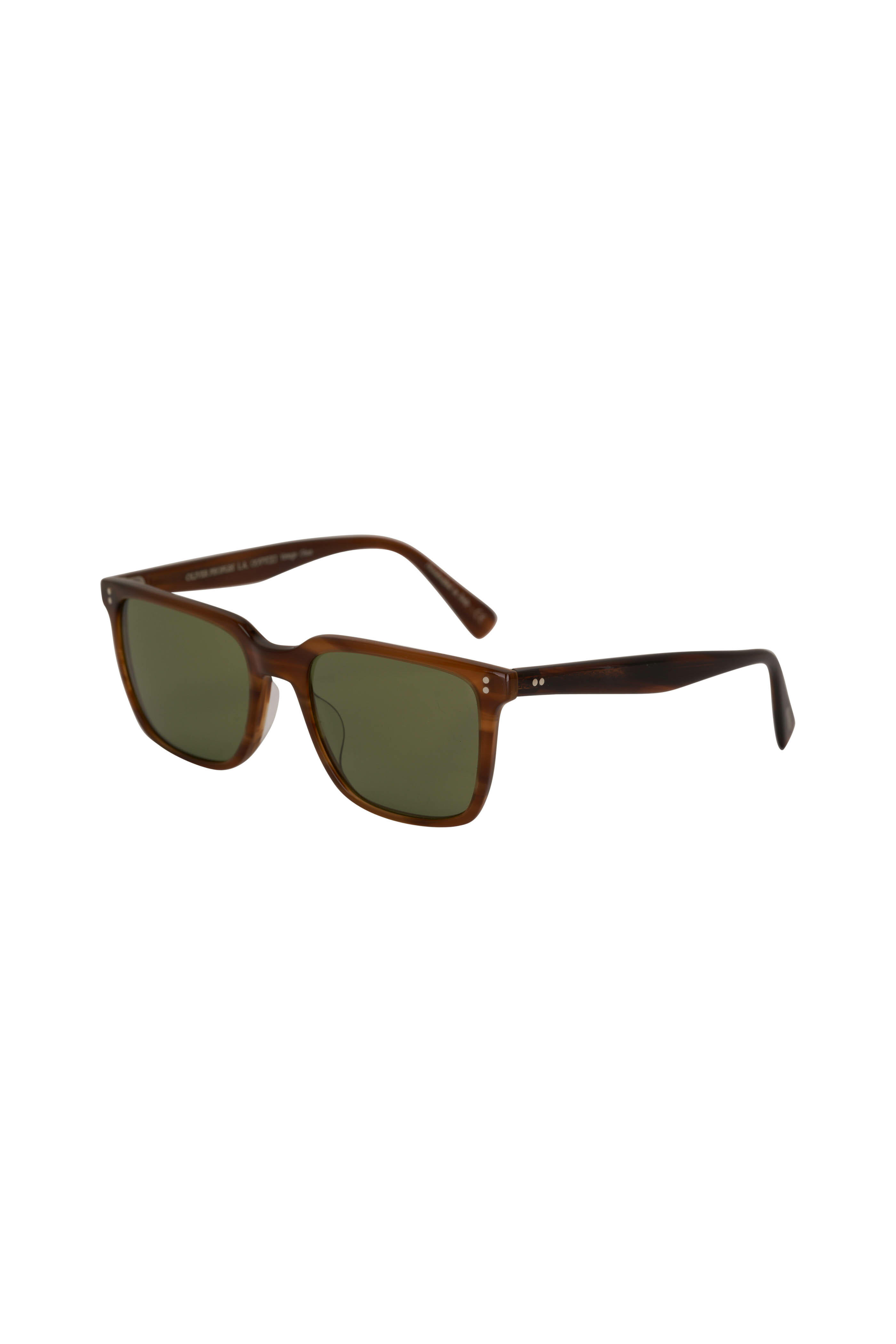 Frame material: acetate. Frame color: auburn. Frame fit: squared frame. Lens type: glass. Lens color: raintree green. Made in Italy. 100% UV protection.