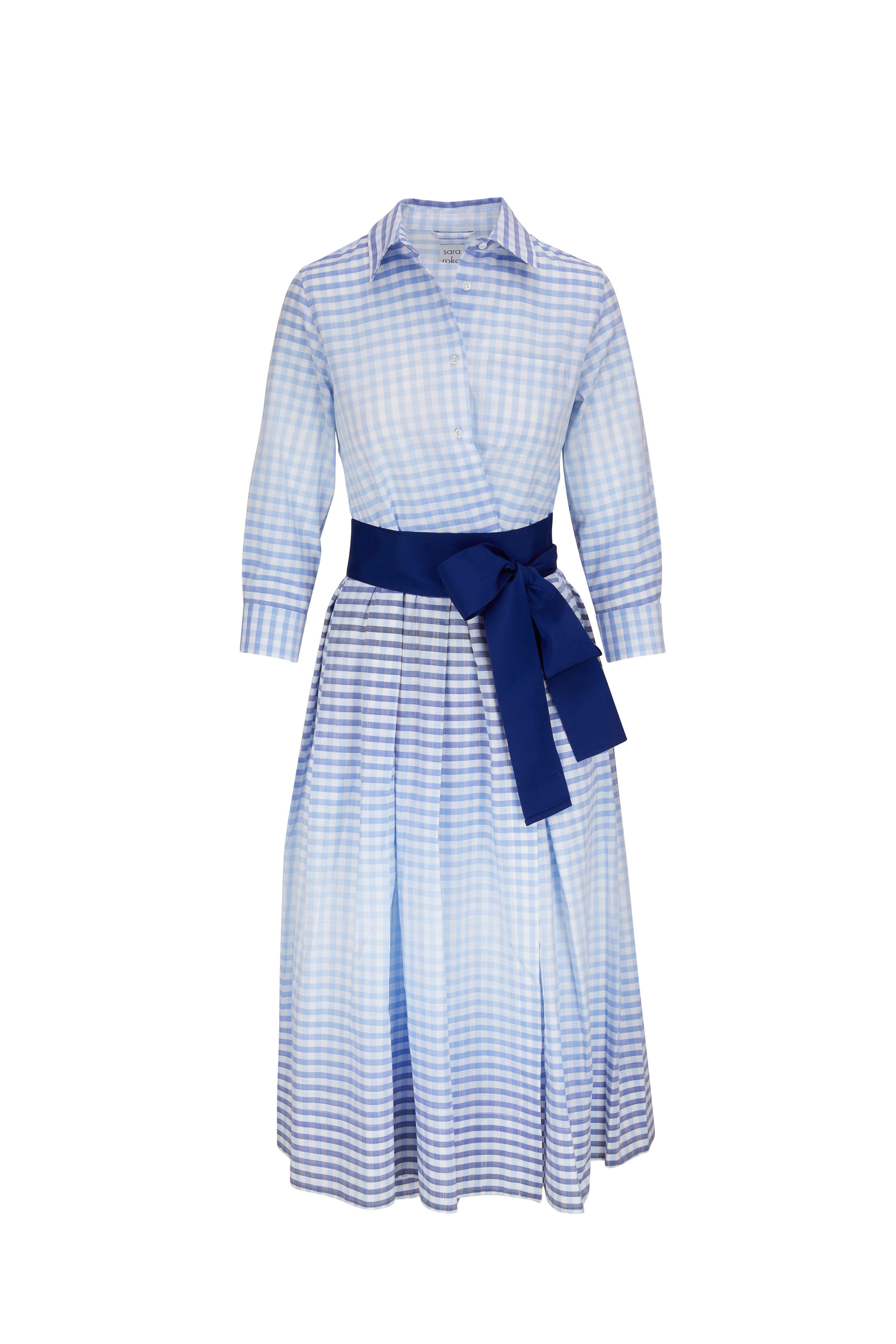 Elenat Light Blue, Navy & White Check Dress