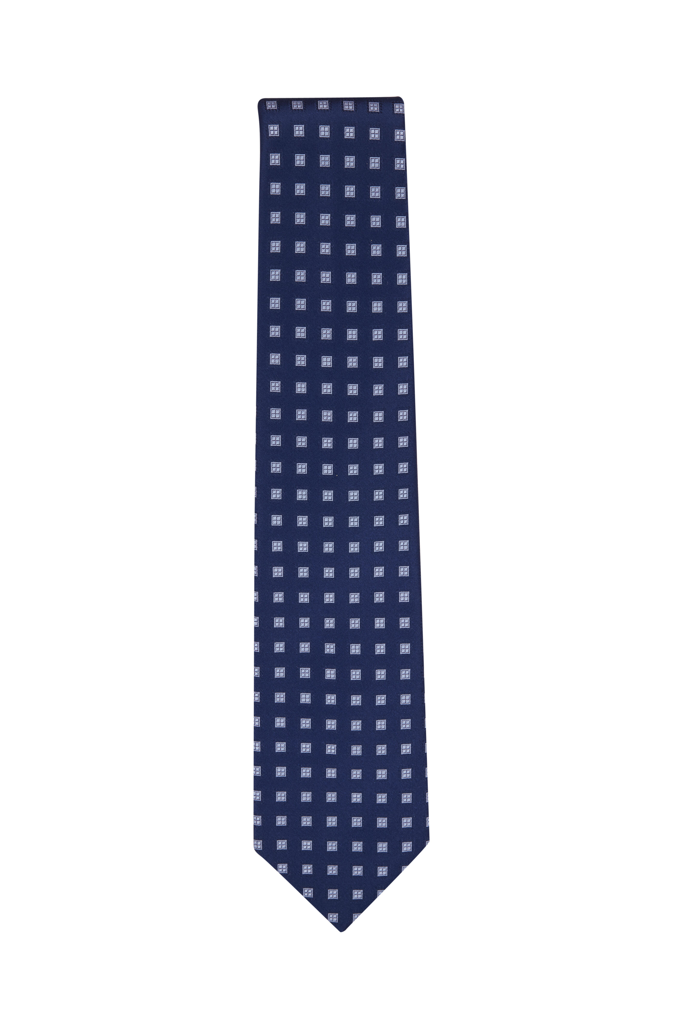 Navy & Blue Geometric Print Silk Necktie