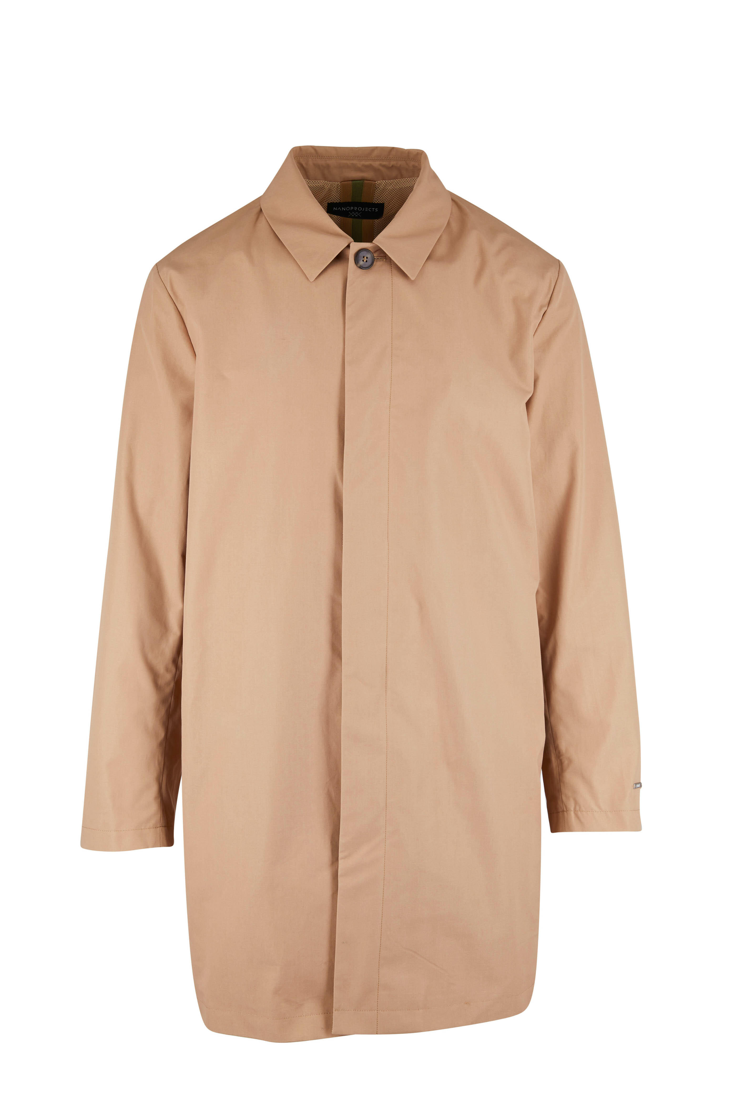 Spread collar. Button placket. Lower snap pockets. Back vent. Made in Portugal. 100% cotton; lining: 100% polyamide. Dry clean.