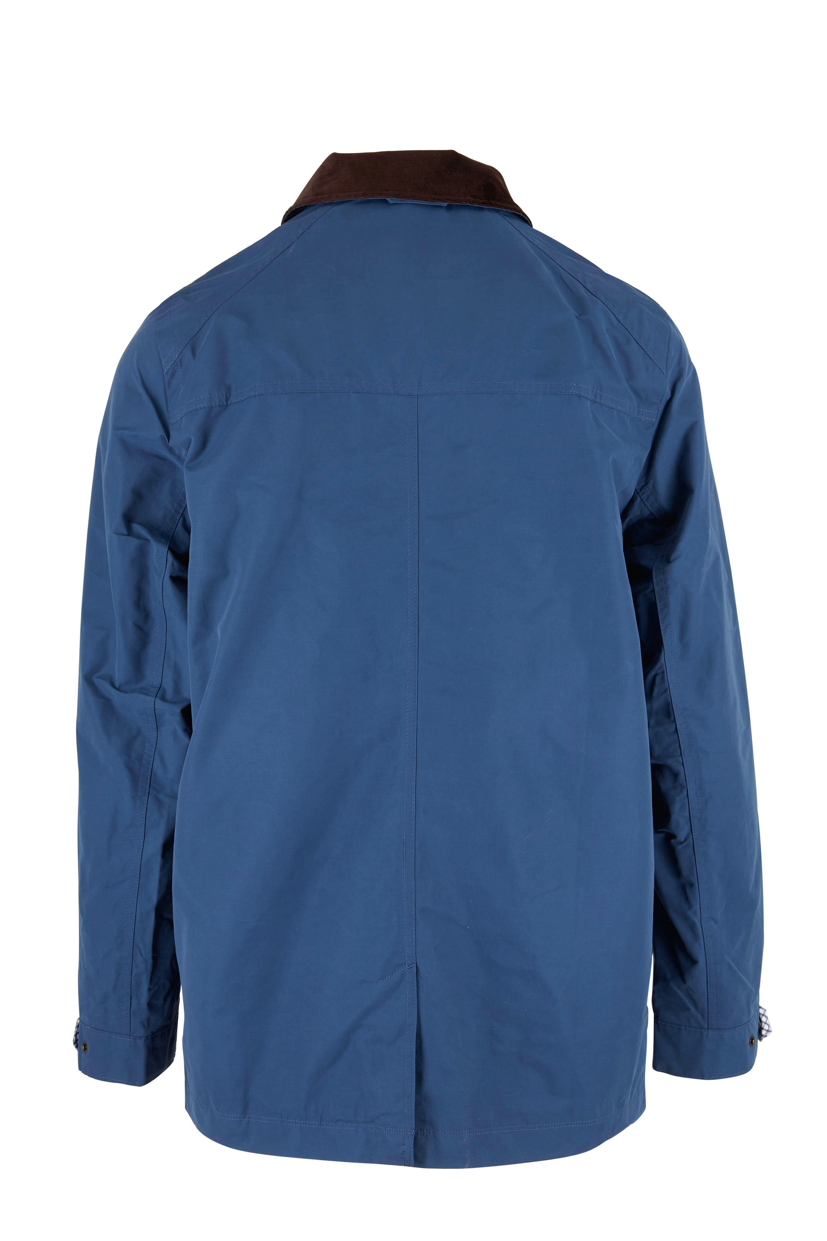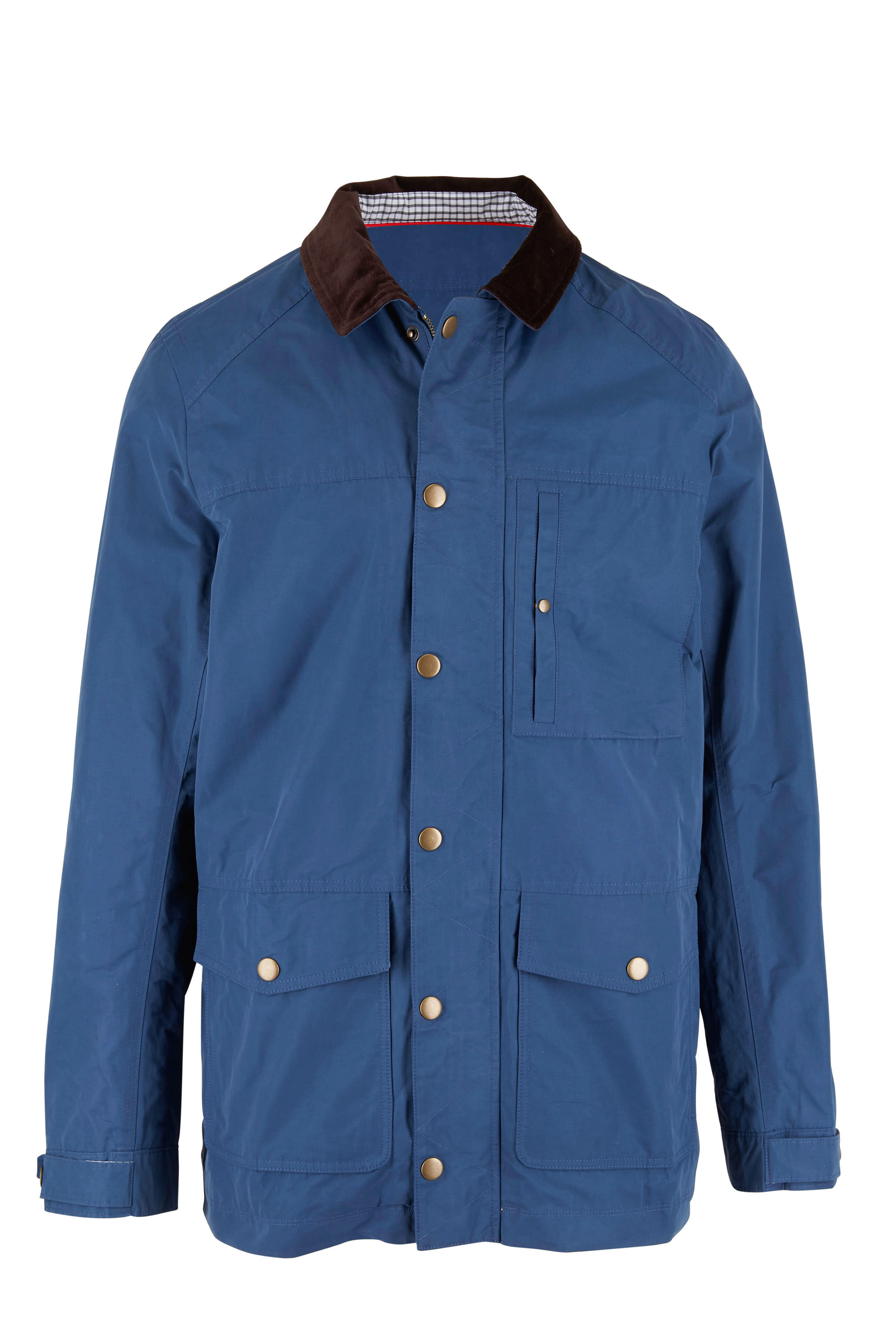 Corduroy, spread collar. Zip & front snap placket. Side slip pockets; front patch pockets; chest snap pocket; interior patch pocket. Vented hem. Imported. 42% nylon, 58% cotton; lined; 100% polyester. Dry clean.