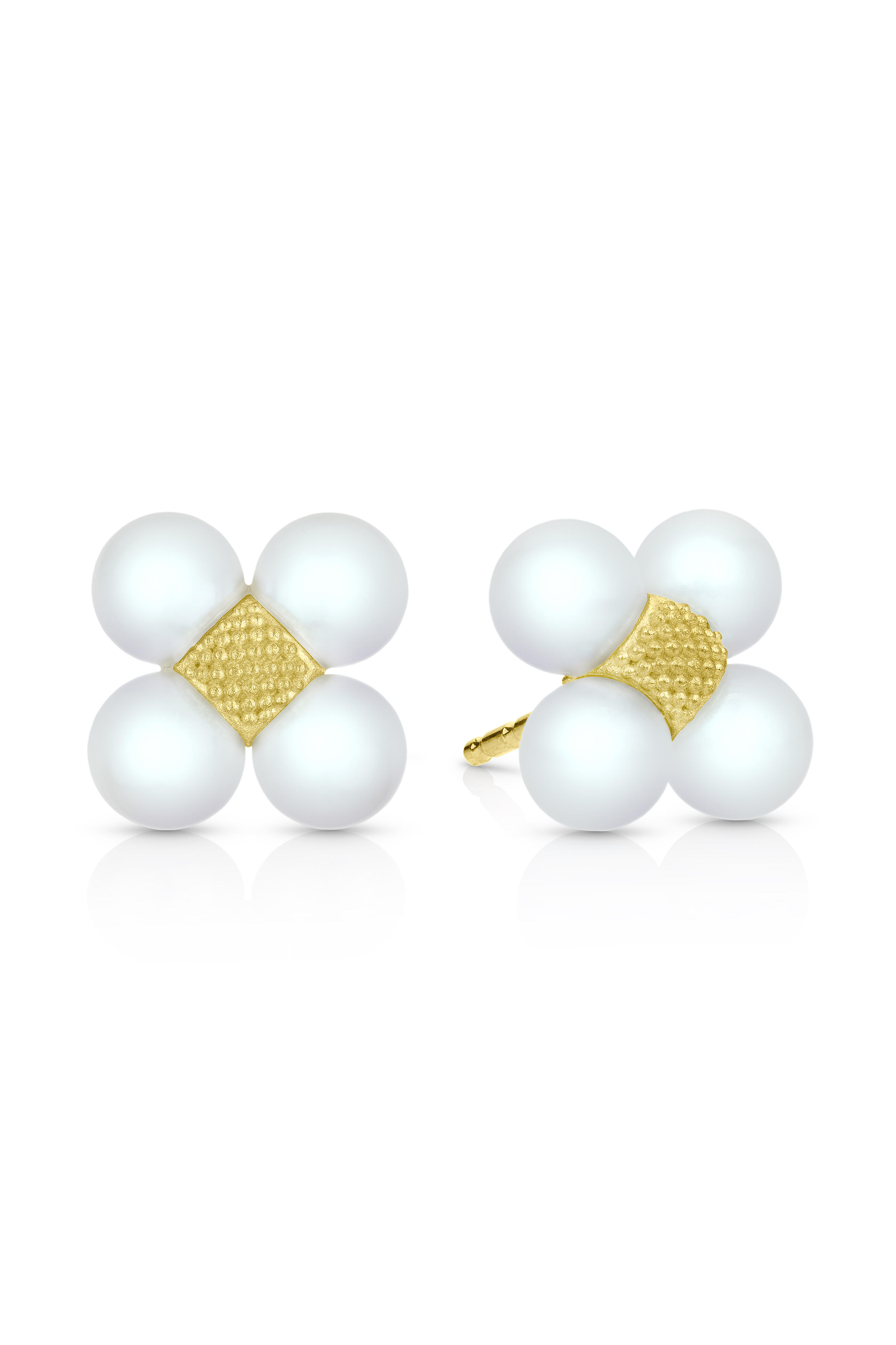 Sequence Collection. 18K Yellow Gold. 8 Akoya Pearls: 5 mm. Secure Post/Clutch.