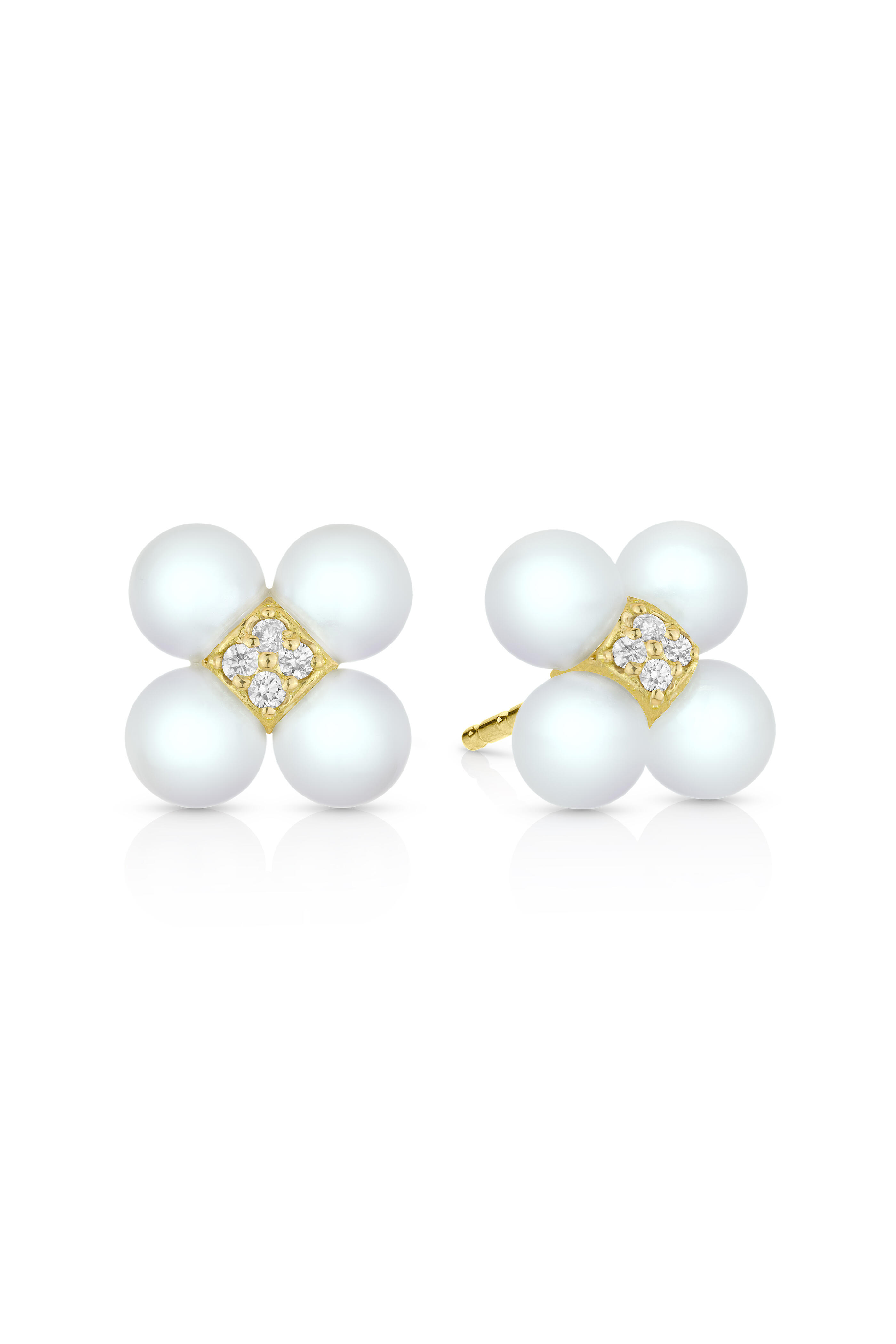 18k Yellow Gold Pearl & Diamond Stud