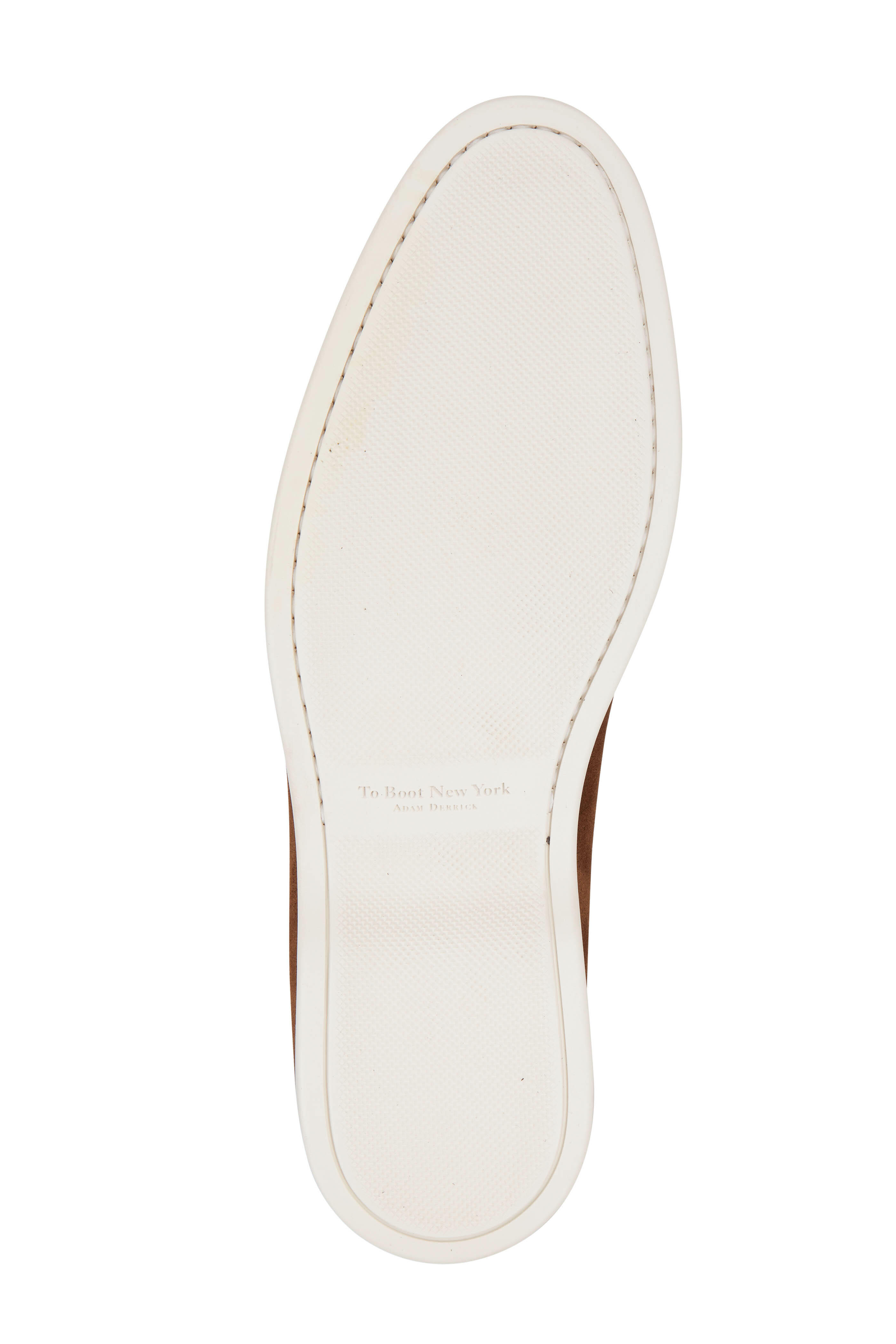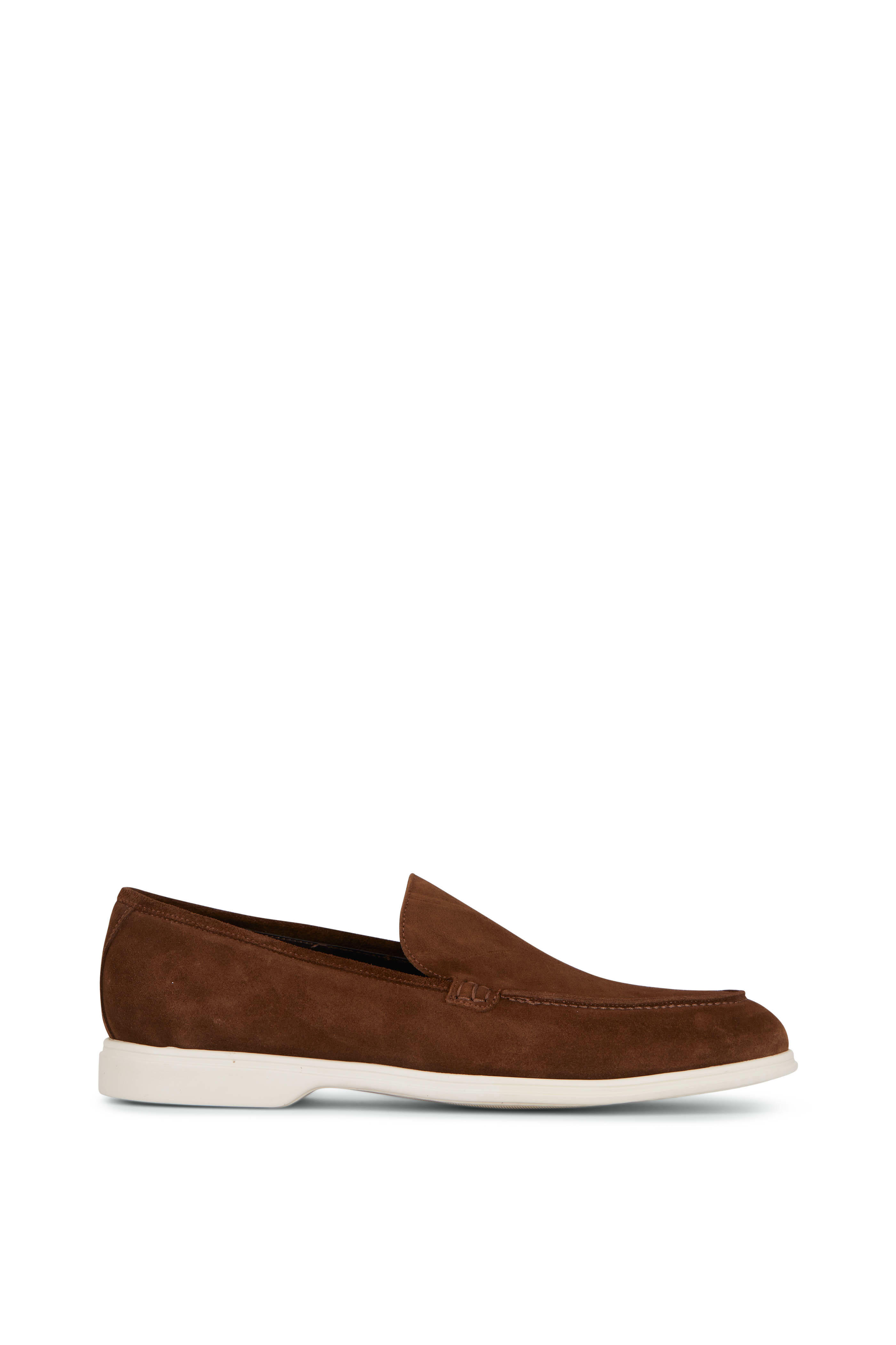 Suede upper. Moc toe. Leather lining and insole. Rubber sole. Made in Italy.