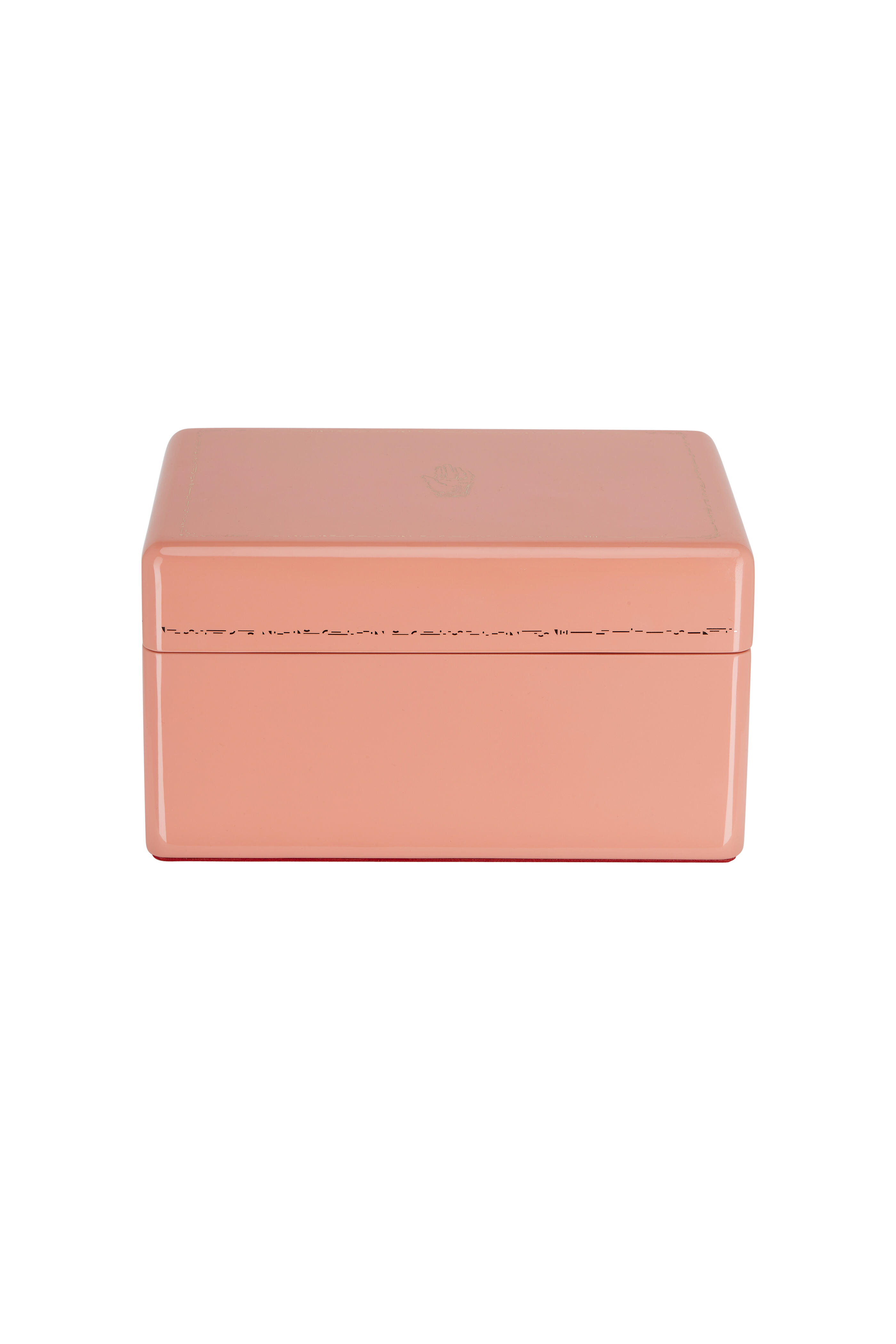Colour: Blush. 3 levels of storage. Wood with high lacquer finish. Features delicate gold effect inlay. Brass plated hardware. Faux suede interior. 11.8" wide. 8.2" deep. 6.7" high.