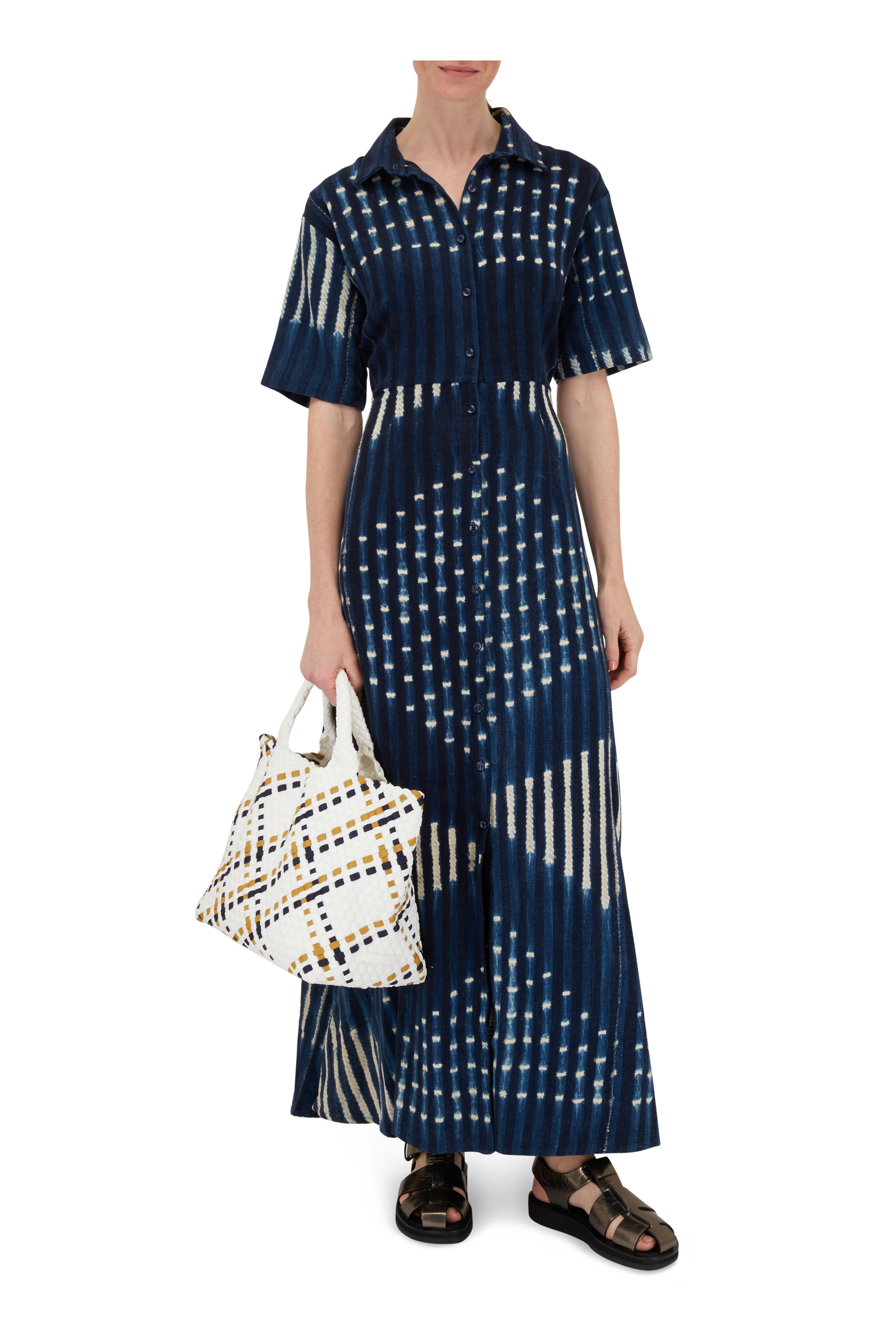 Printed Indigo Shirt Dress