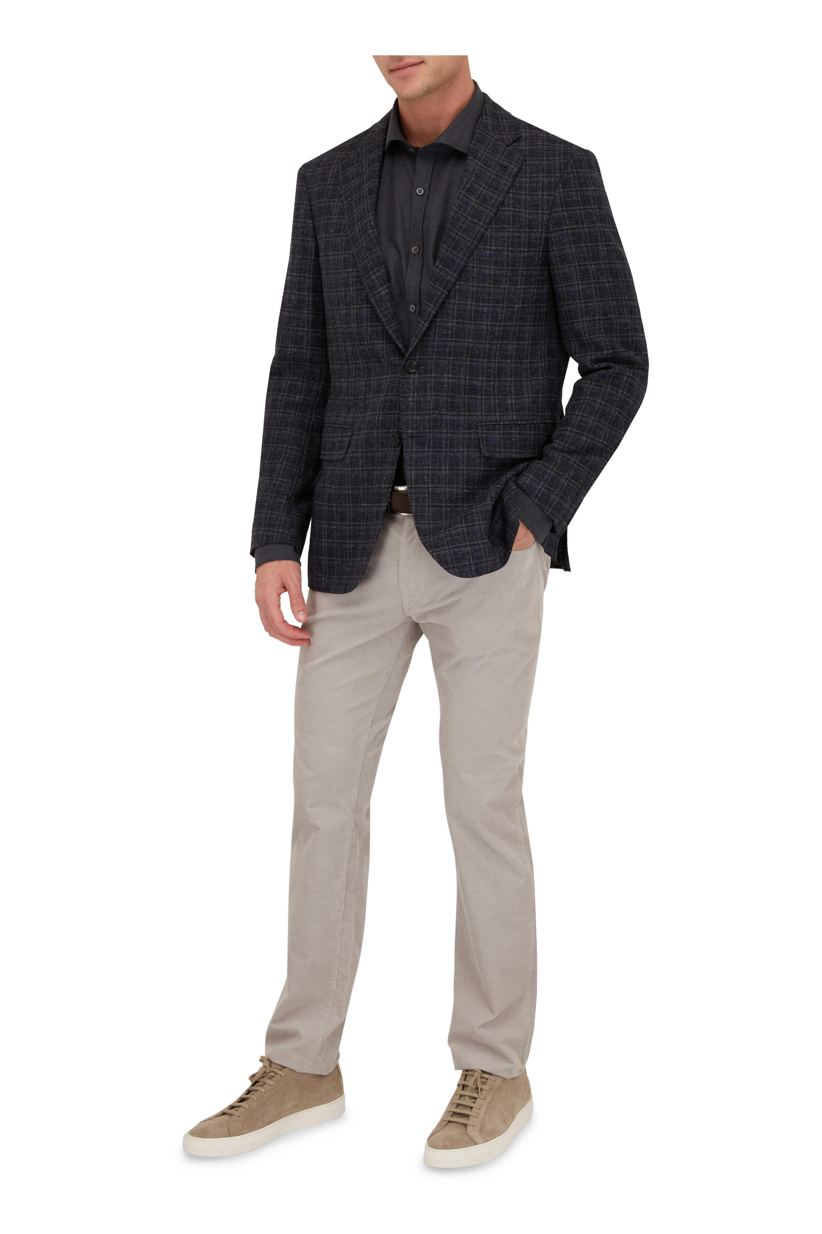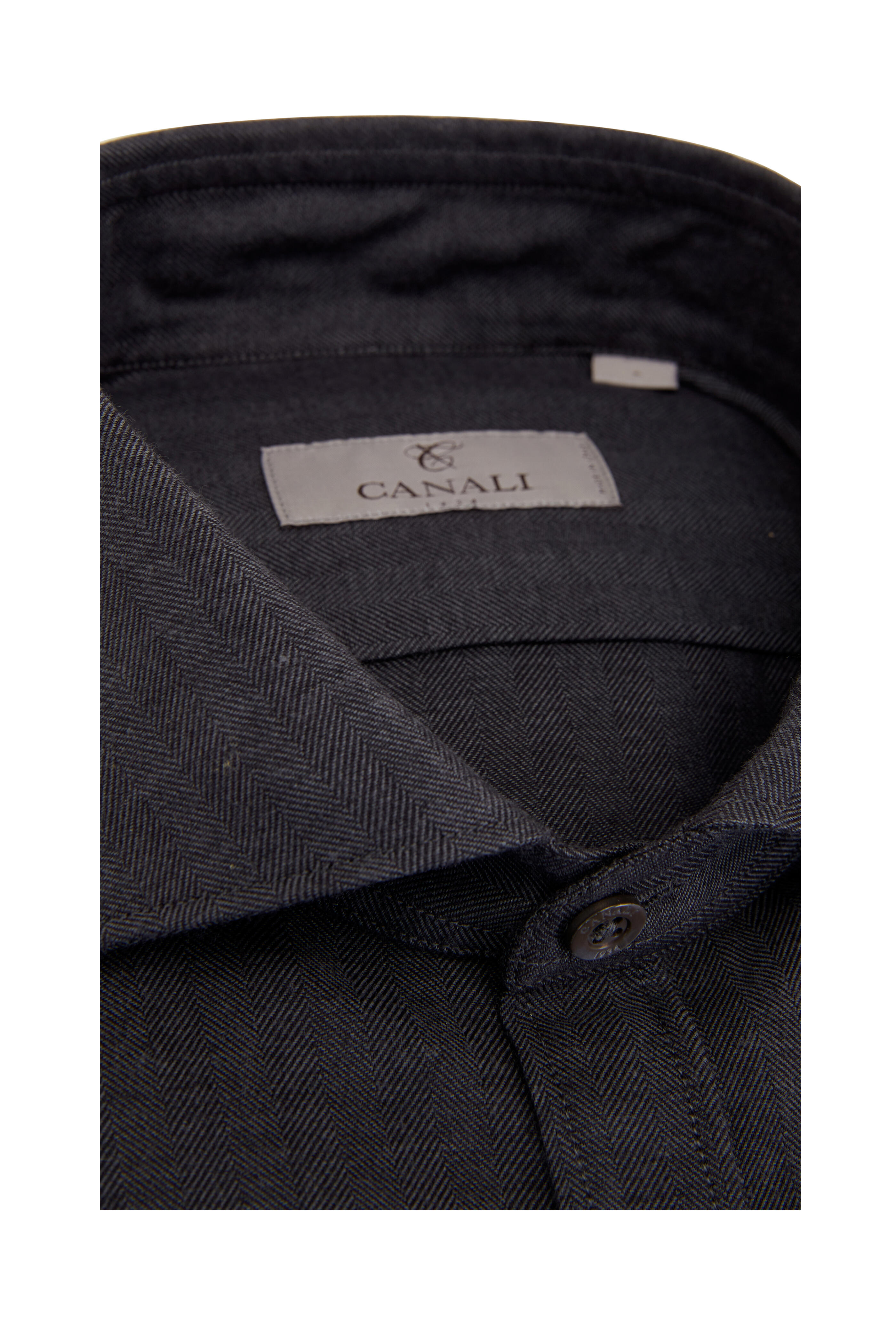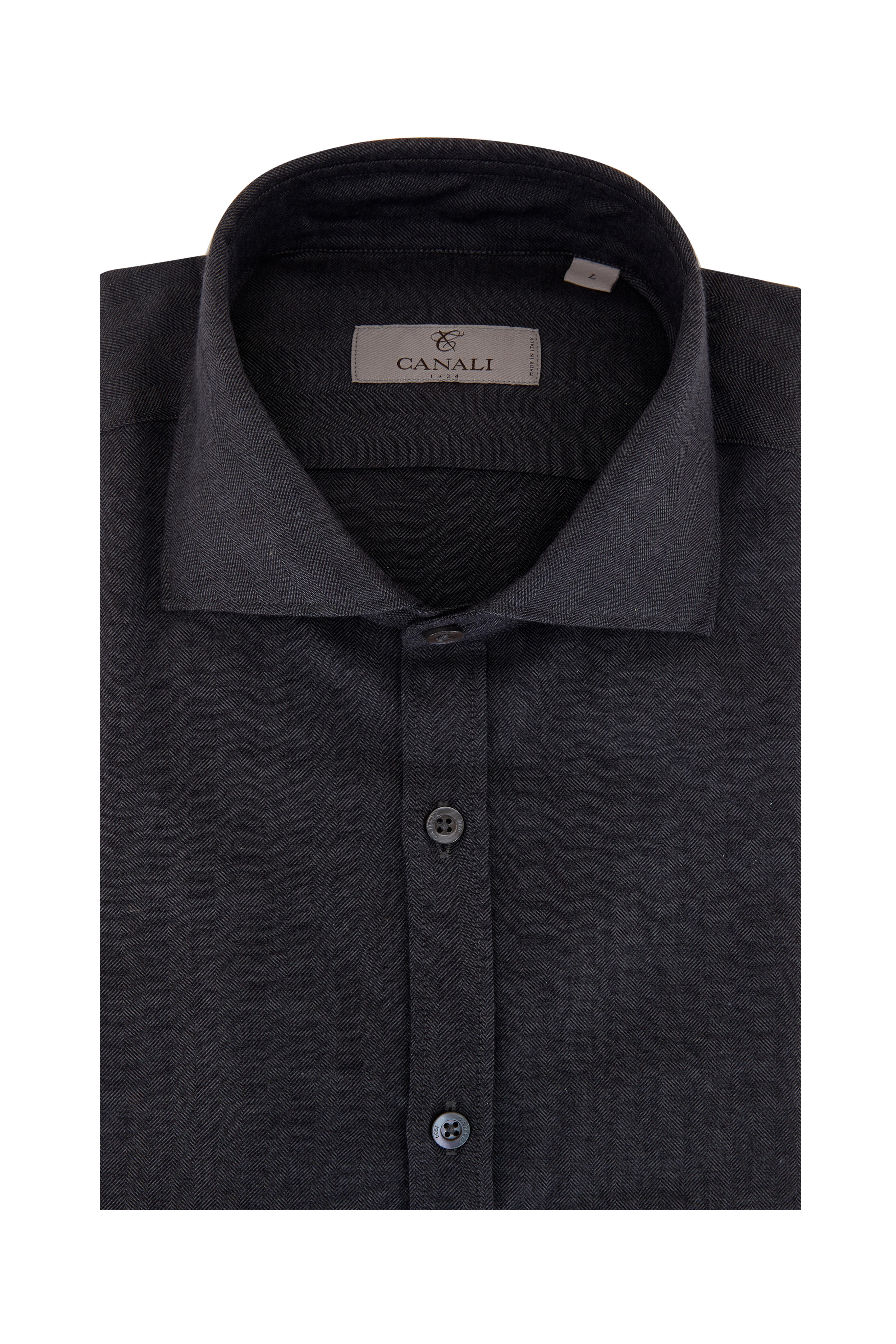 Spread collar. Front placket. Single button barrel cuffs. Made in Italy. 80% cotton, 20% wool. Machine wash.