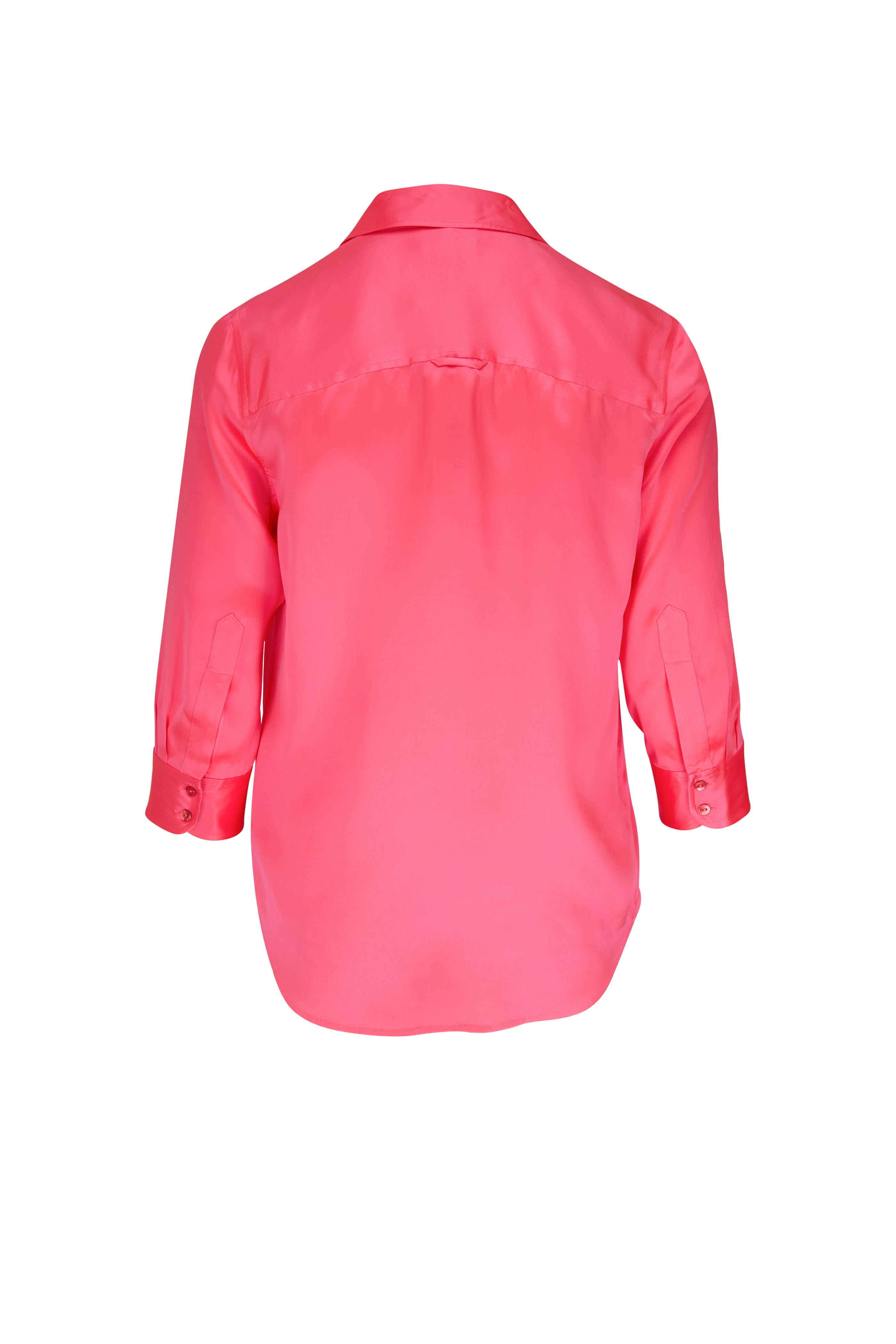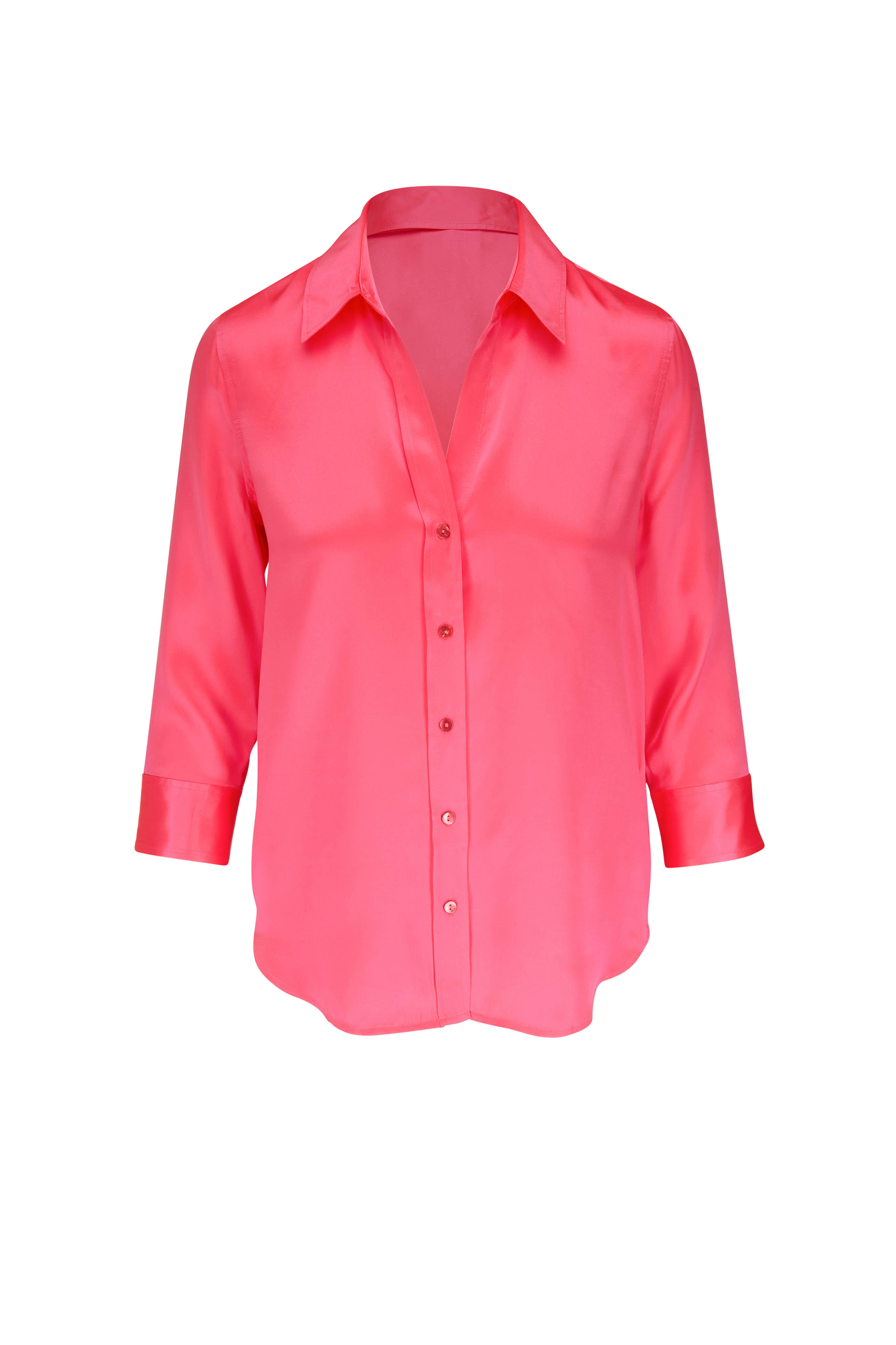 Dani Pink Rose Silk Three-Quarter Sleeve Blouse