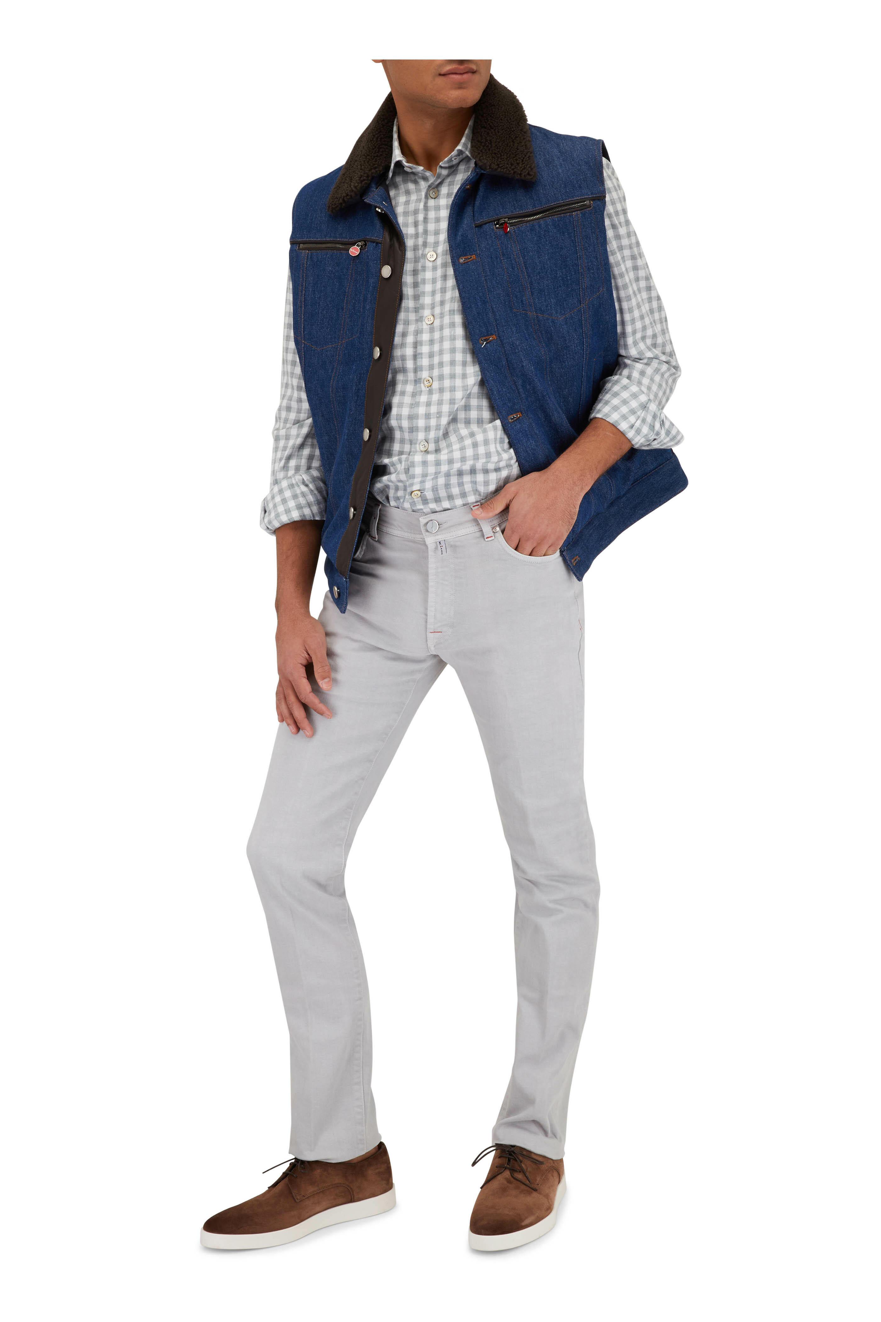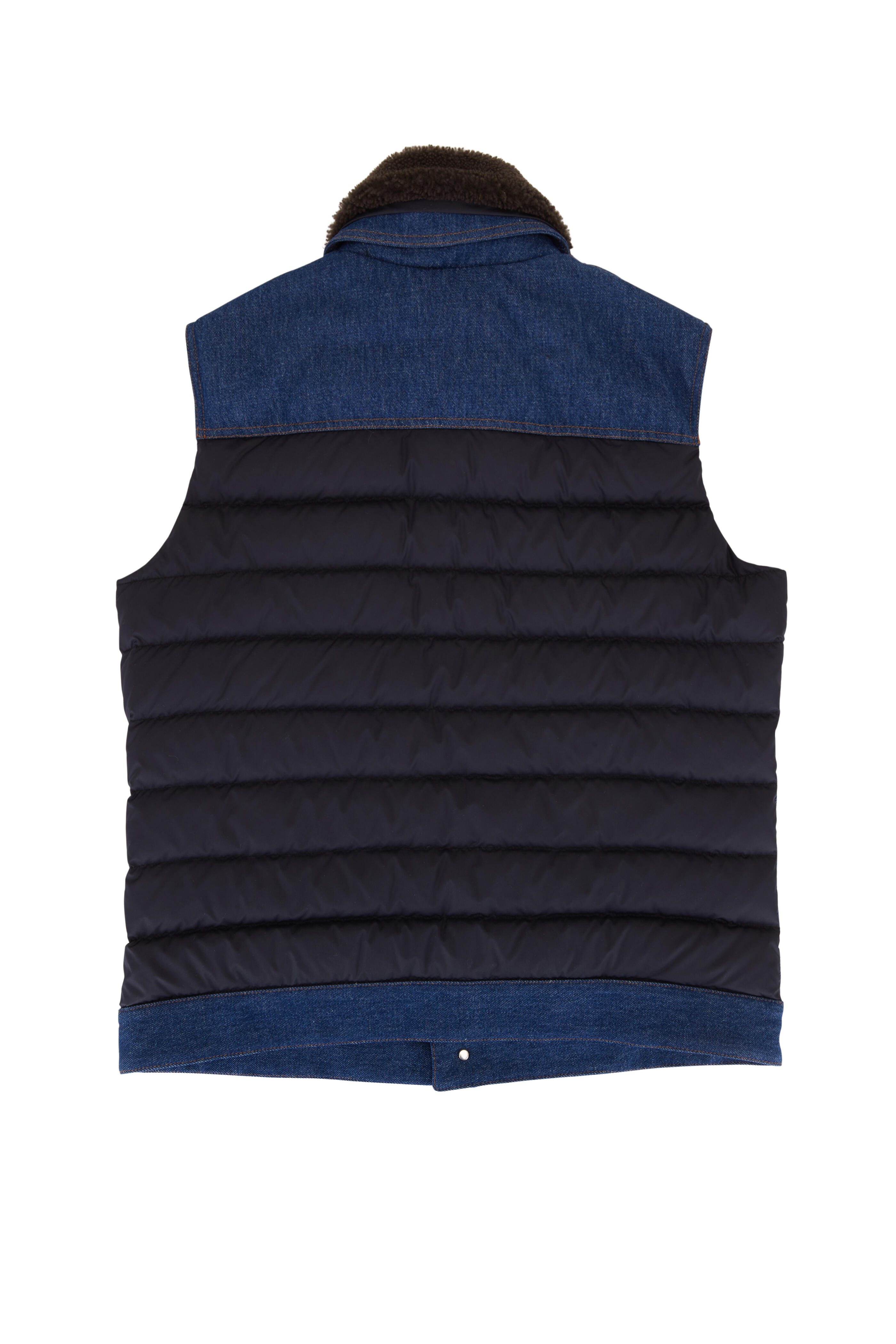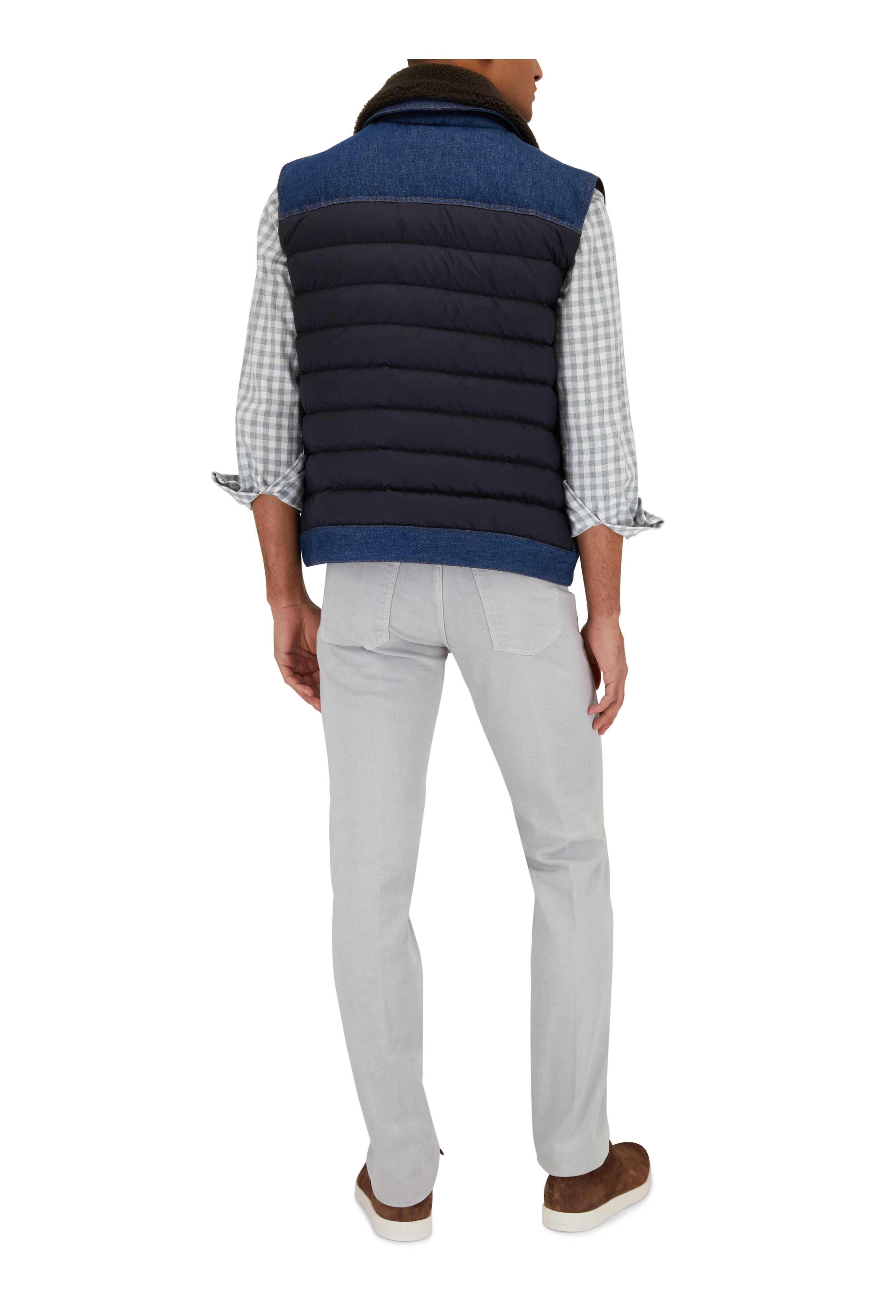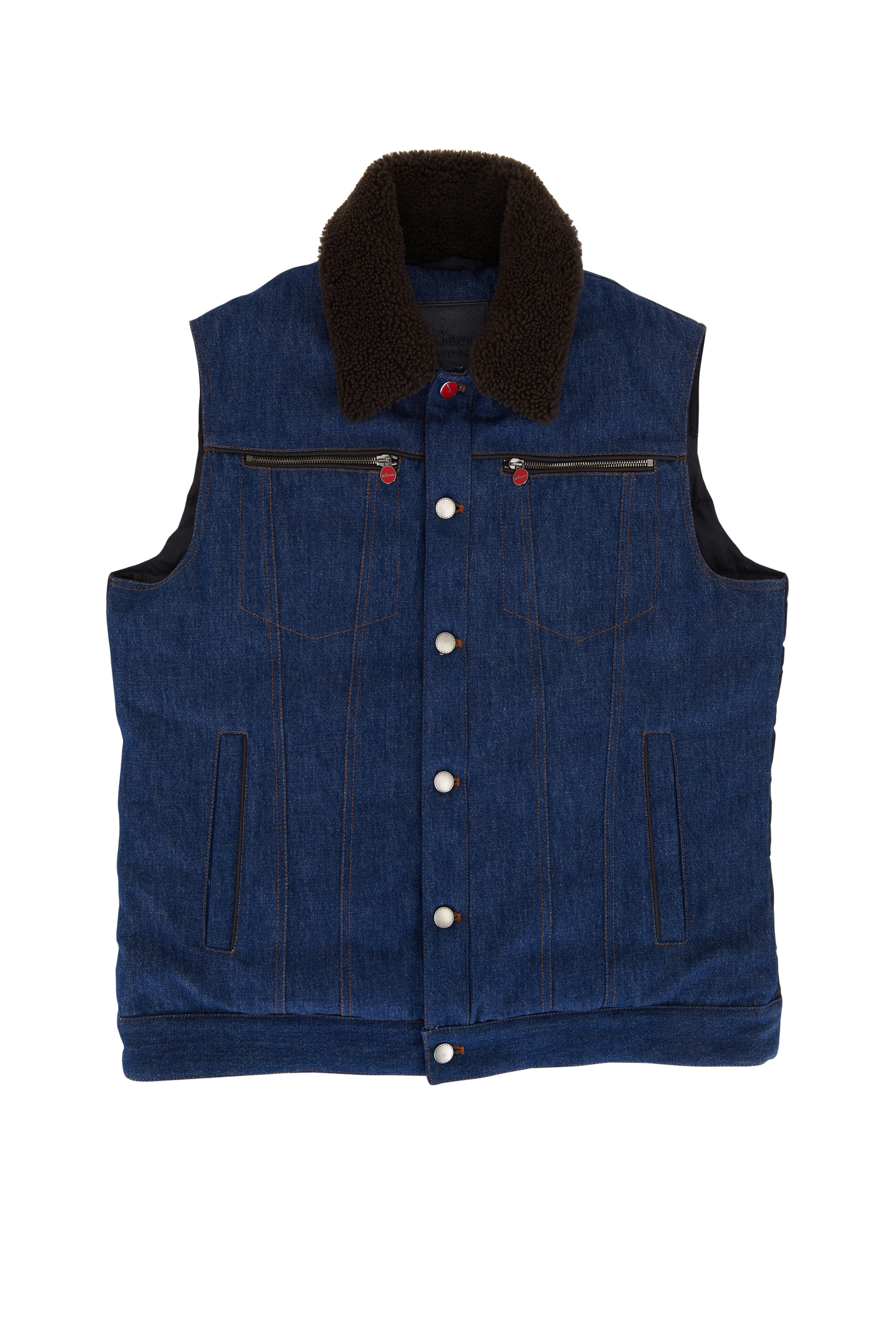 Spread collar. Detachable shearling collar. Front button placket. Two chest zip pockets; Two interior chest zip pockets; Lower waist slip pockets. Banded hem. Made in Italy. Main fabrics: 100% cotton; 100% polyester; Trim: 100% wool; Lining: 100% polyester. Dry clean.