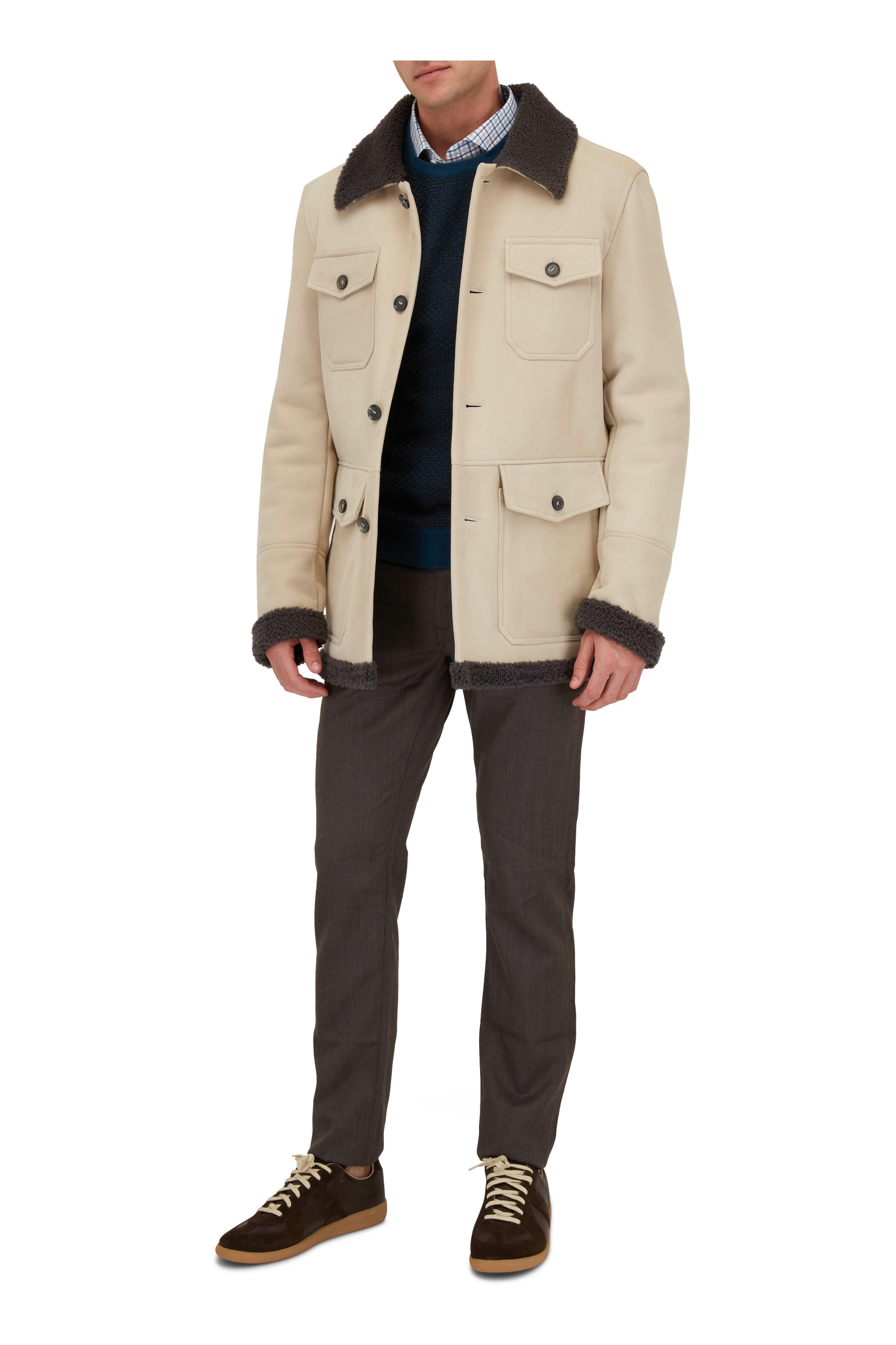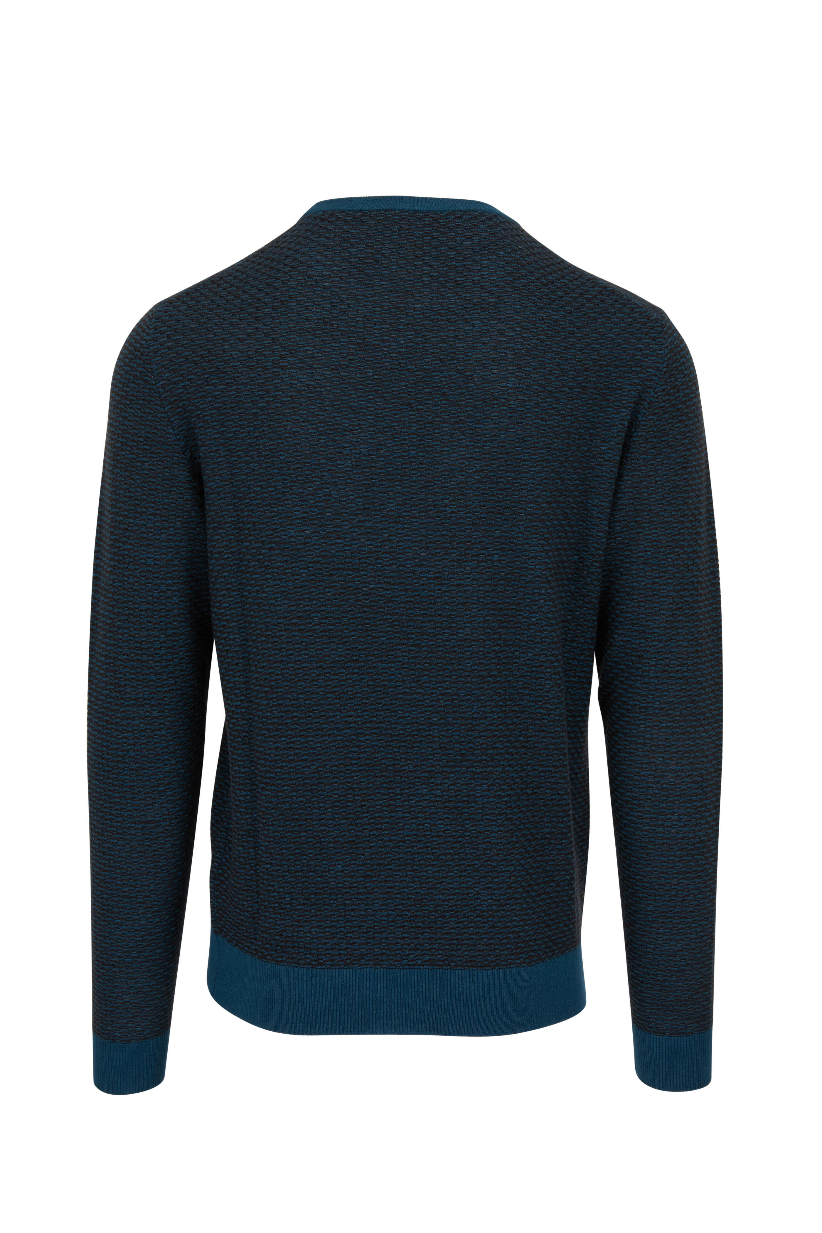 Crewneck. Contrasting trim. Made in Italy. 40% wool, 33% silk, 27% cashmere. Dry clean.
