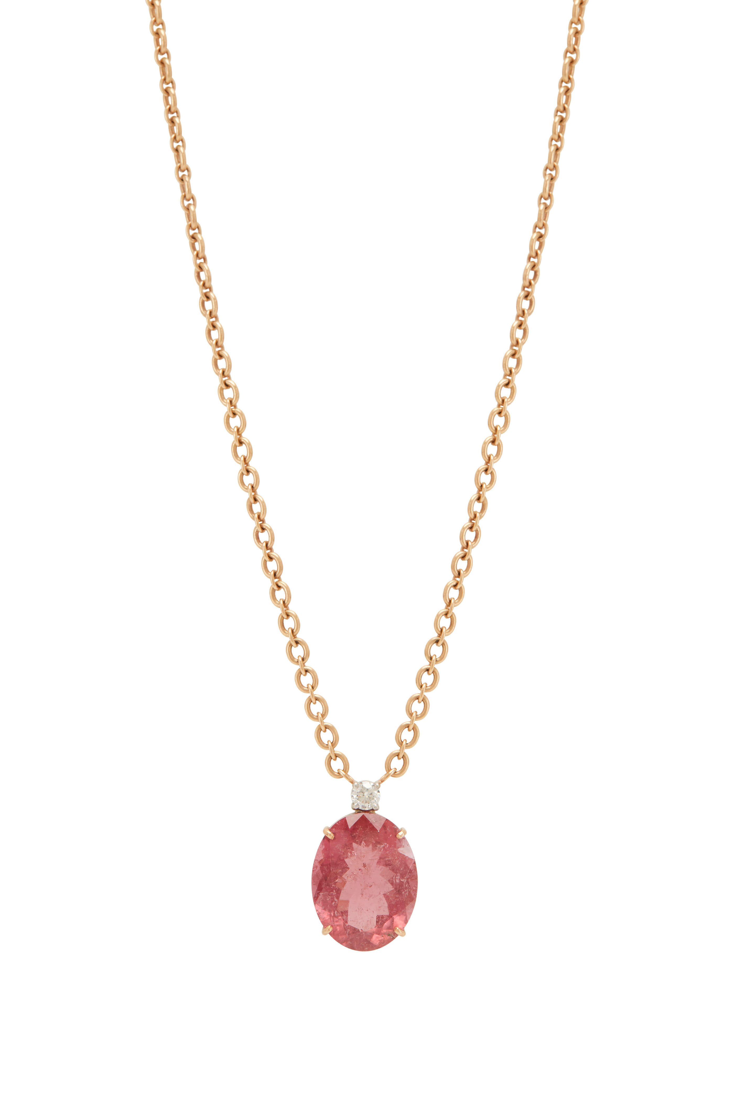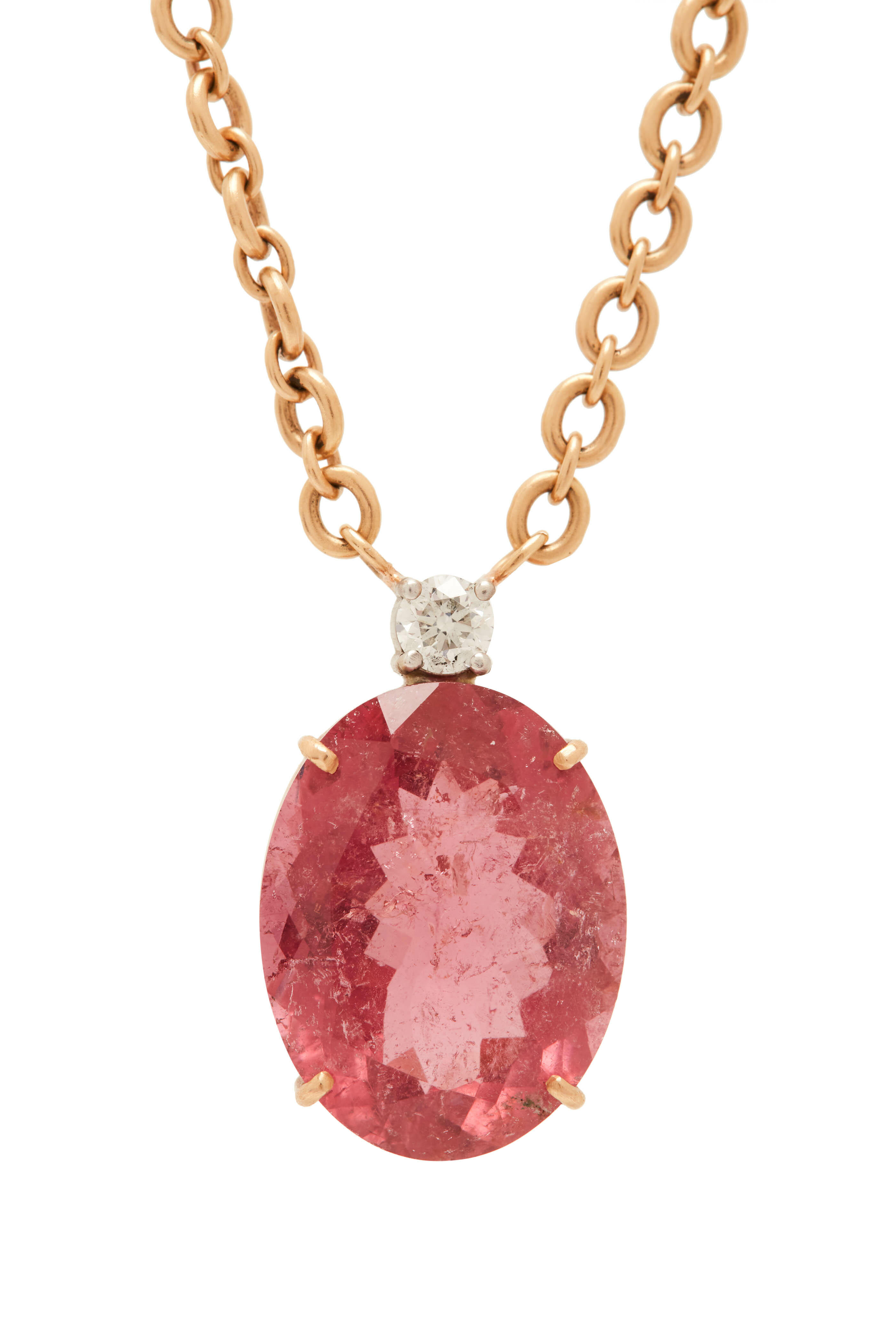 18k rose gold. 13.21 carat pink tourmaline. .21 carat diamonds.