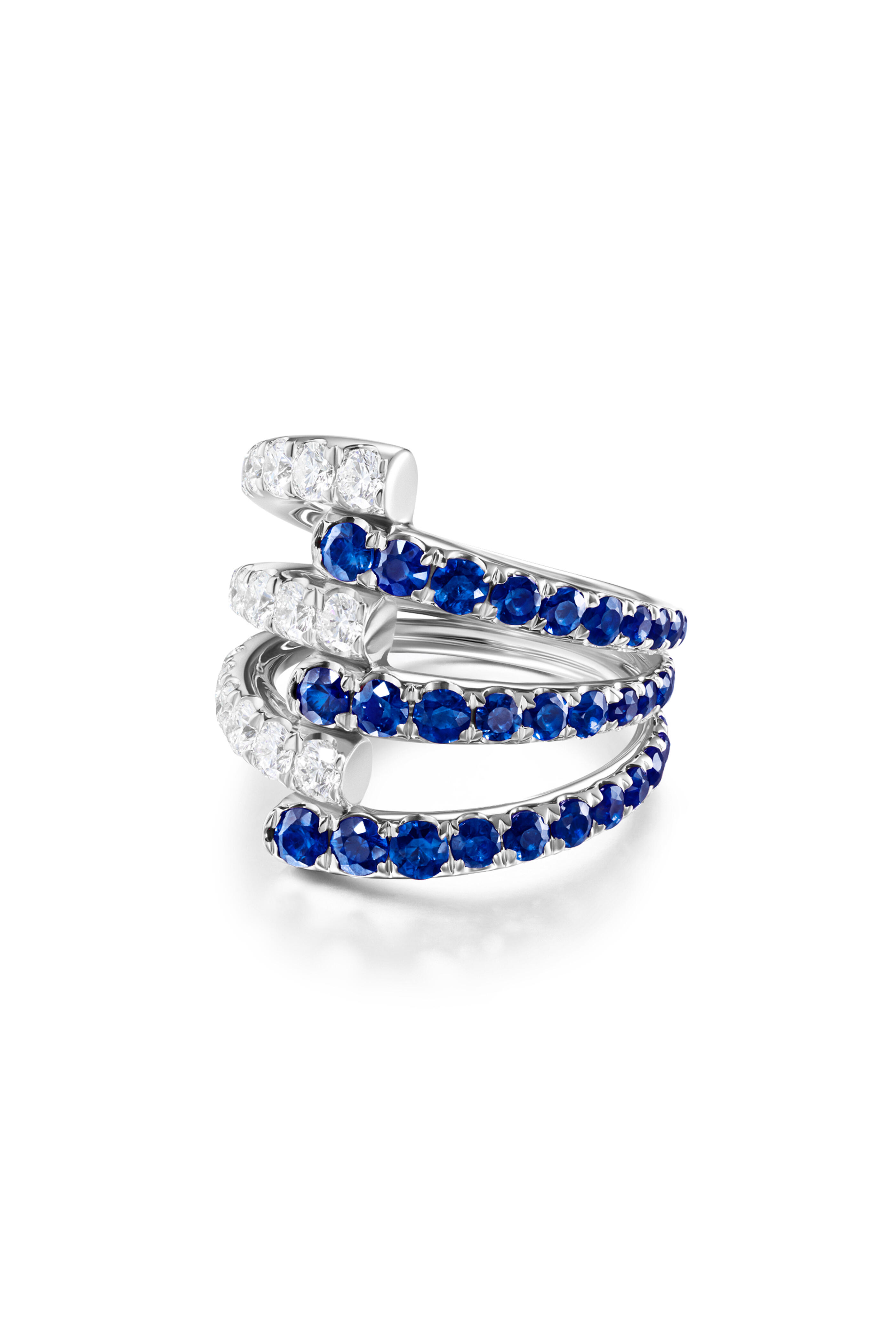 18k white gold. 1.60 carat diamonds. 2.07 carat blue sapphires.