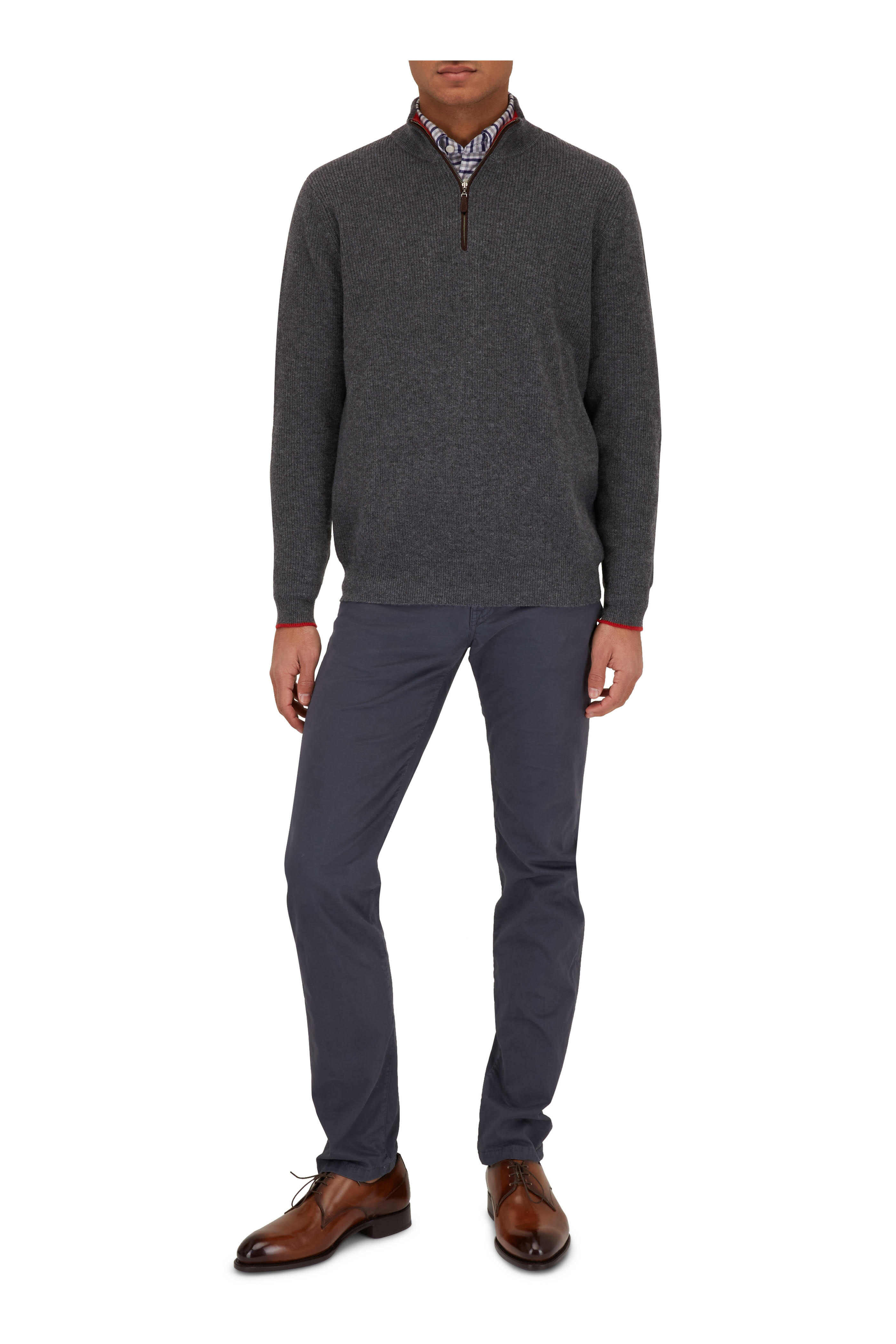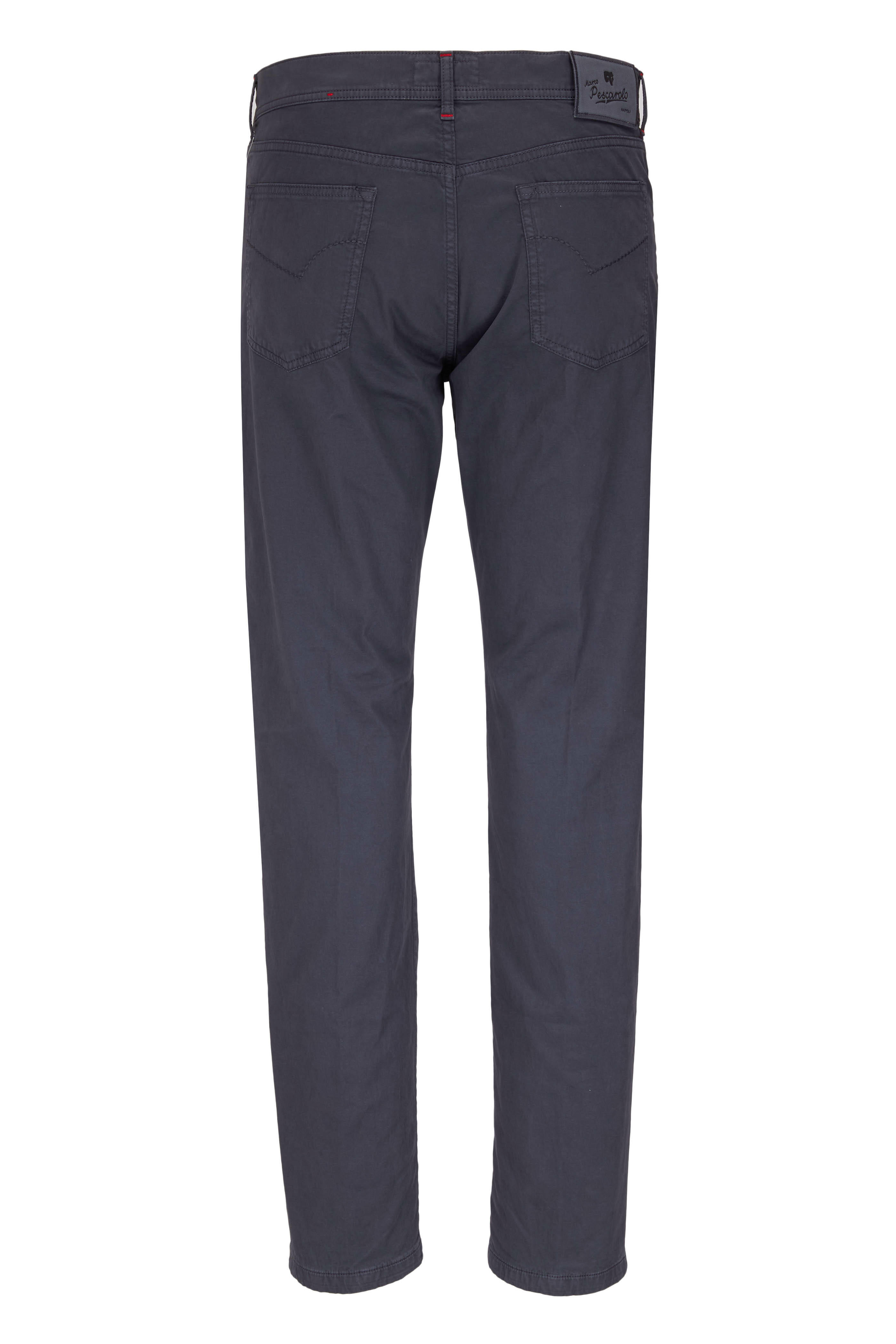 Zip fly with button tab. Five pocket styling. Made in Italy. 98% cotton, 2% elastane; Lining: 100% cotton. Dry clean.