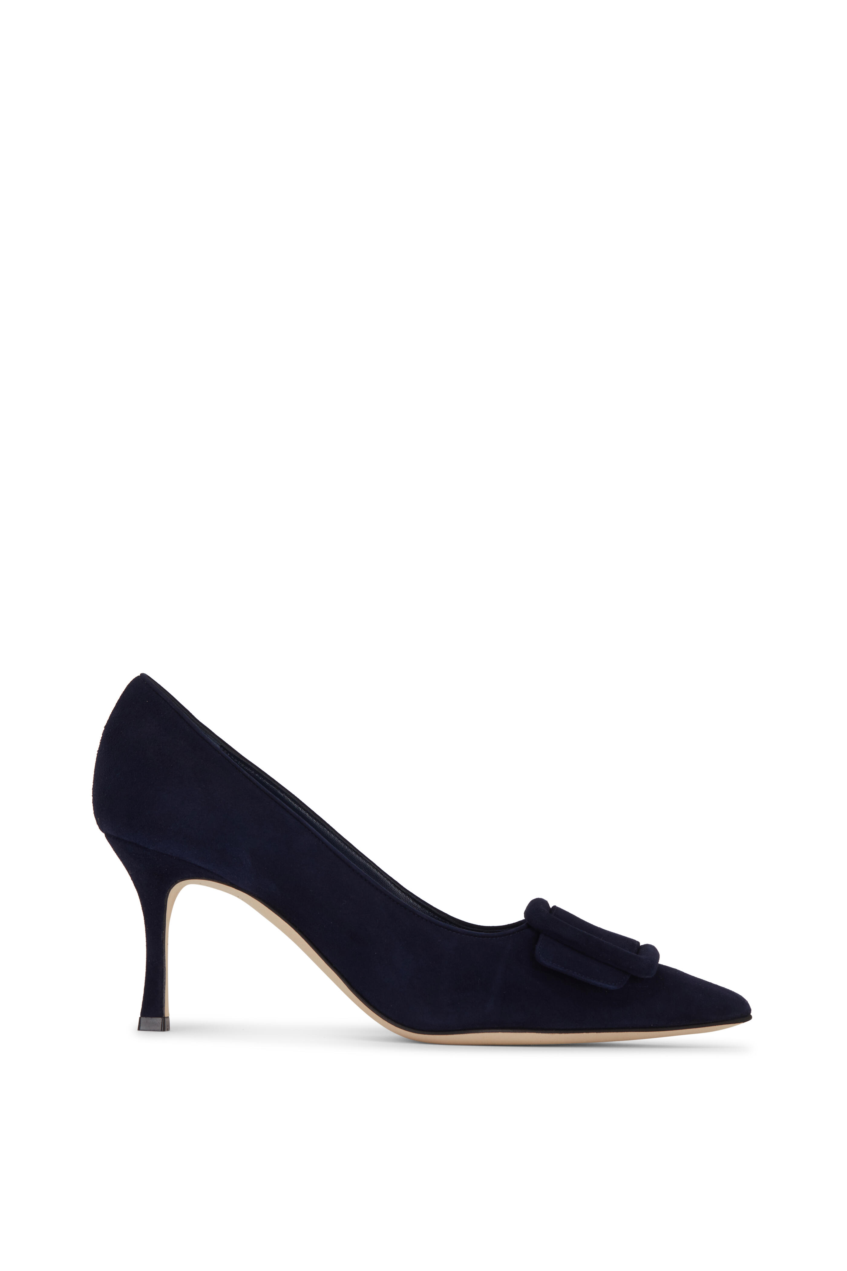Suede upper. Pointed toe. Slip on style. Tonal buckle detailing. Self-covered heel. Leather lining and insole. Leather sole. Made in Italy. Heel measurement: 70mm (2.75").