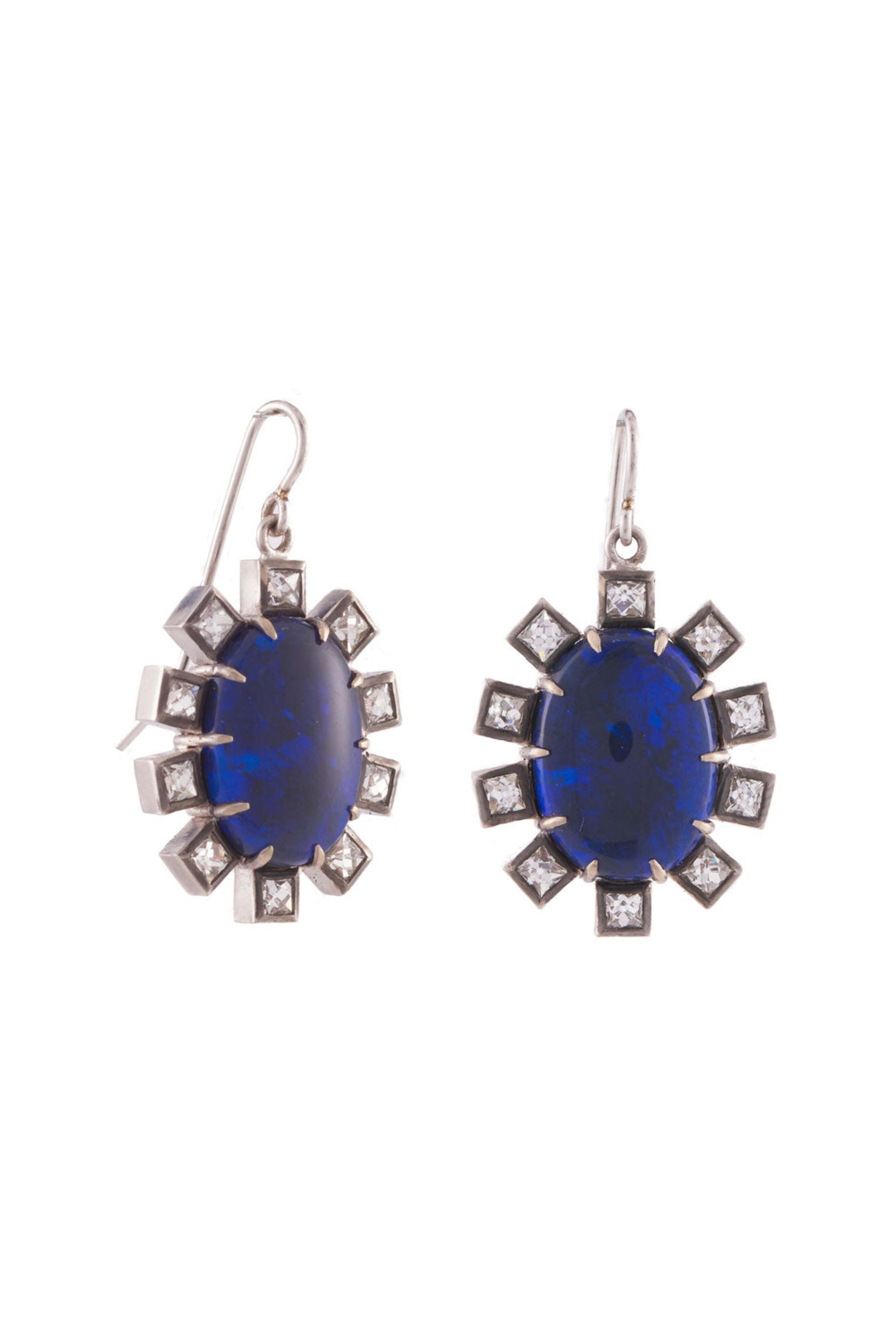 Fancy Cut Diamond & Opal Earrings