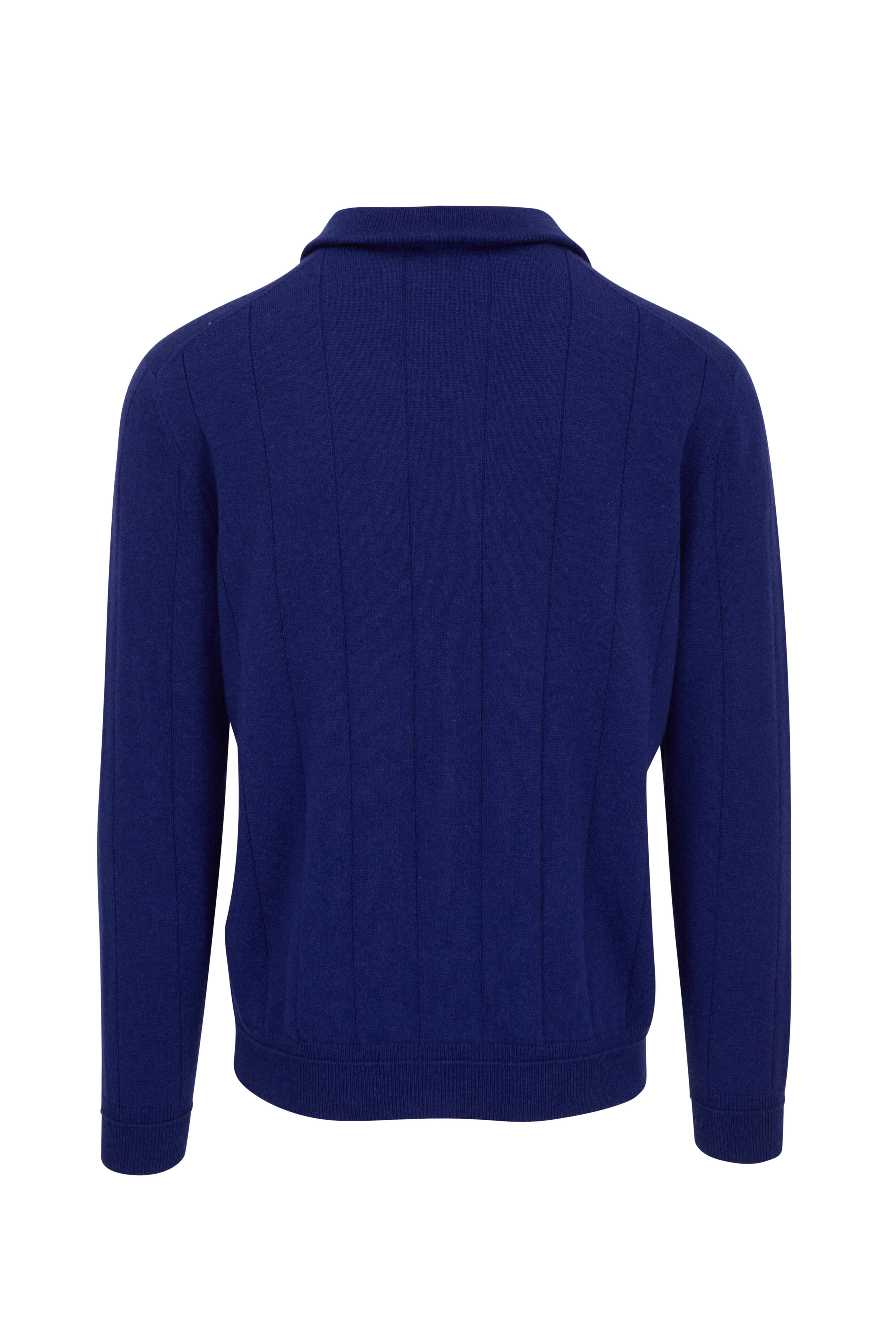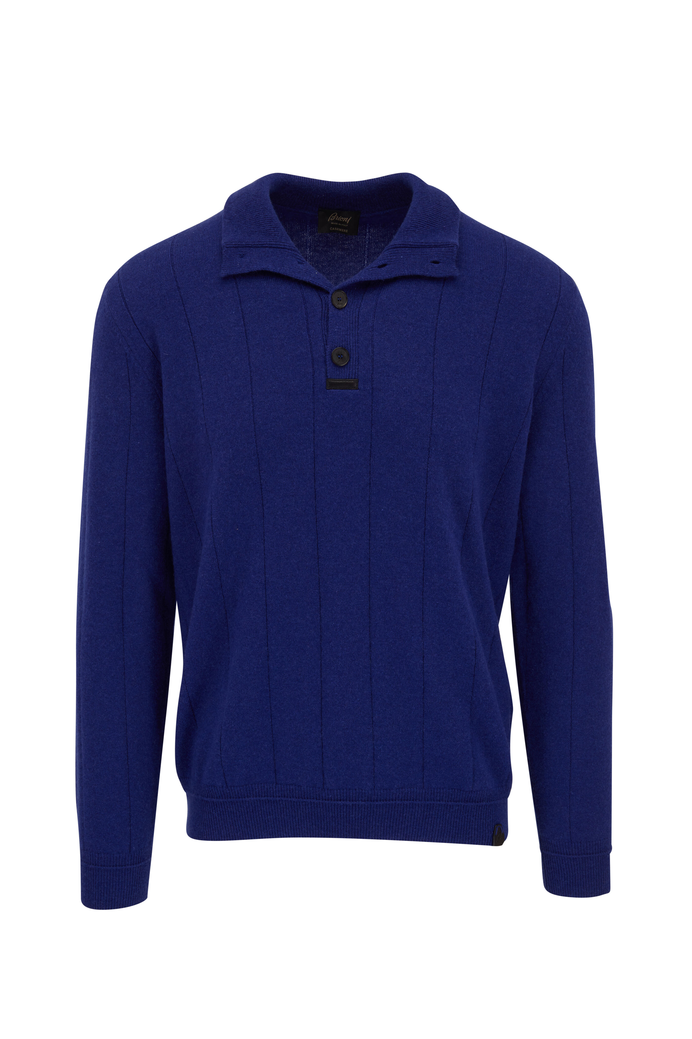• Brioni - Cobalt Blue Cashmere Quarter Zip Pullover