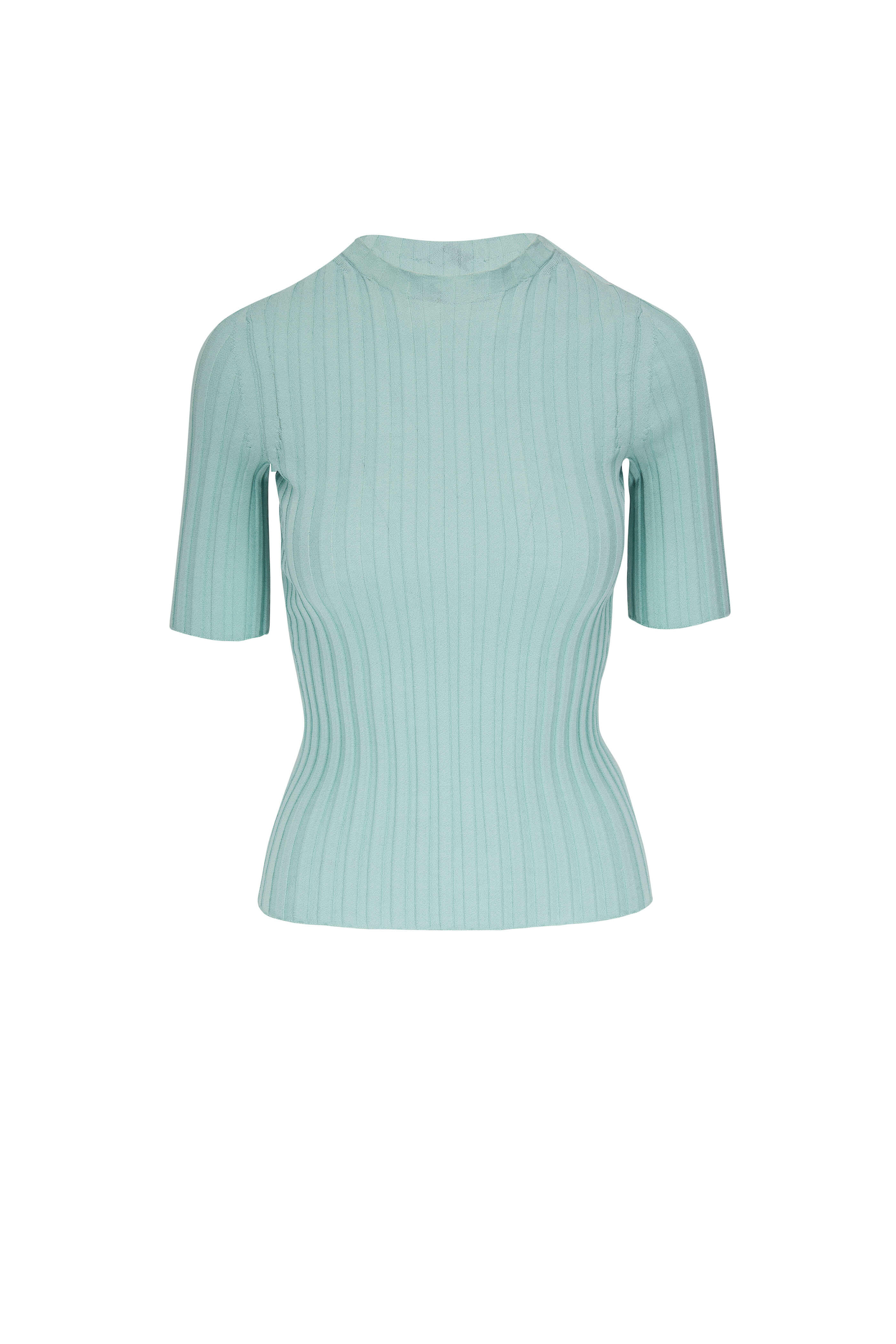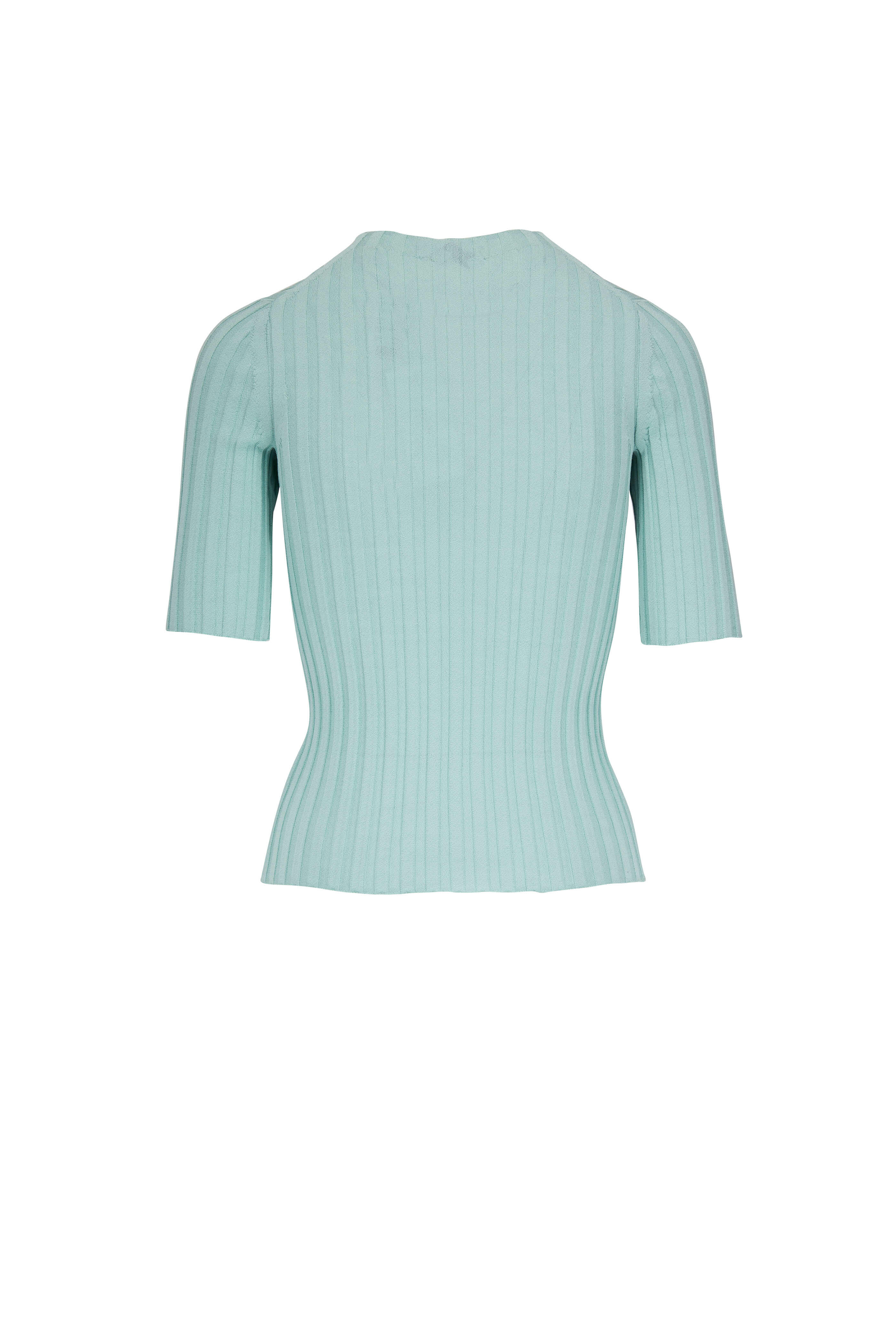 • Vince - Pale Mineral Ribbed Elbow Sleeve Top
