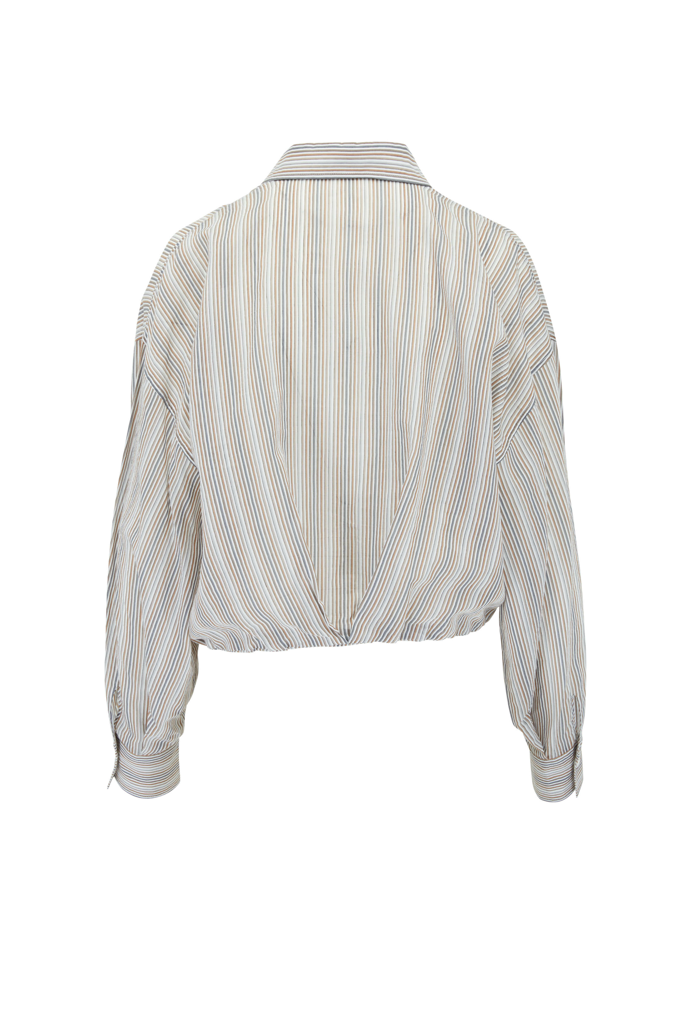Tobacco & Gray Stripe Gathered Hem Shirt