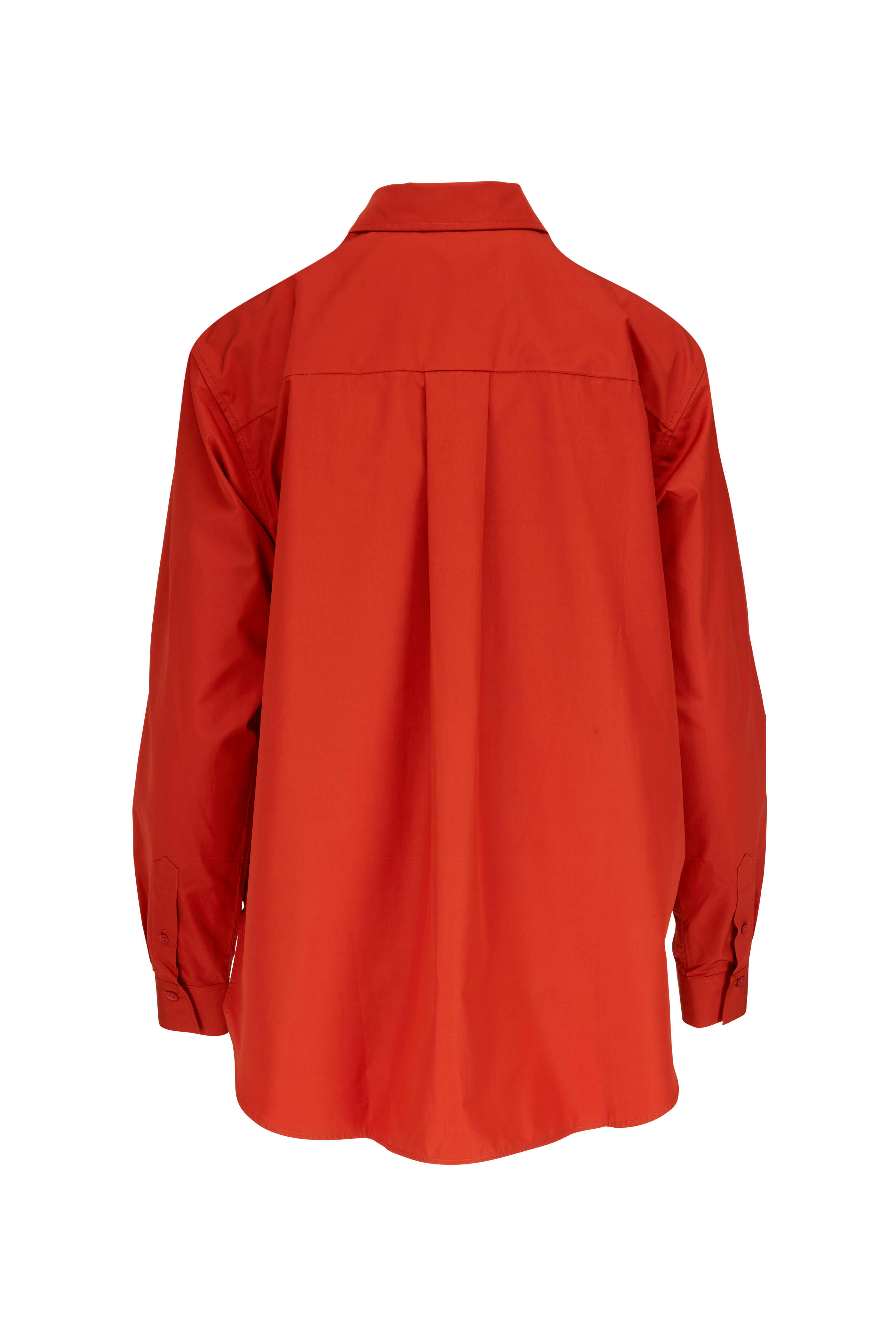 Spread collar. Button down placket. Imported. 100% organic cotton. Machine wash.