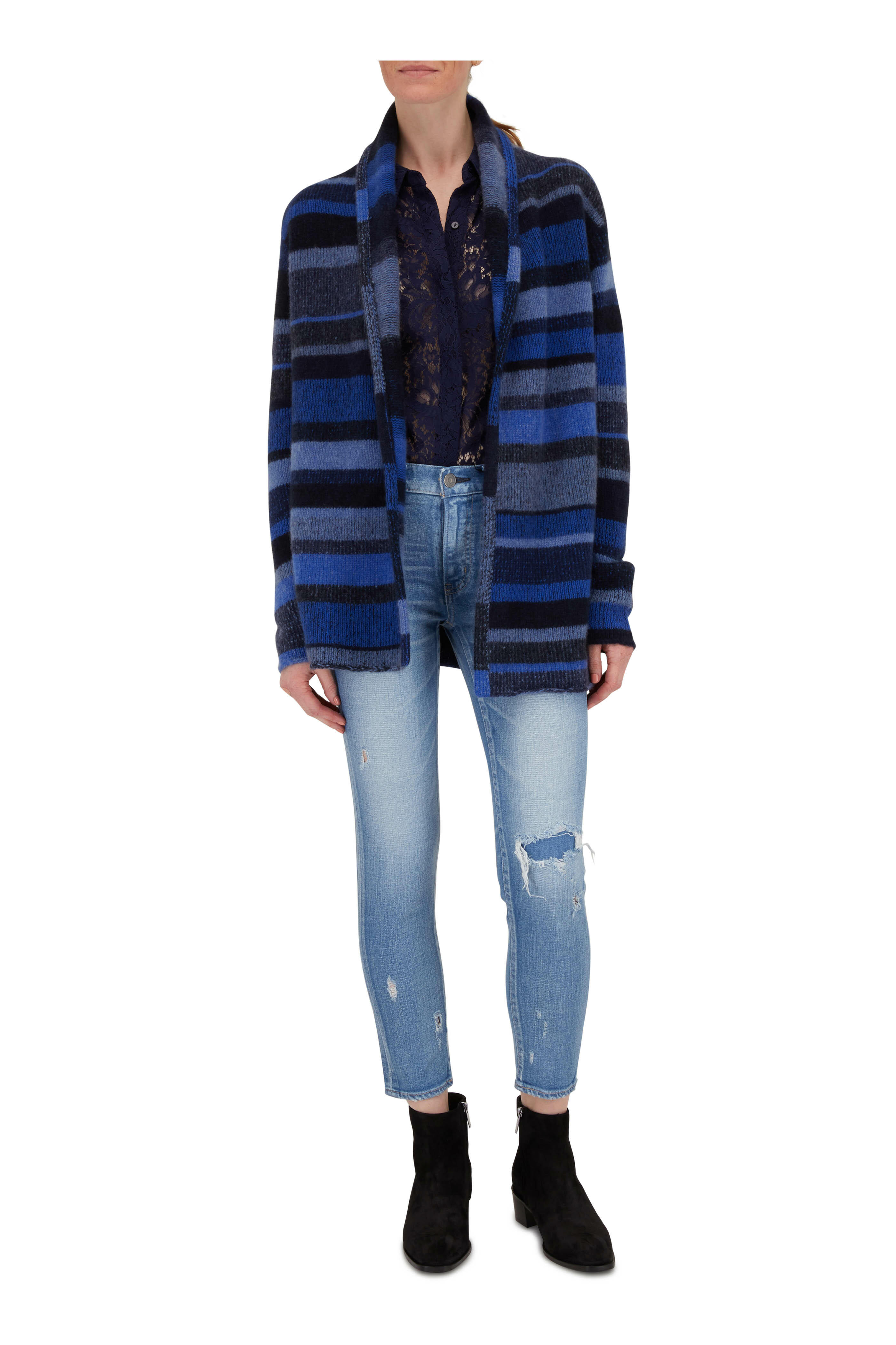 Zip fly. Five pocket styling. Raw edge hem. Made in Japan. True to size. 95% cotton, 4% polyester, 1% spandex; label patch: Cowhide leather. Machine wash.