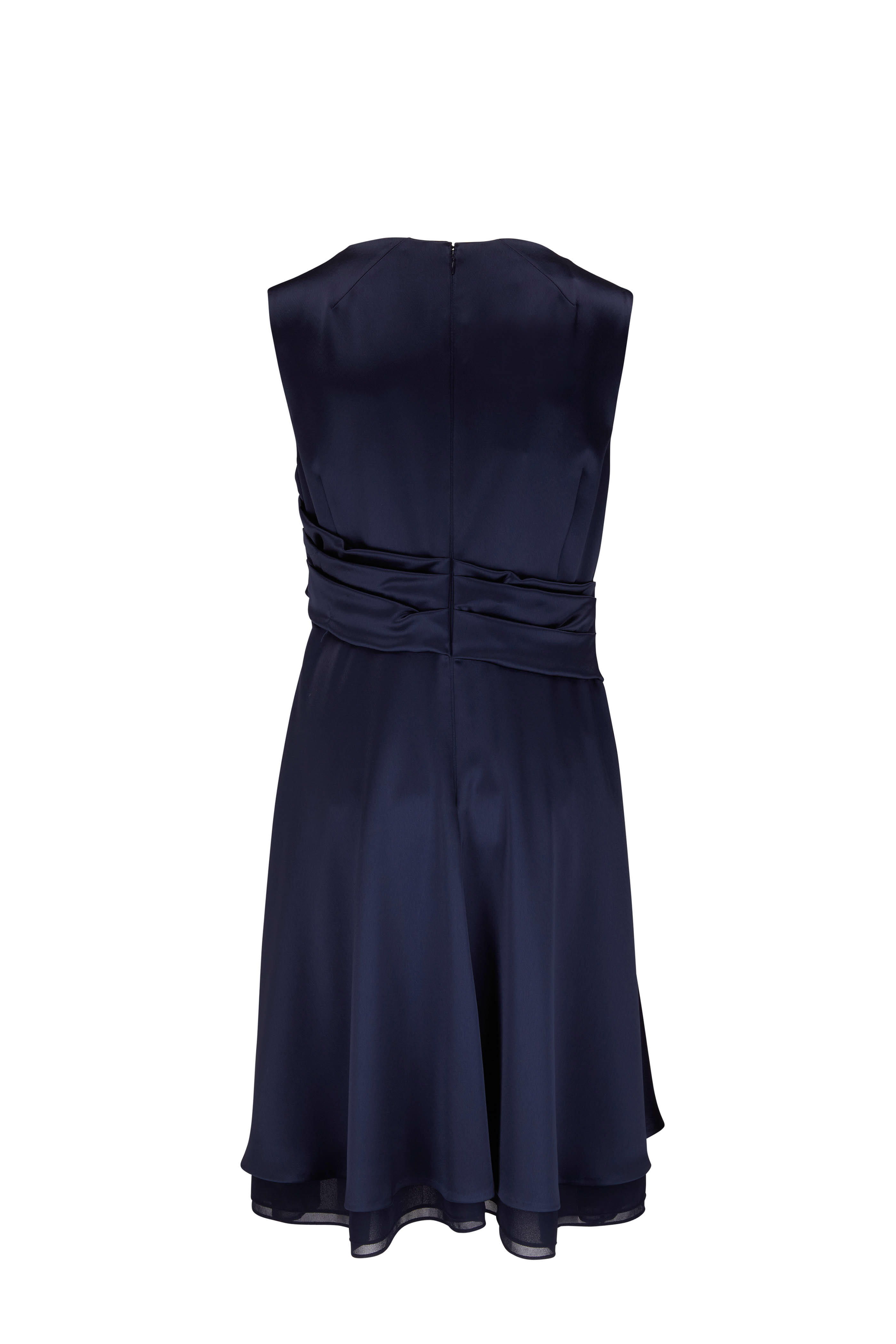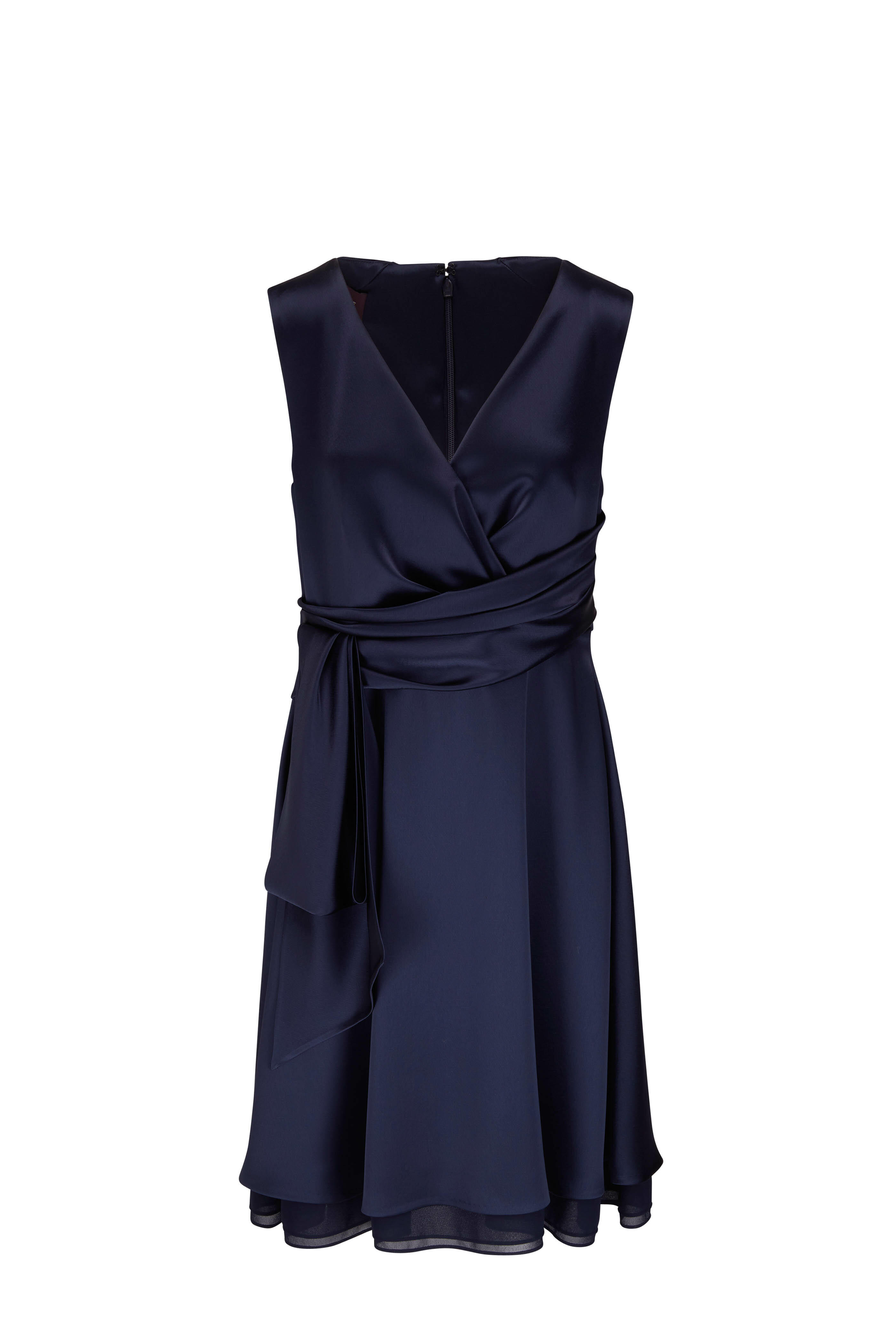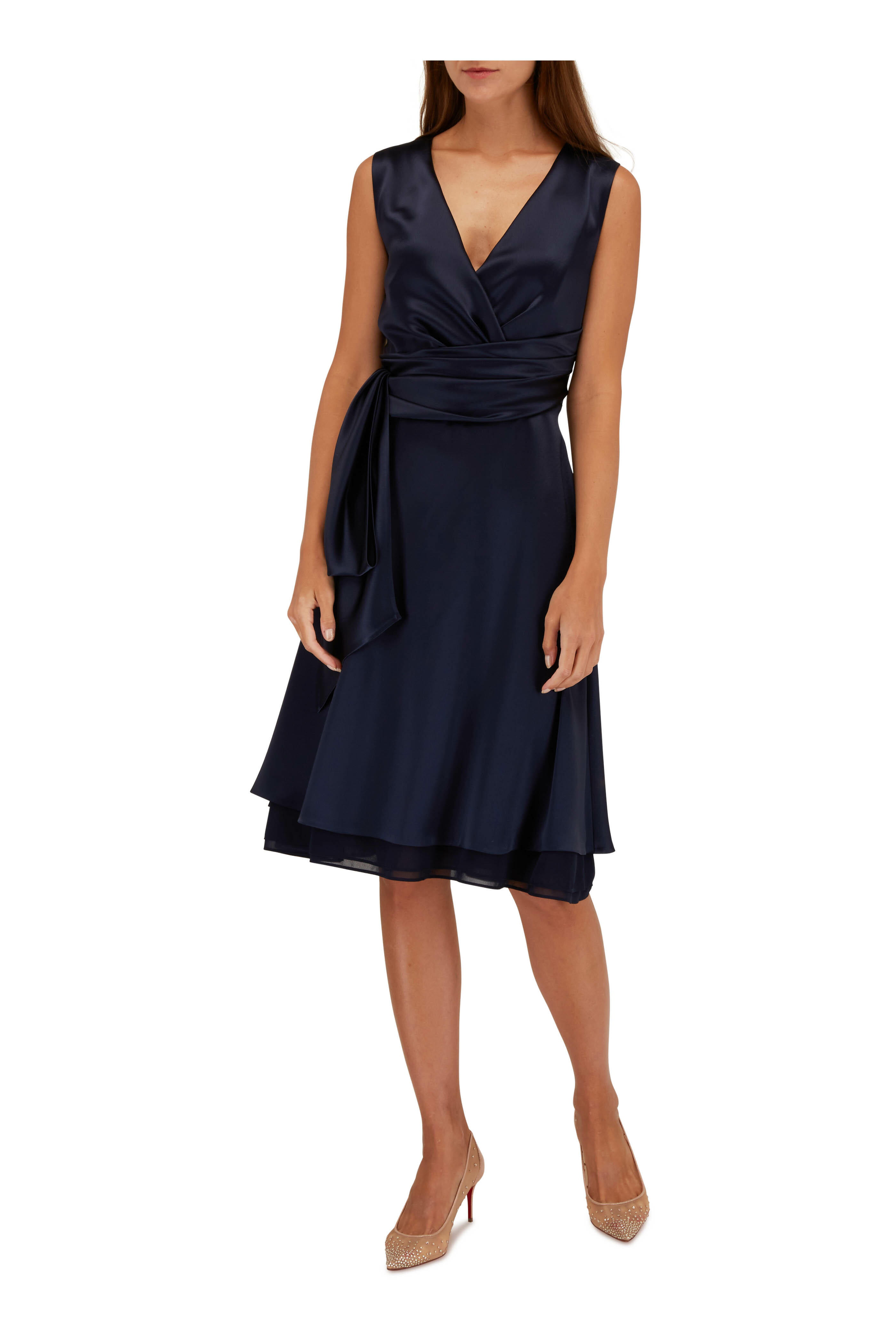 Donella1 Navy Sleeveless Wrap Effect Dress