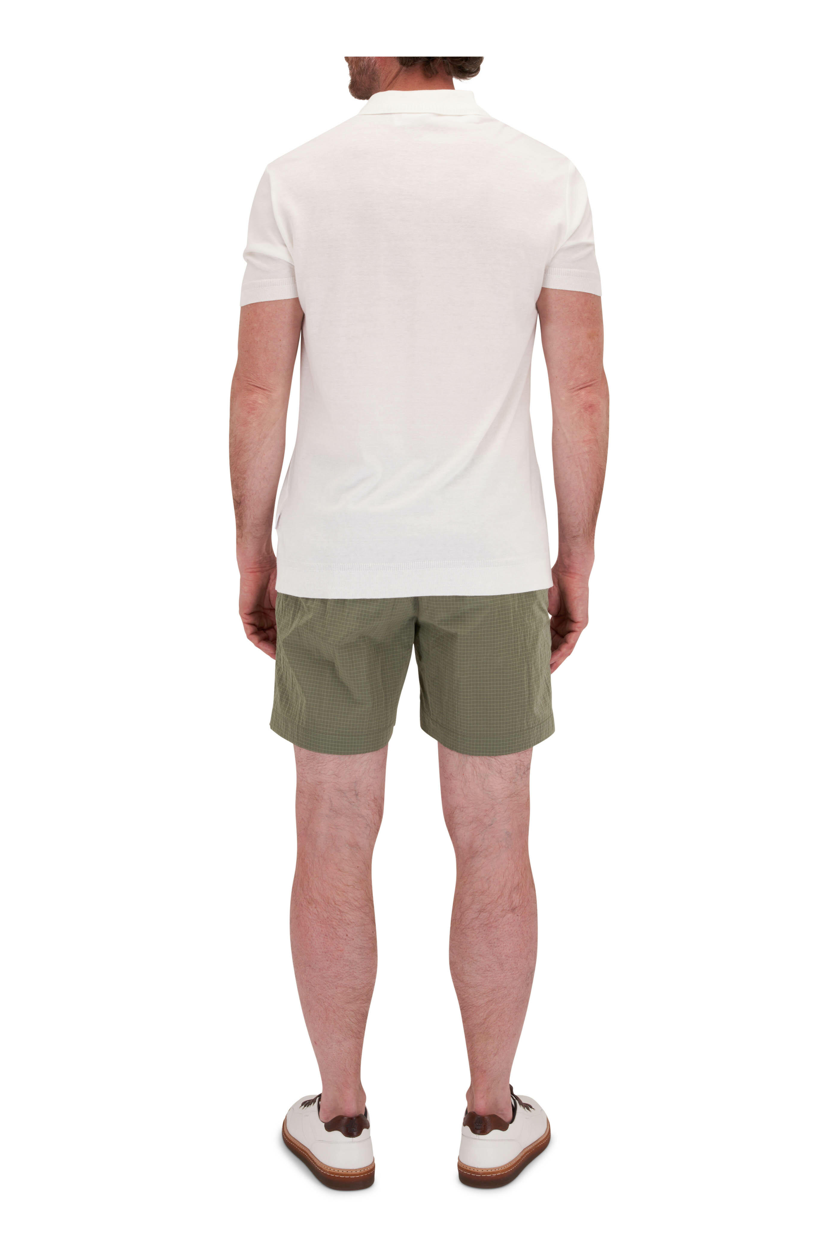 Concealed front zip and button closure. Adjustable side tabs. Side slash pockets; back welt pocket. Imported. Length: 16". Inseam: 6". 100% polyester. Machine wash.
