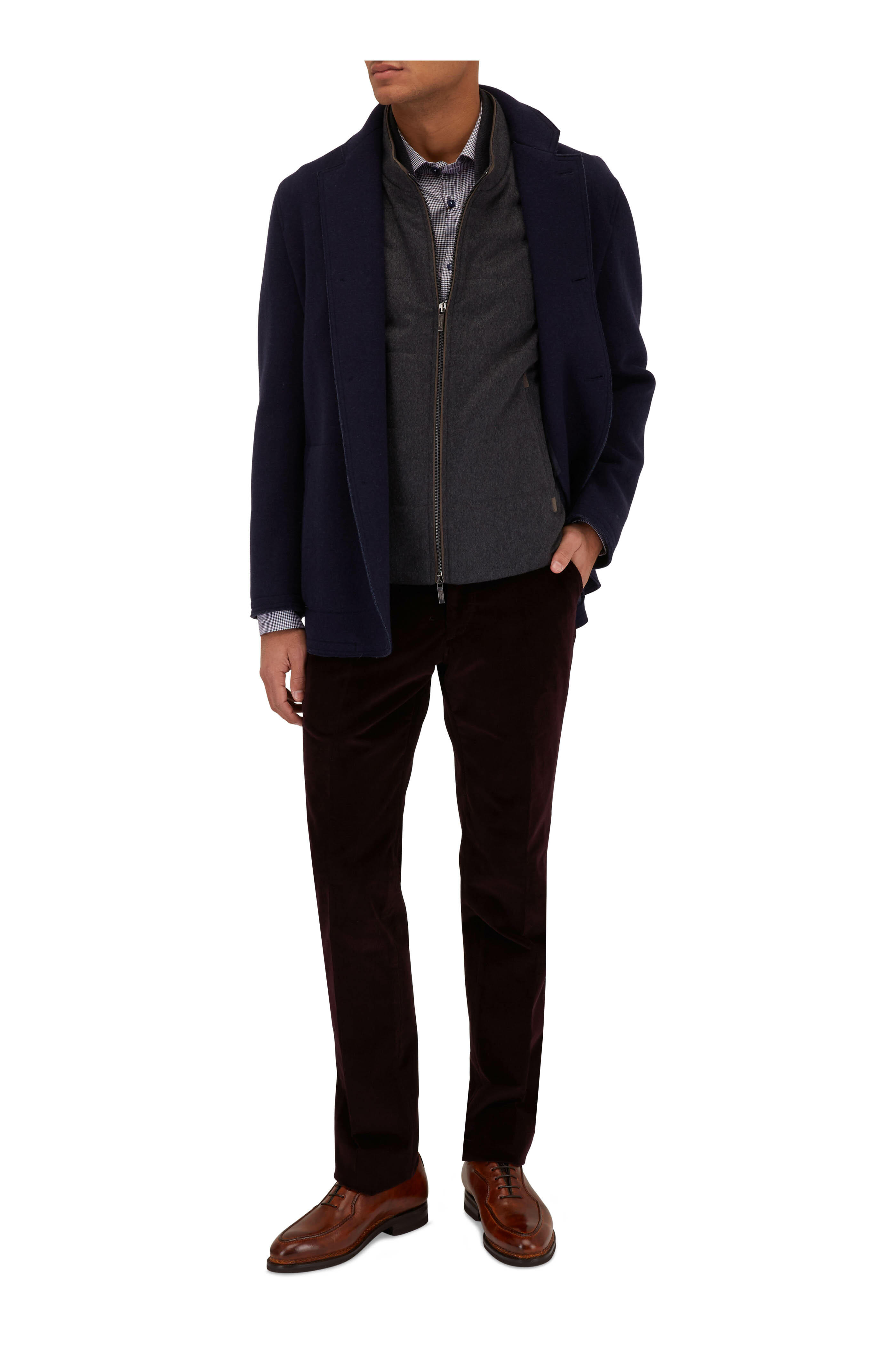Stand collar. Two-way front zip. Lower zip pockets. Made in Italy. 100% cashmere; lining:71% polyester, 29% cotton. Dry clean.