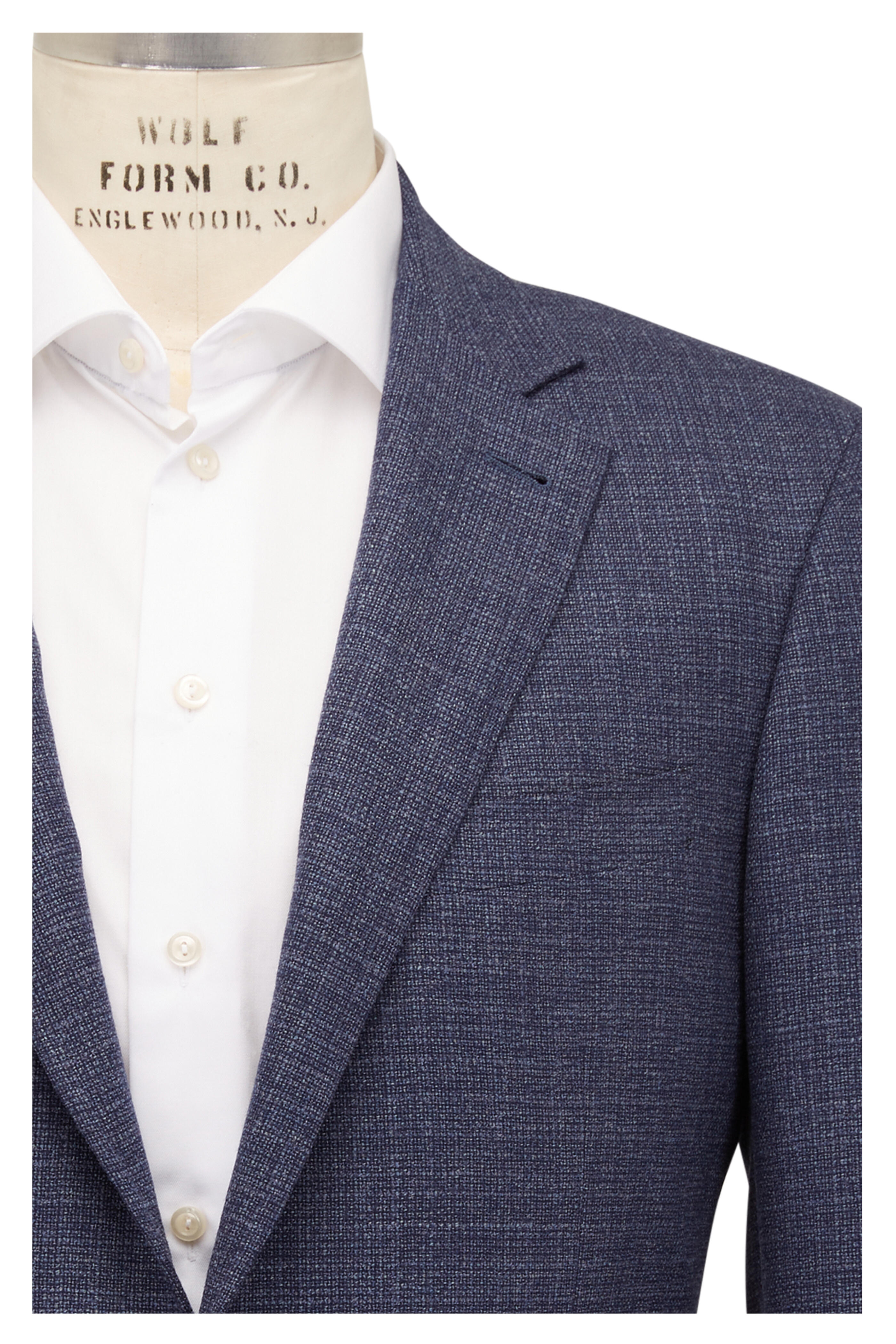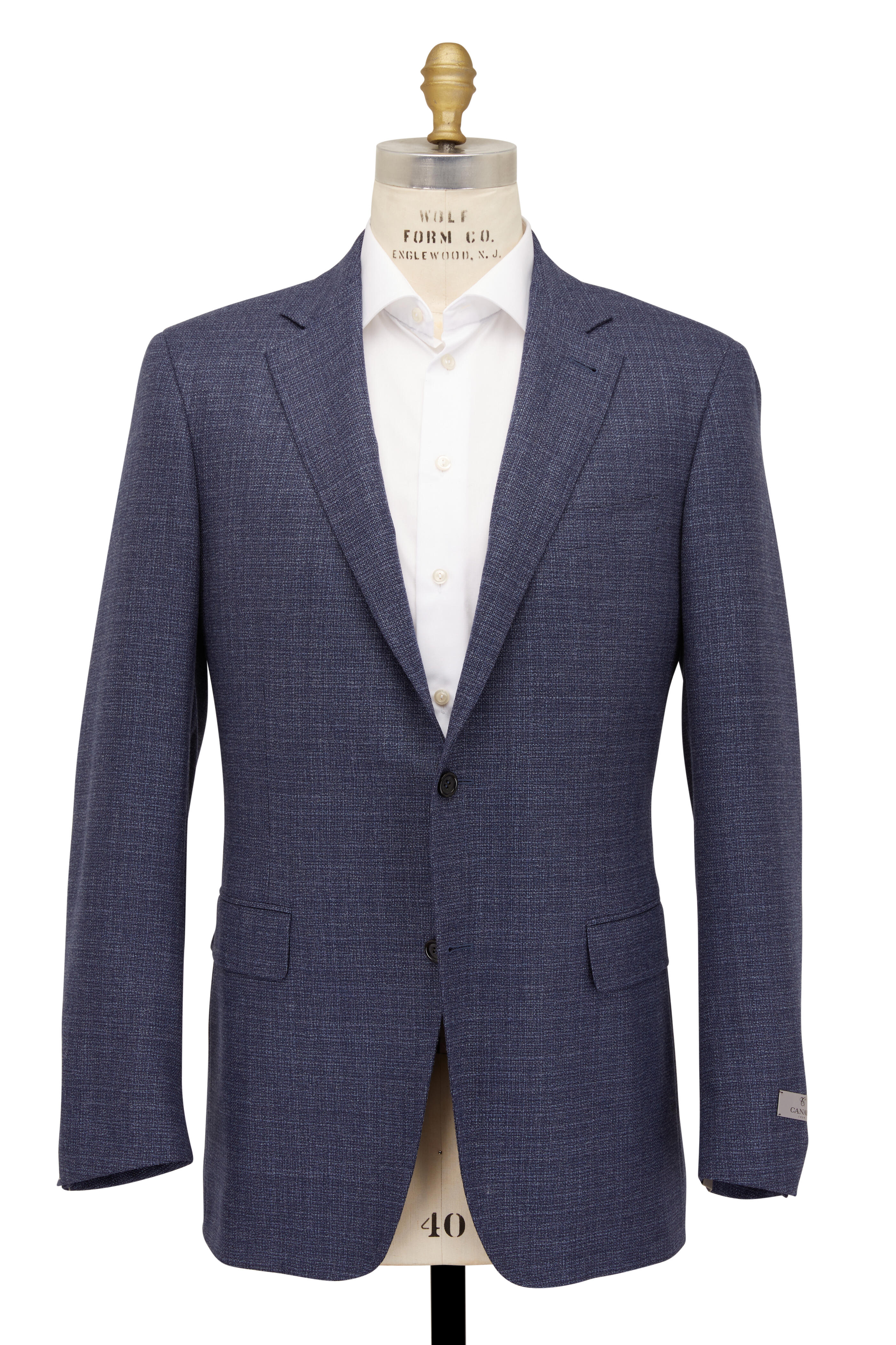 Notched lapels. Two button closure. Lower flap pockets; chest welt pocket. Double vent. Made in Italy. 100% wool; fully lined. Dry clean.