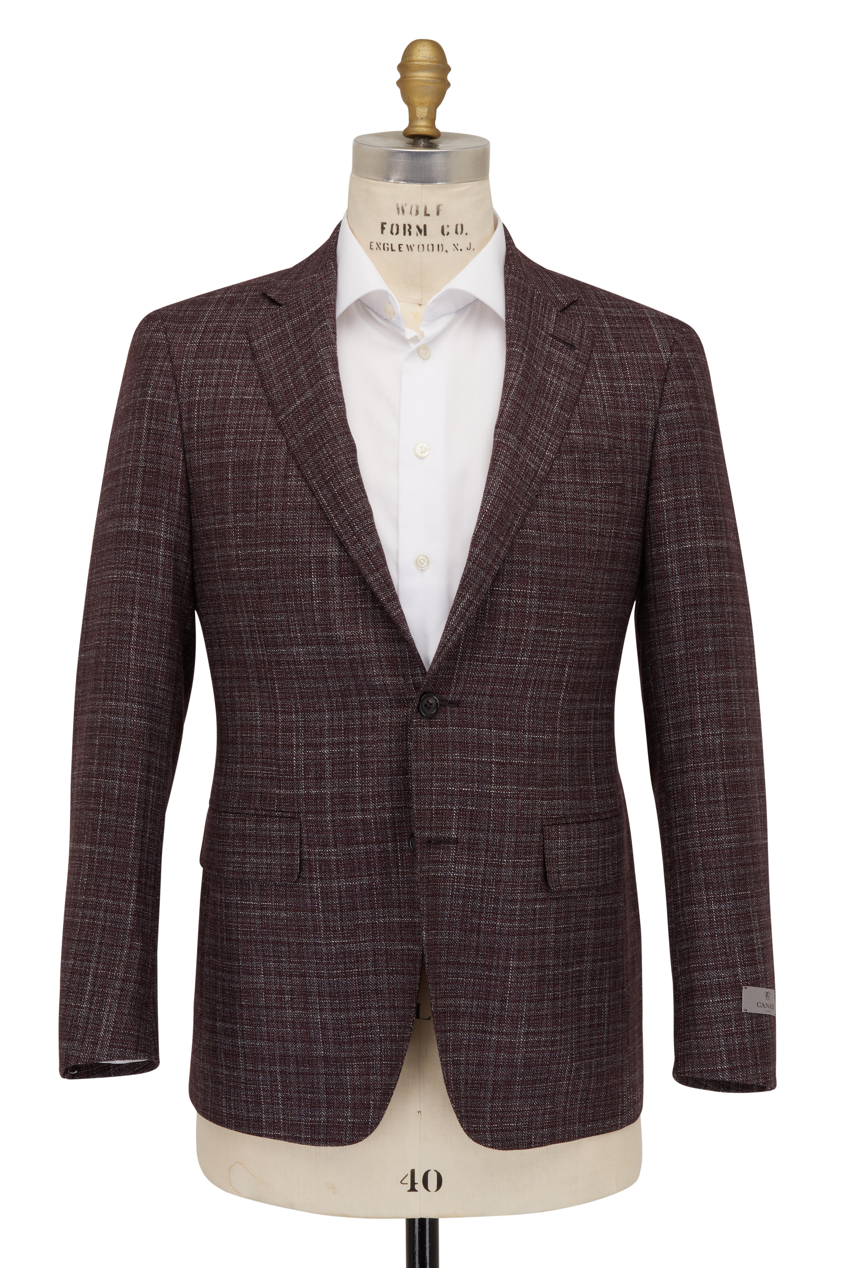 Notched lapels. Two button closure. Lower flap pockets; chest welt pocket. Double vent. Made in Italy. 86% wool, 10% silk, 4% cashmere; fully lined. Dry clean.