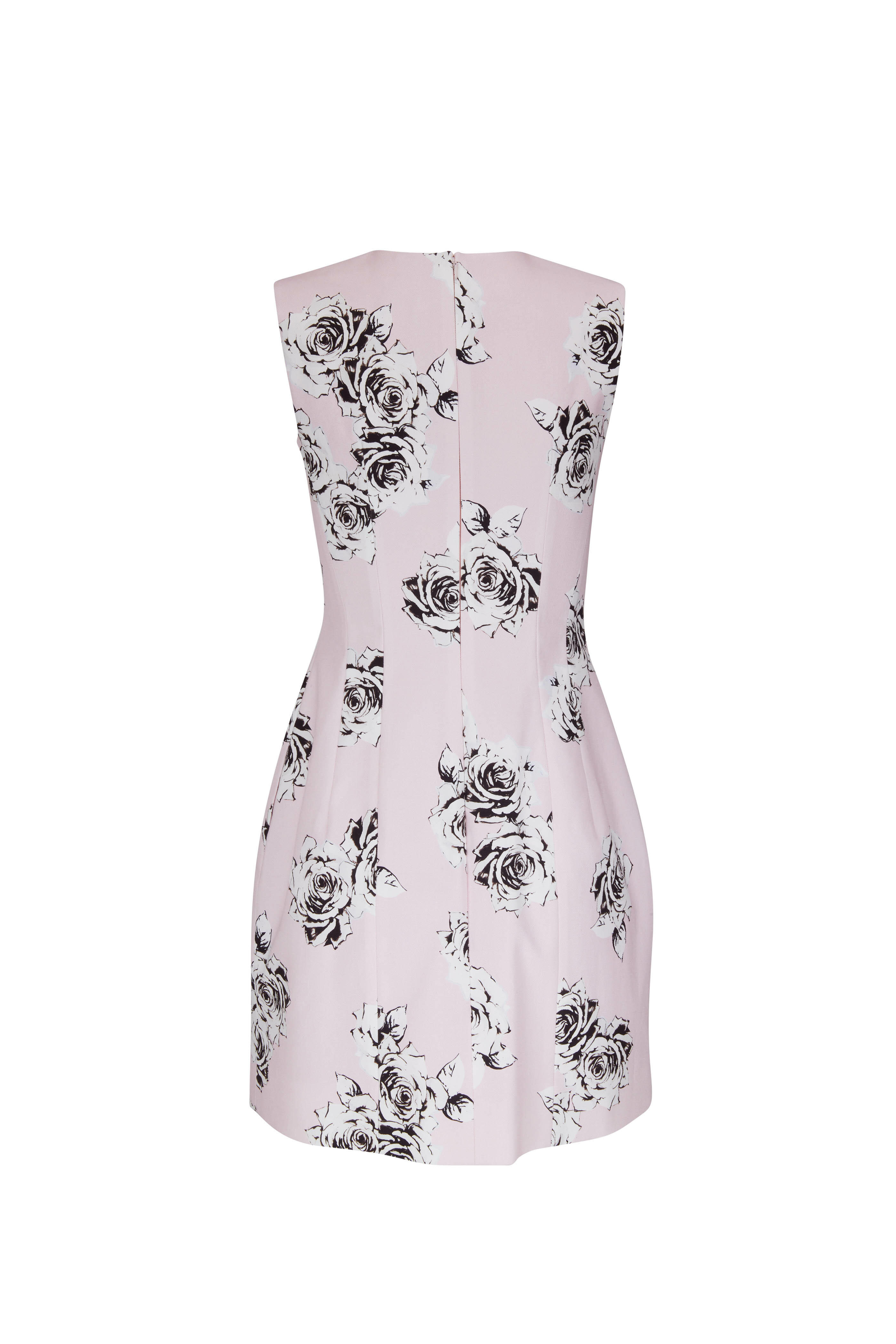 Jewel neckline. Concealed back zip. Concealed side seam pockets. Made in the USA. 34" shoulder to hem. 98% cotton, 2% elastane; Lining: 100% silk. Dry clean.