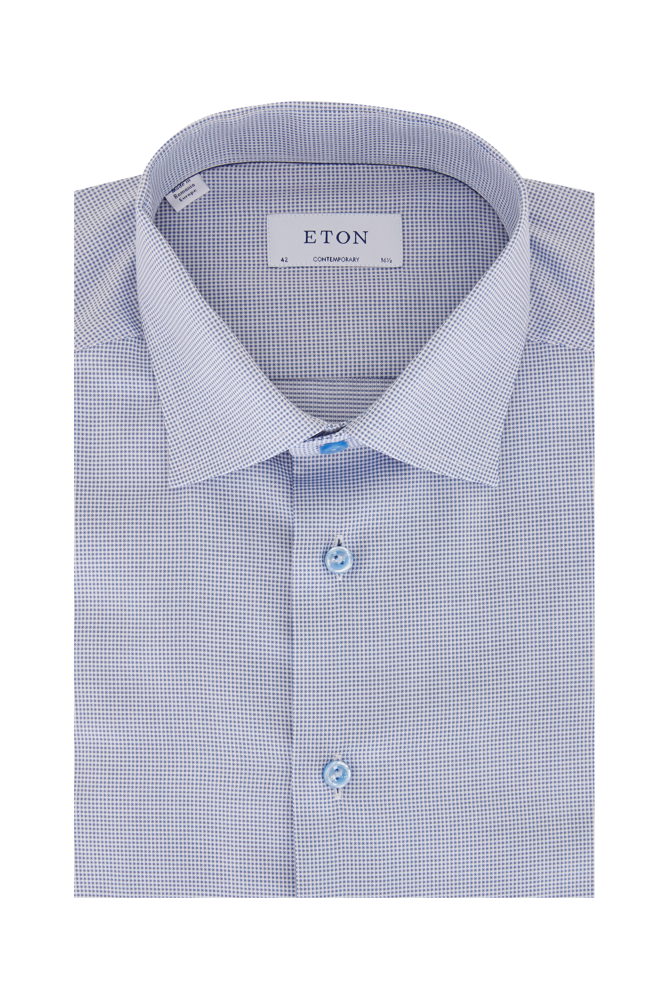 Spread collar. Button down collar. Single button mitered cuffs. Imported. Contemporary fit. 100% cotton. Dry clean.