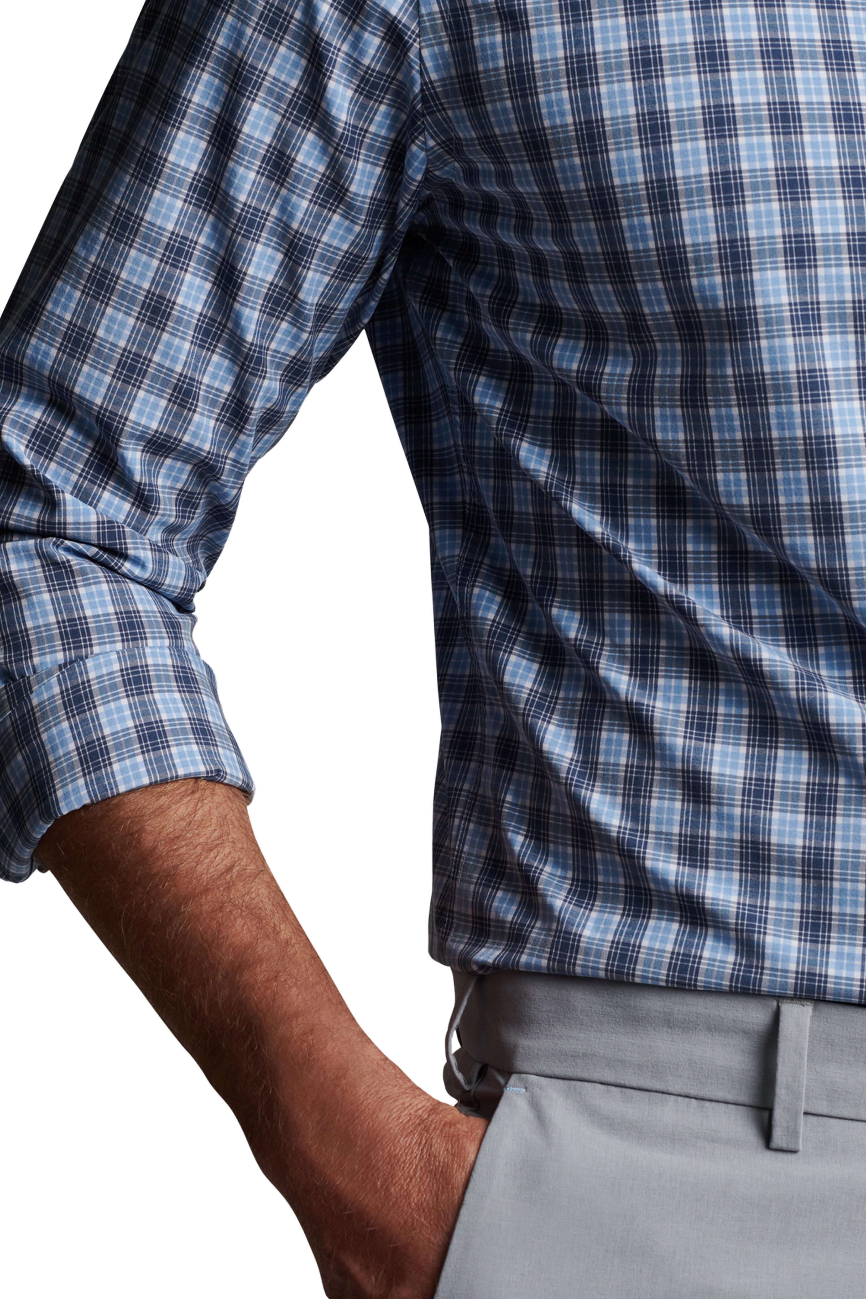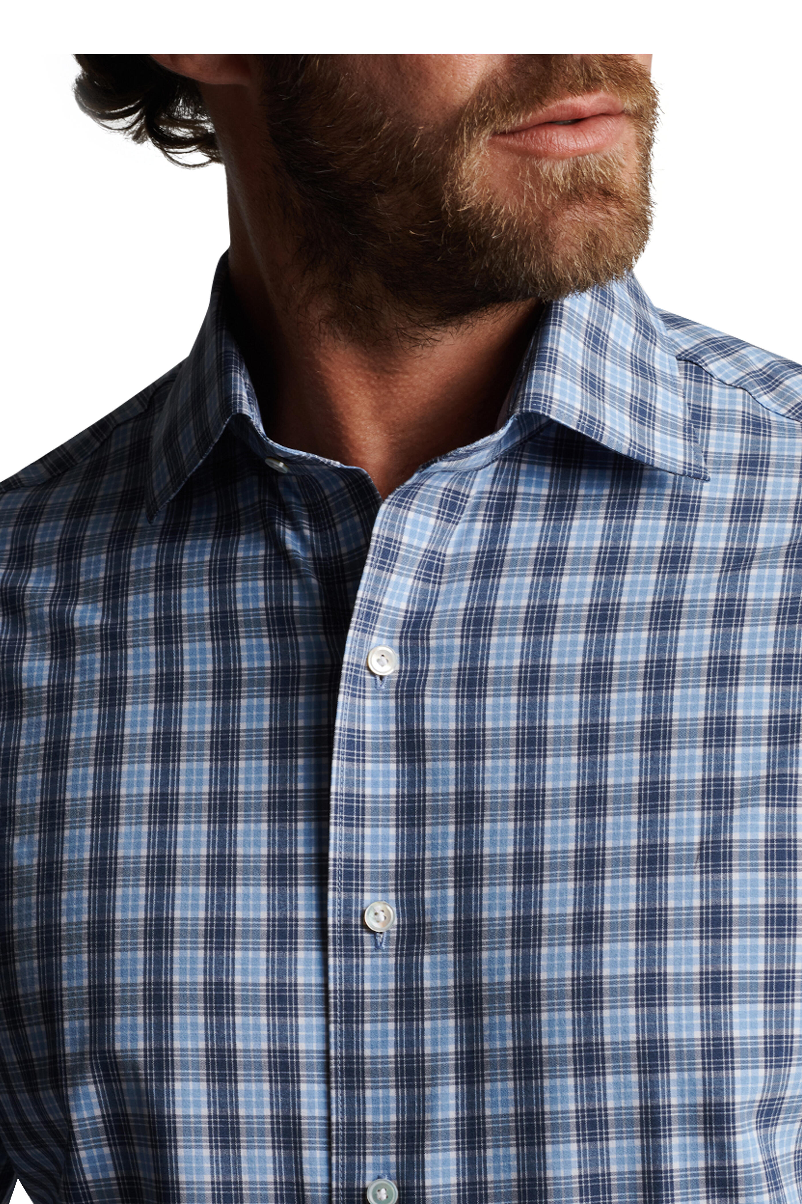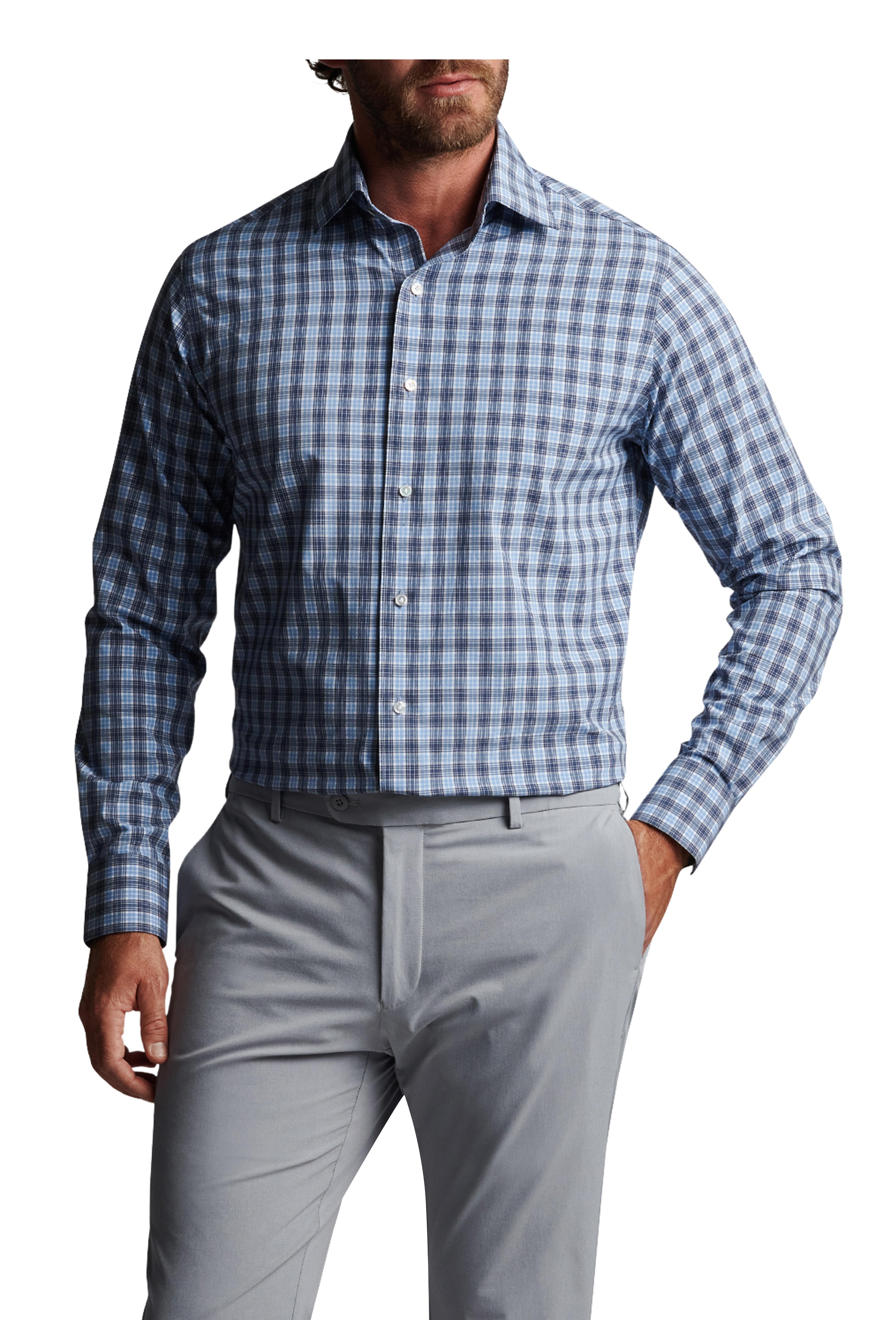 Spread collar. Adjustable button mitered cuffs. Imported. 100% cotton. Machine wash.