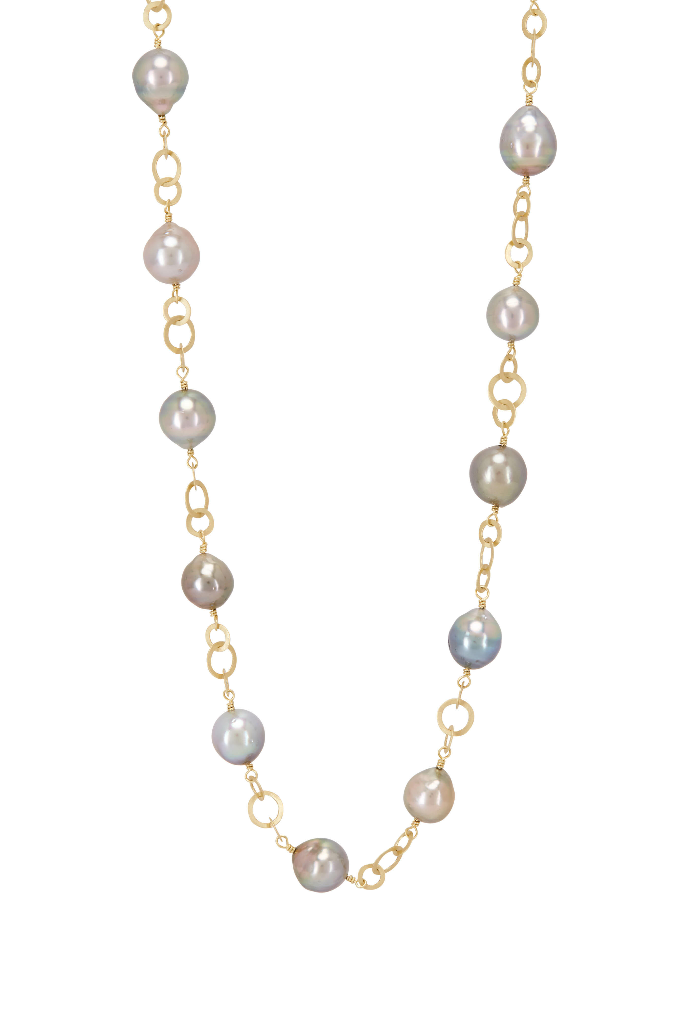 Tahitian Gray Pearls. 18K Yellow Gold. Measures:18". Handcrafted in USA.