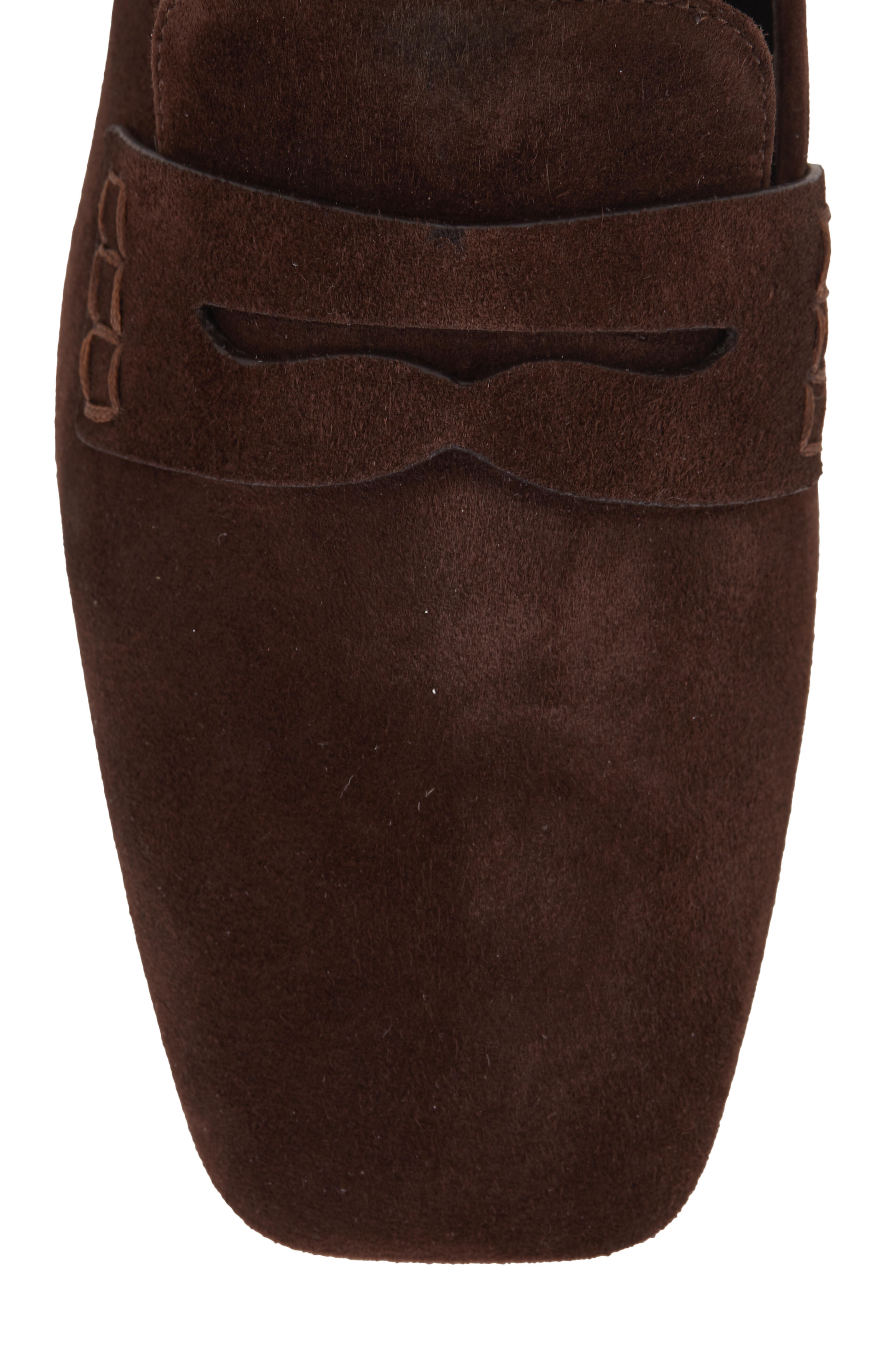 Suede upper. Square toe. Penny strap at vamp. Leather lining and insole. Leather lining. Made in Italy.