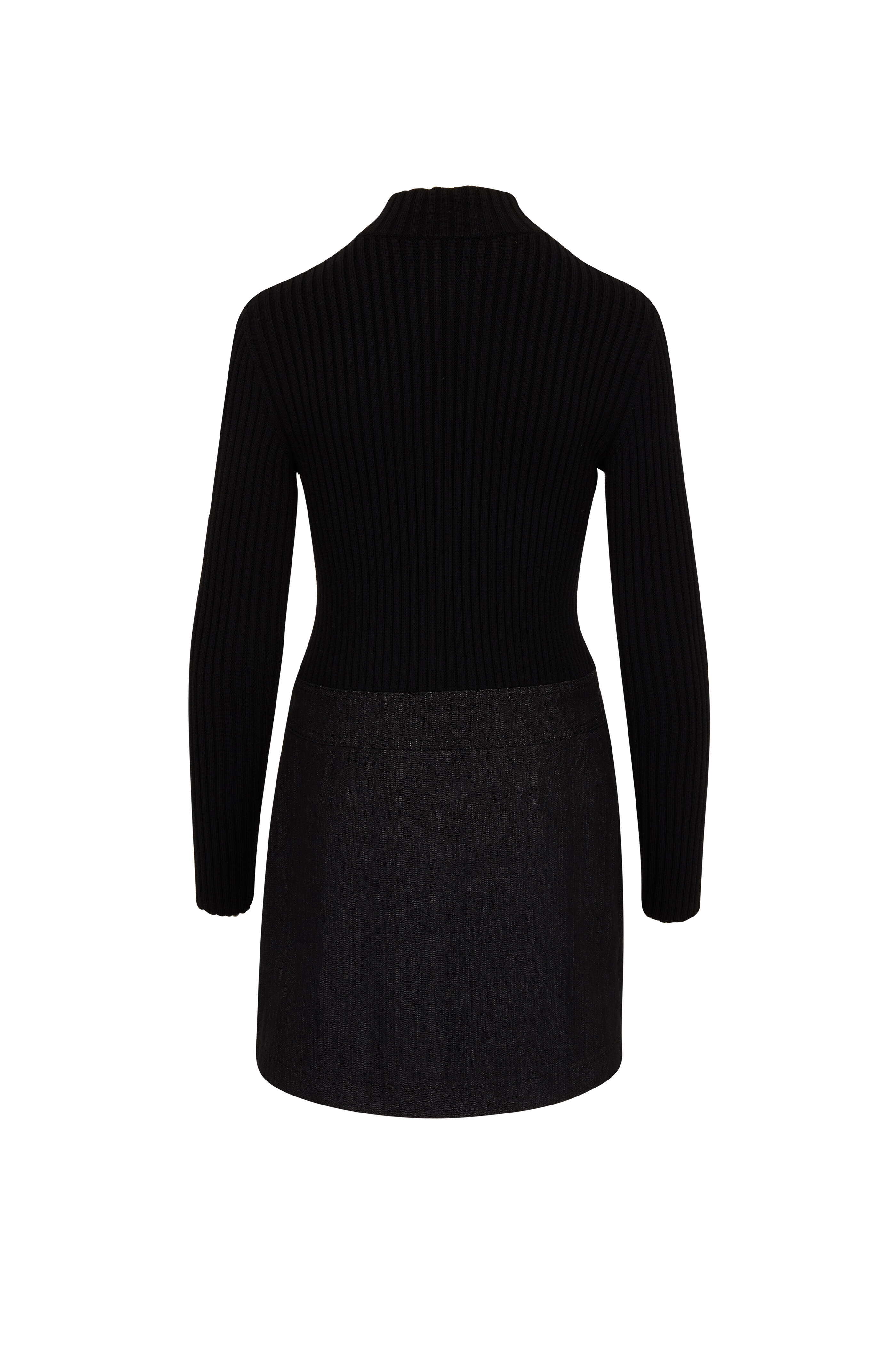 Black Knit & Denim Zip Dress
