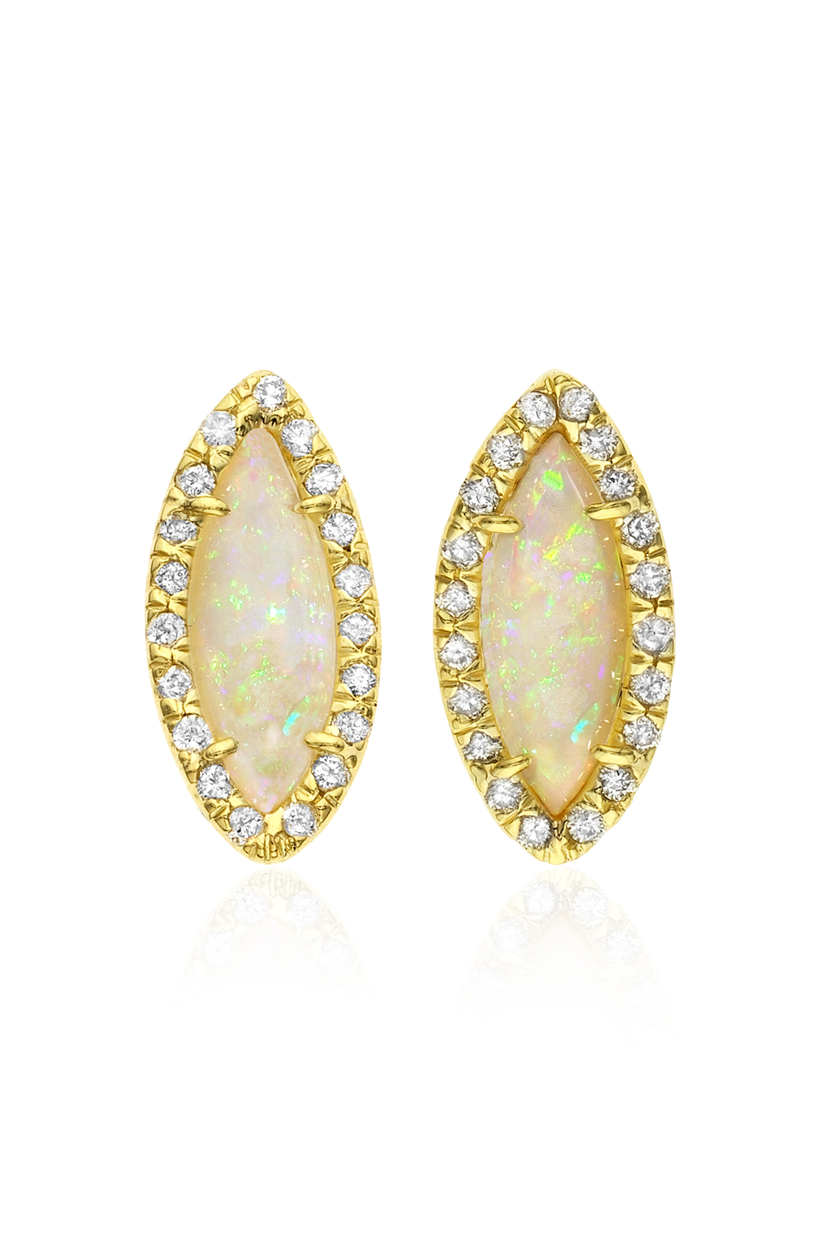 18k yellow gold. .50 carat marquis opal. .58 carat diamonds.