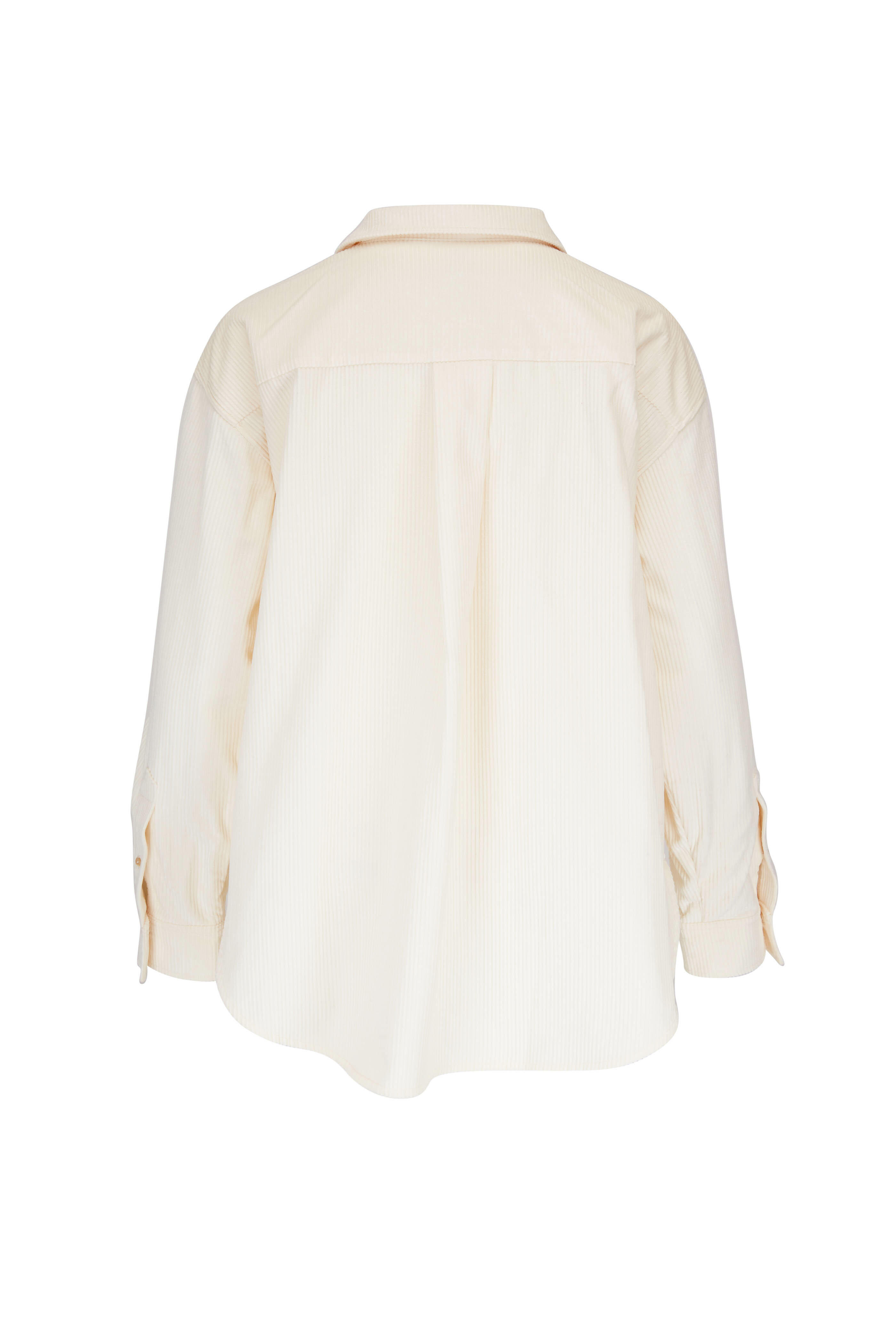 Spread collar. Button placket. Single button squared cuffs. Imported. 76% cotton, 24% viscose. Machine wash.