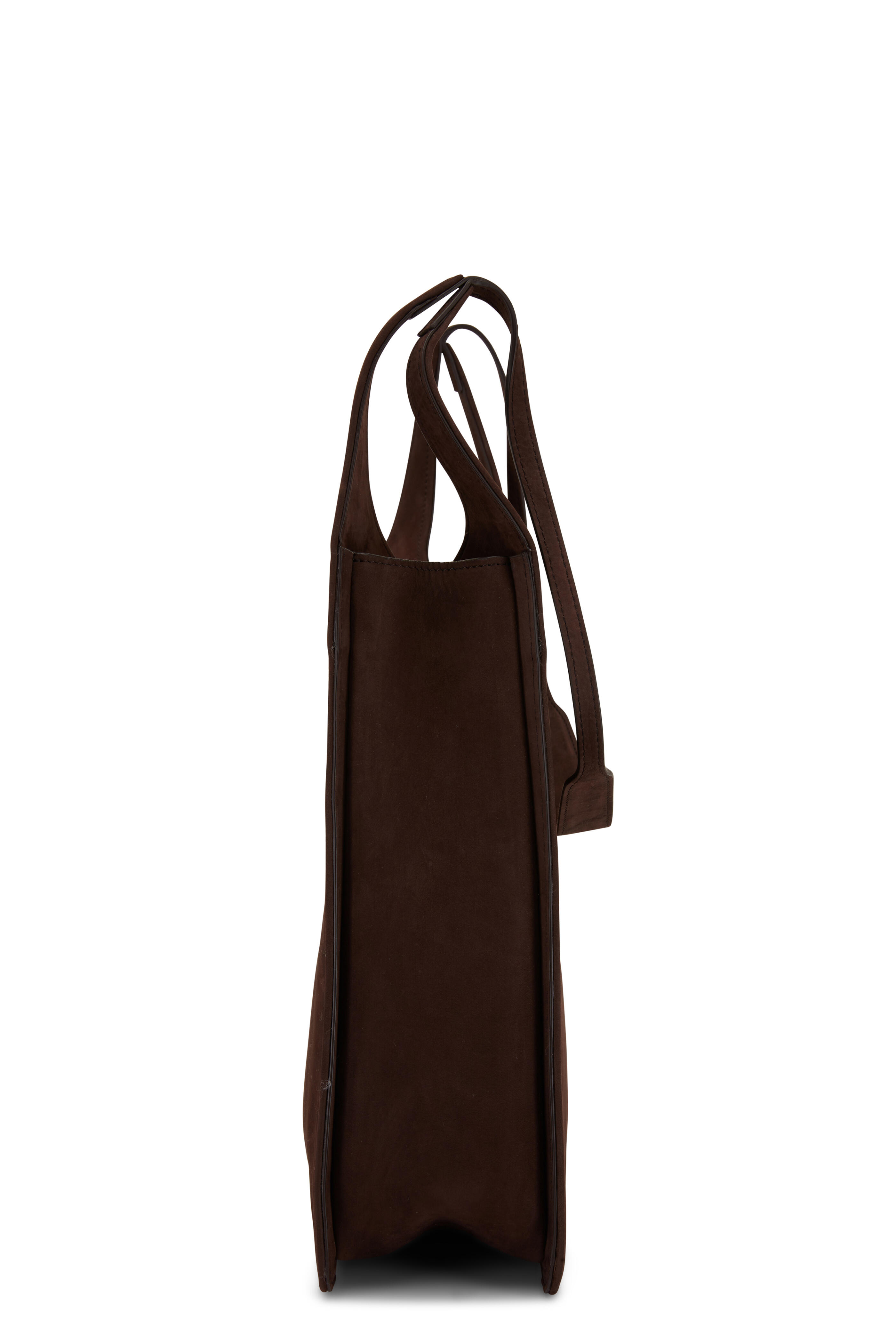 Suede. Single top handle. Magnetic closure. Interior pocket. Made in Italy. 11.5"W x 12"H x 4"D. Strap drop: 17".