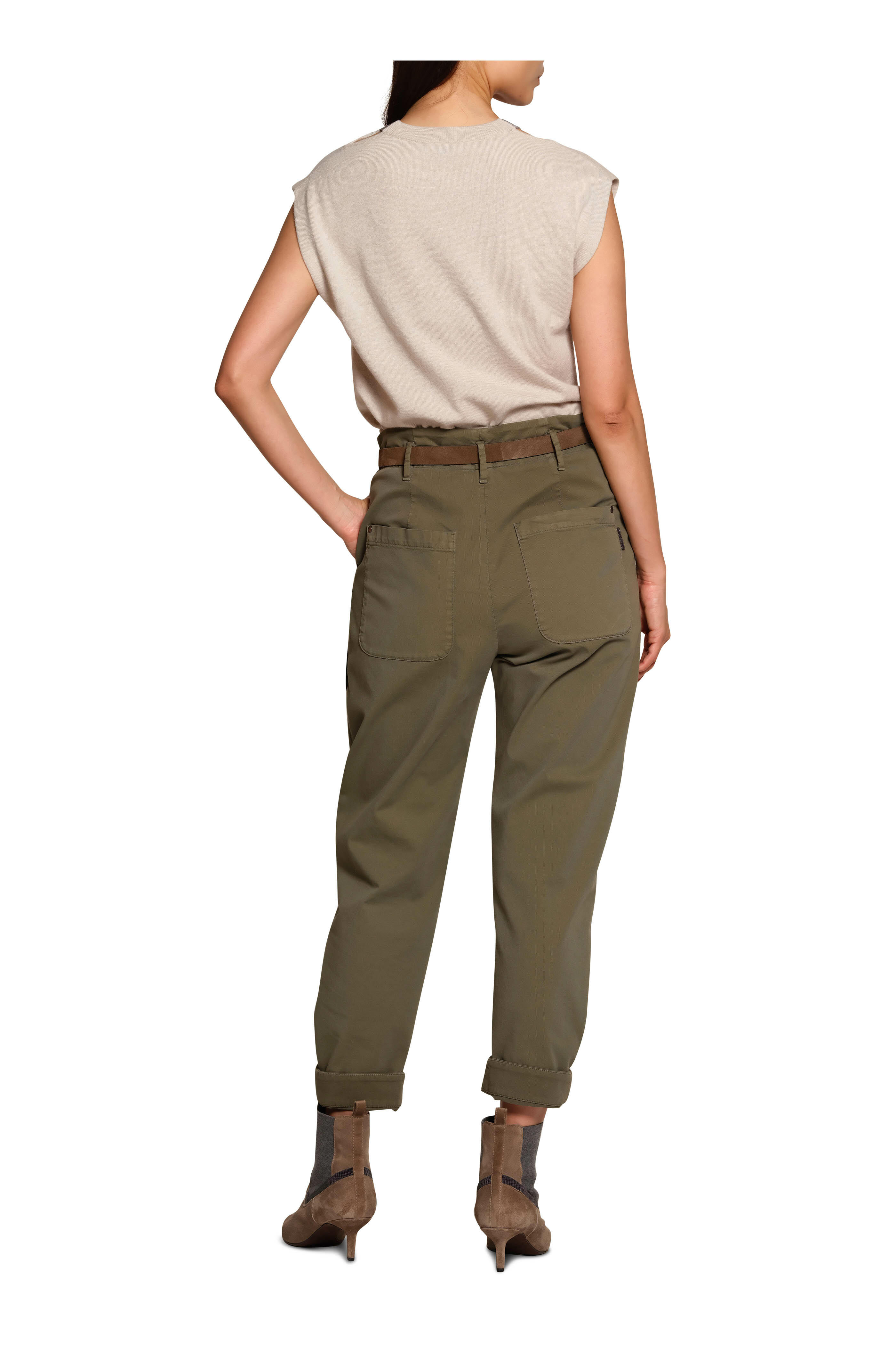 Zip fly with button. Belt loops. Side slash pockets; back patch pockets. Folded cuffs. Made in Italy. 96% cotton, 4% elastane. Machine wash.