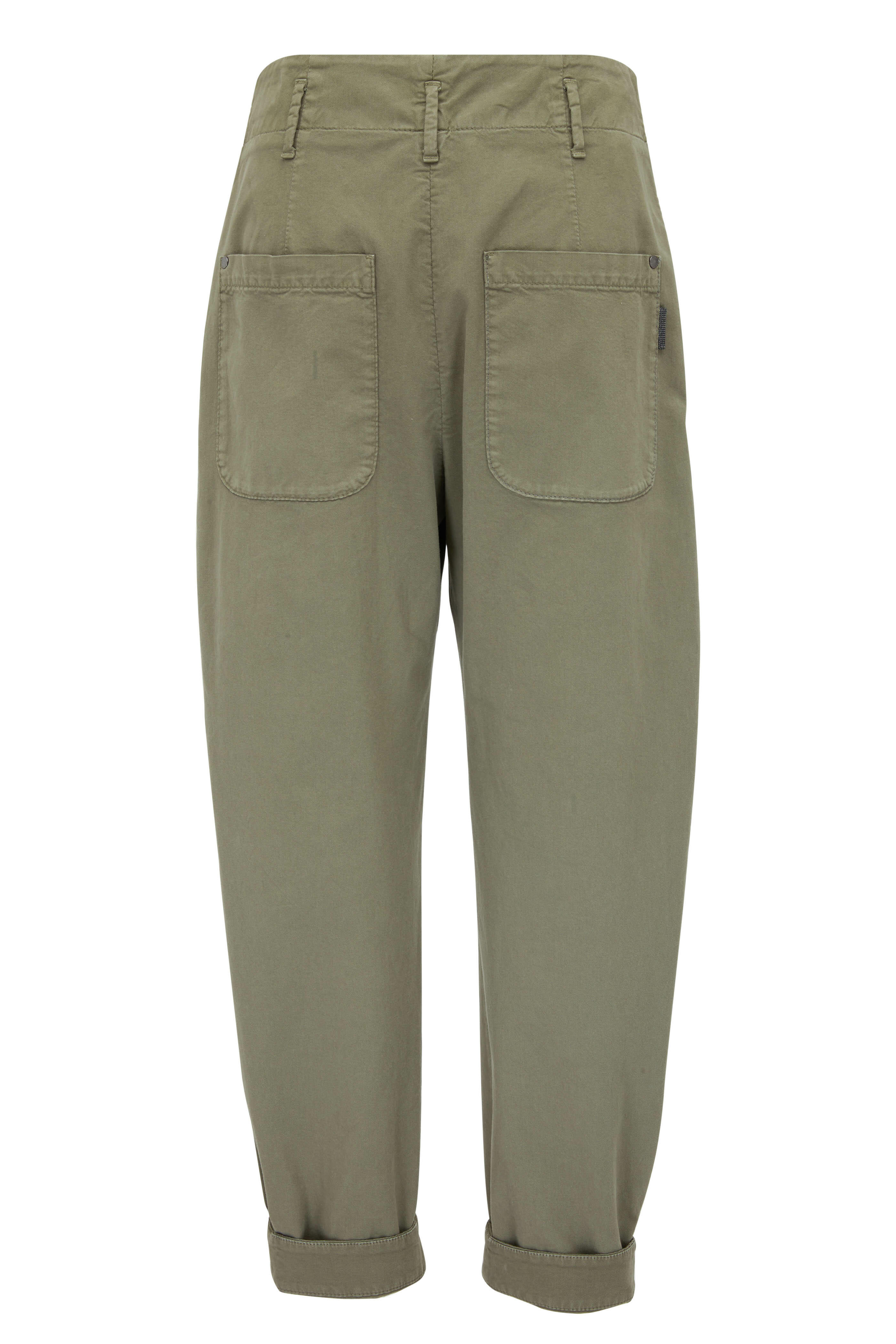 Olive Green Garment Dyed Pleated Pant
