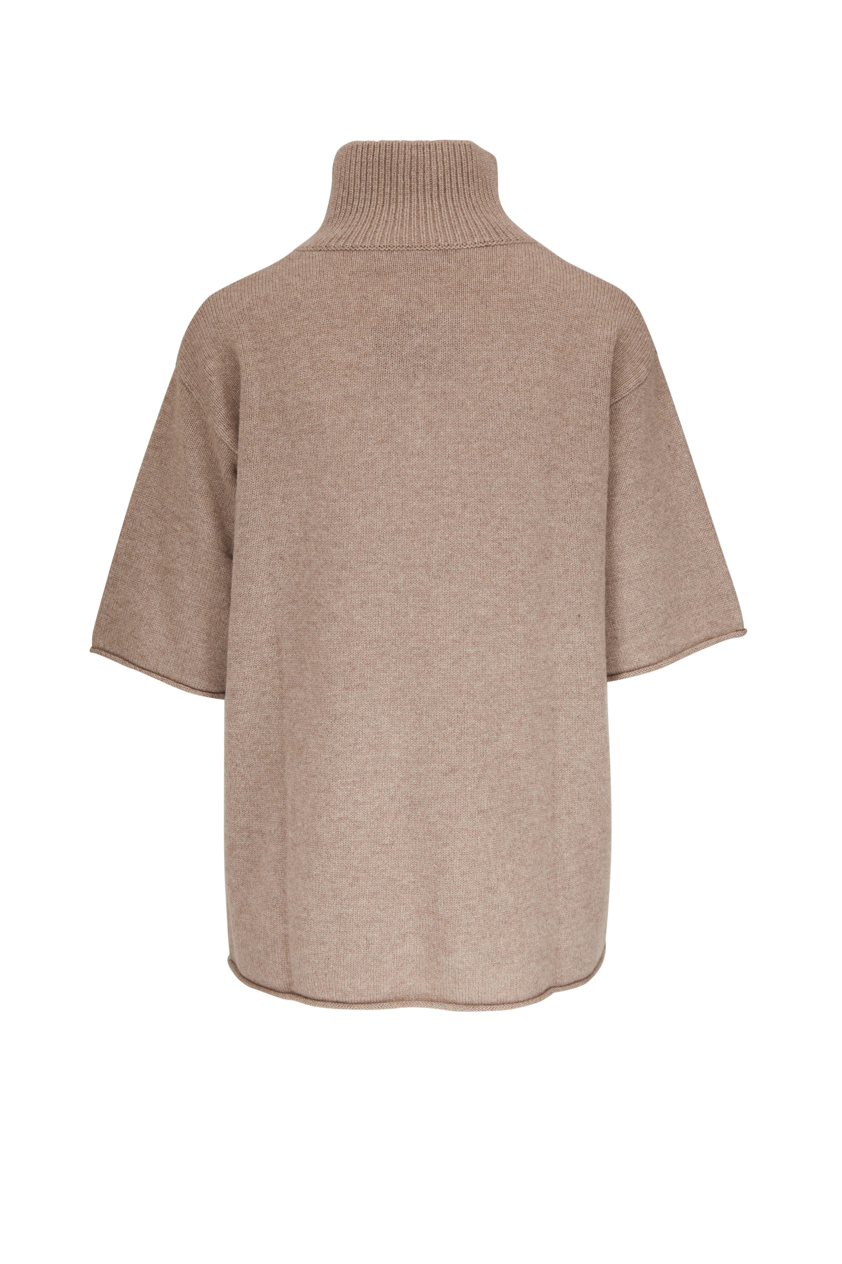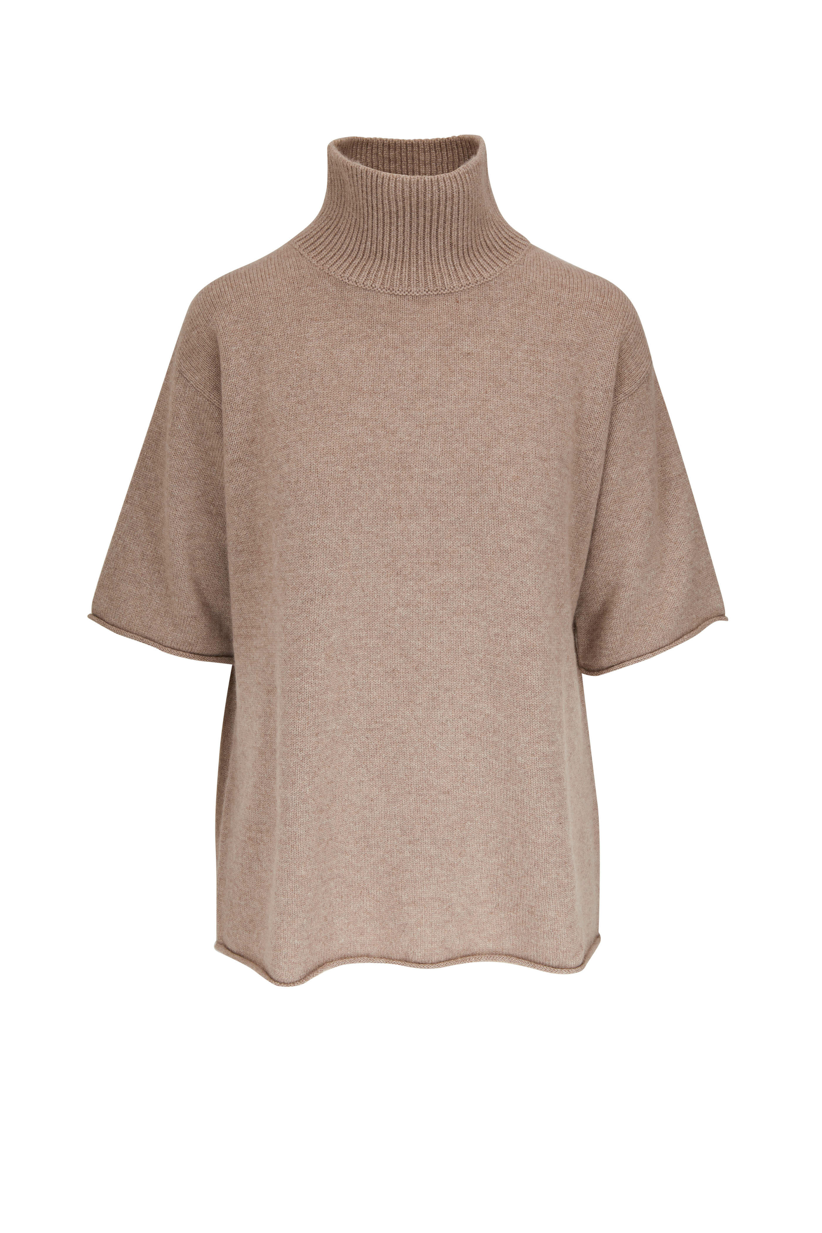 Turtleneck. Short sleeves. Rolled trims. Imported. 100% cashmere. Hand wash.