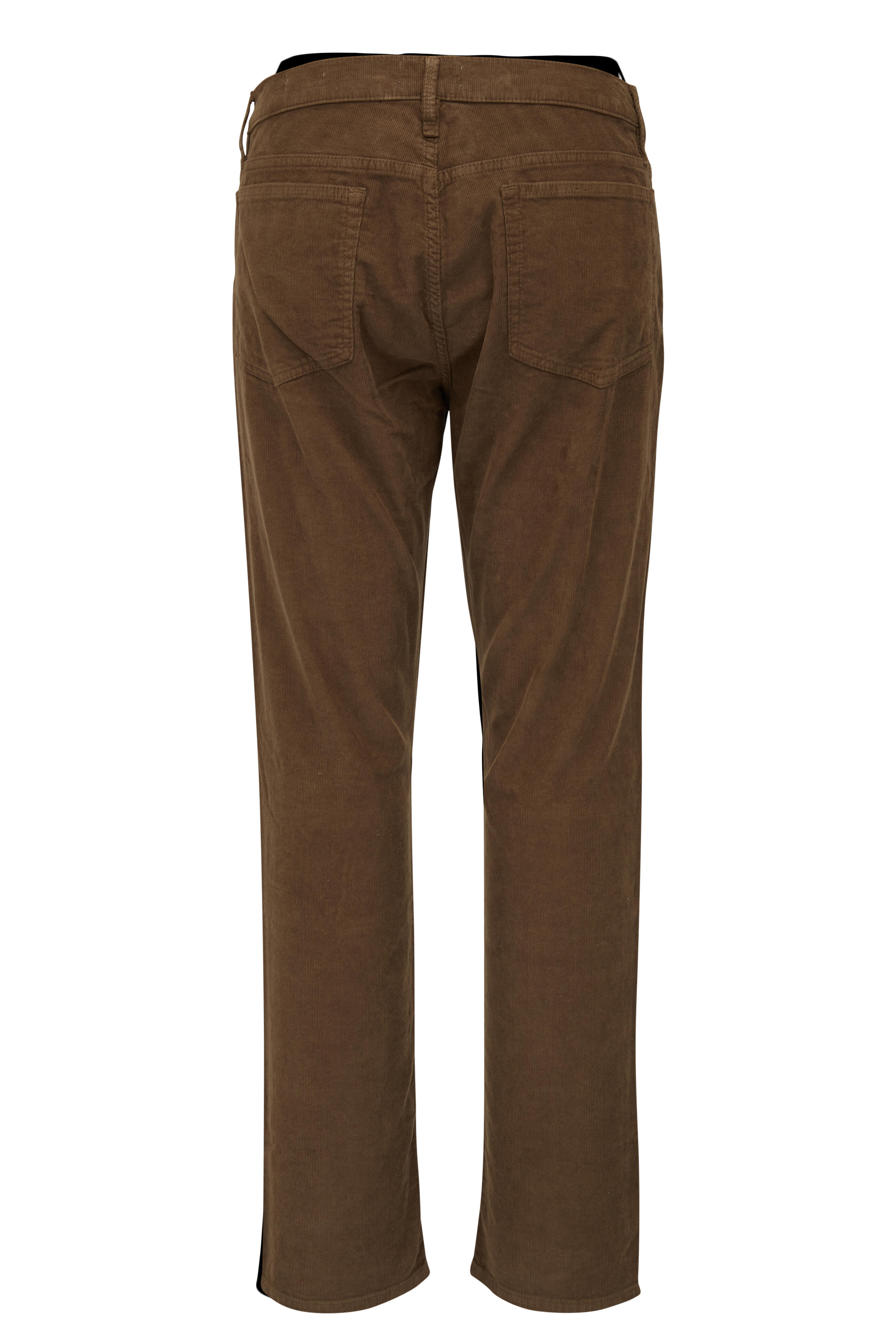 Zip fly; button closure. Five pocket styling. Imported. Slim straight. Standard mid-rise waist. Slight tapering at the hem. 34" inseam. 98% cotton, 2% elastane. Machine wash.