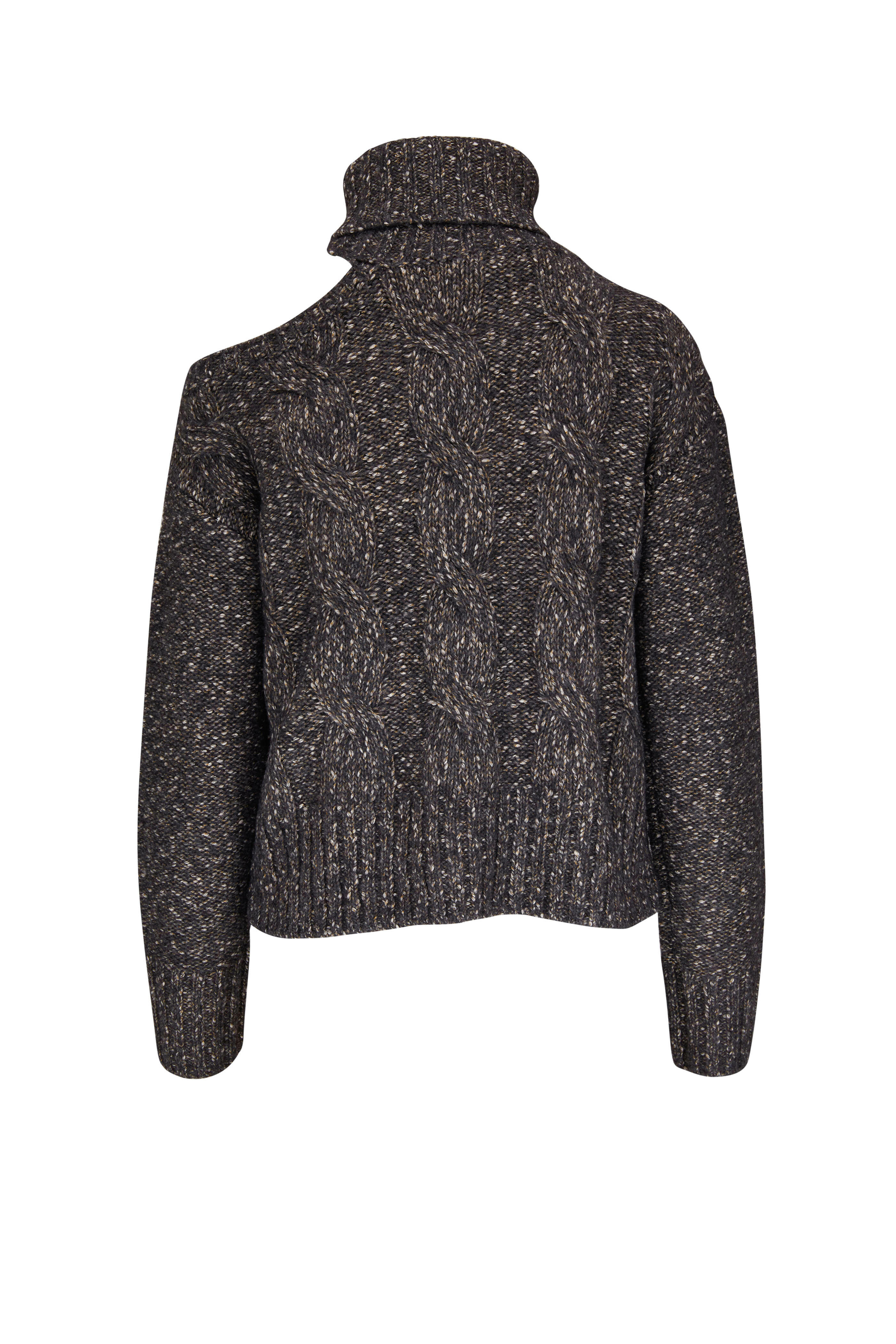 Turtleneck. Cutout shoulders. Ribbed trim. Imported. 50% cotton, 17% polyester, 16% acrylic, 10% merino wool, 7% alpaca. Dry clean.