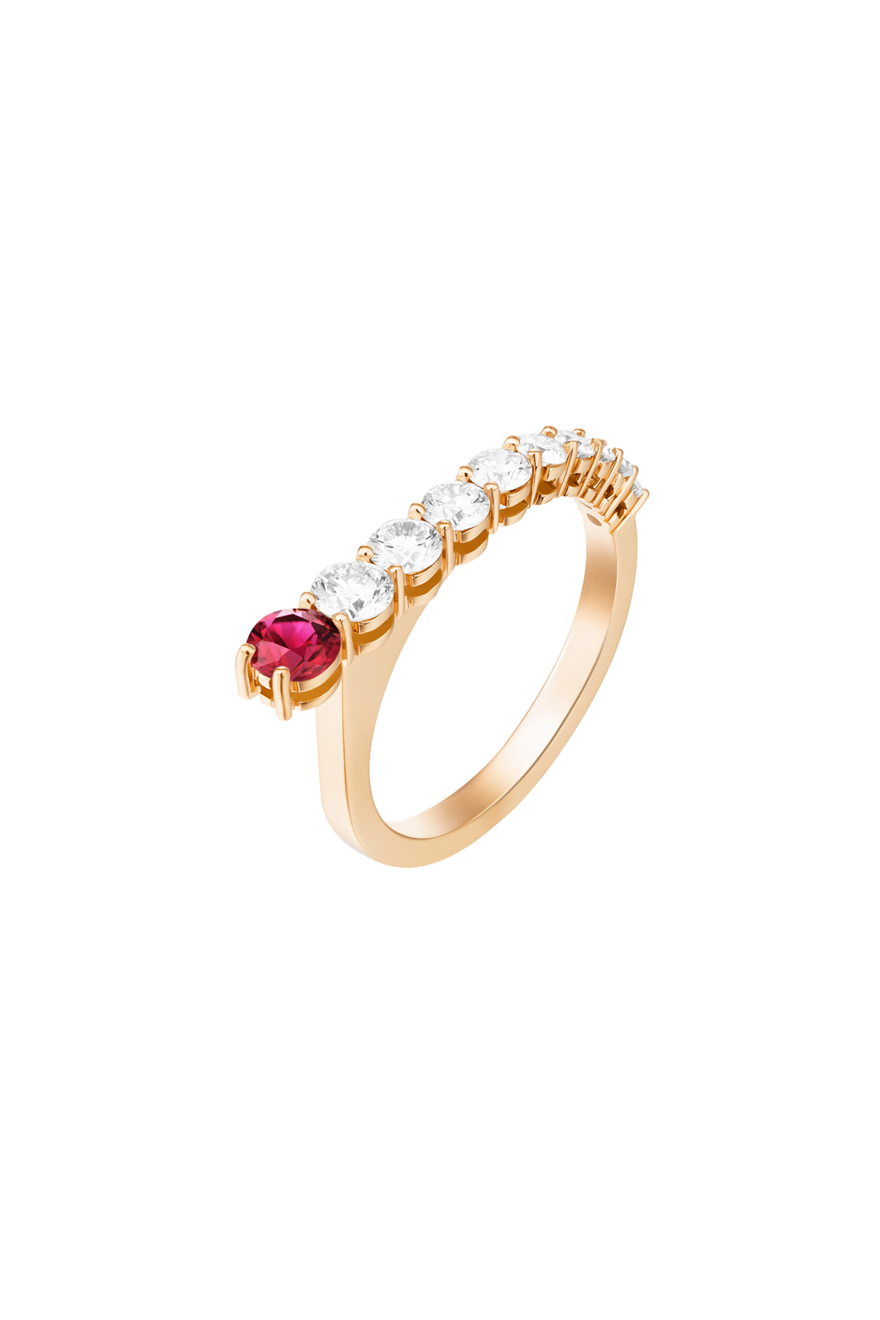 18k rose gold. .25 carat ruby. .69 carat diamonds.