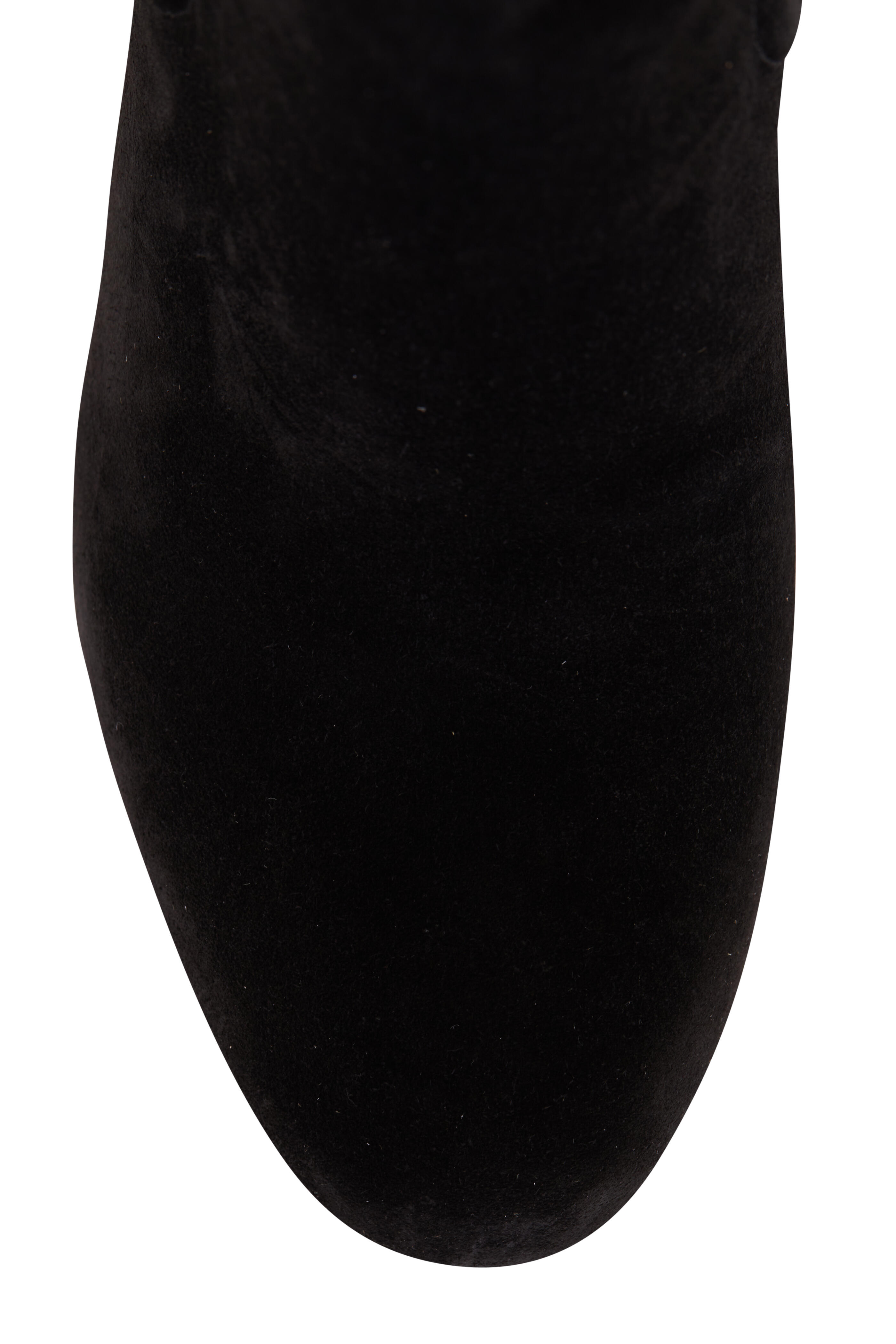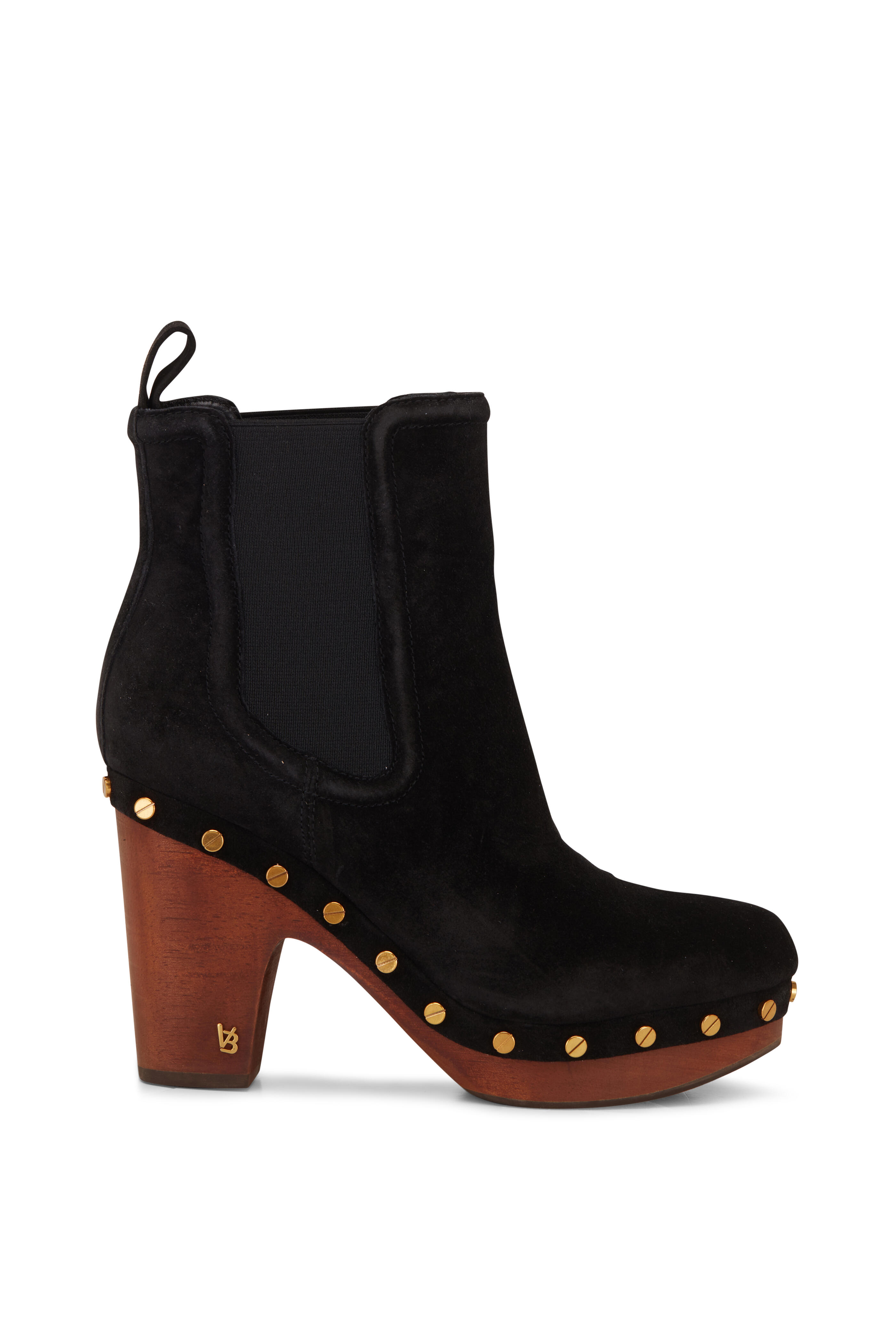 Suede upper. Round toe. Elasticized side gores. Back pull tab. Wood midsole. Rubber sole. Imported. 3.25" heel height.