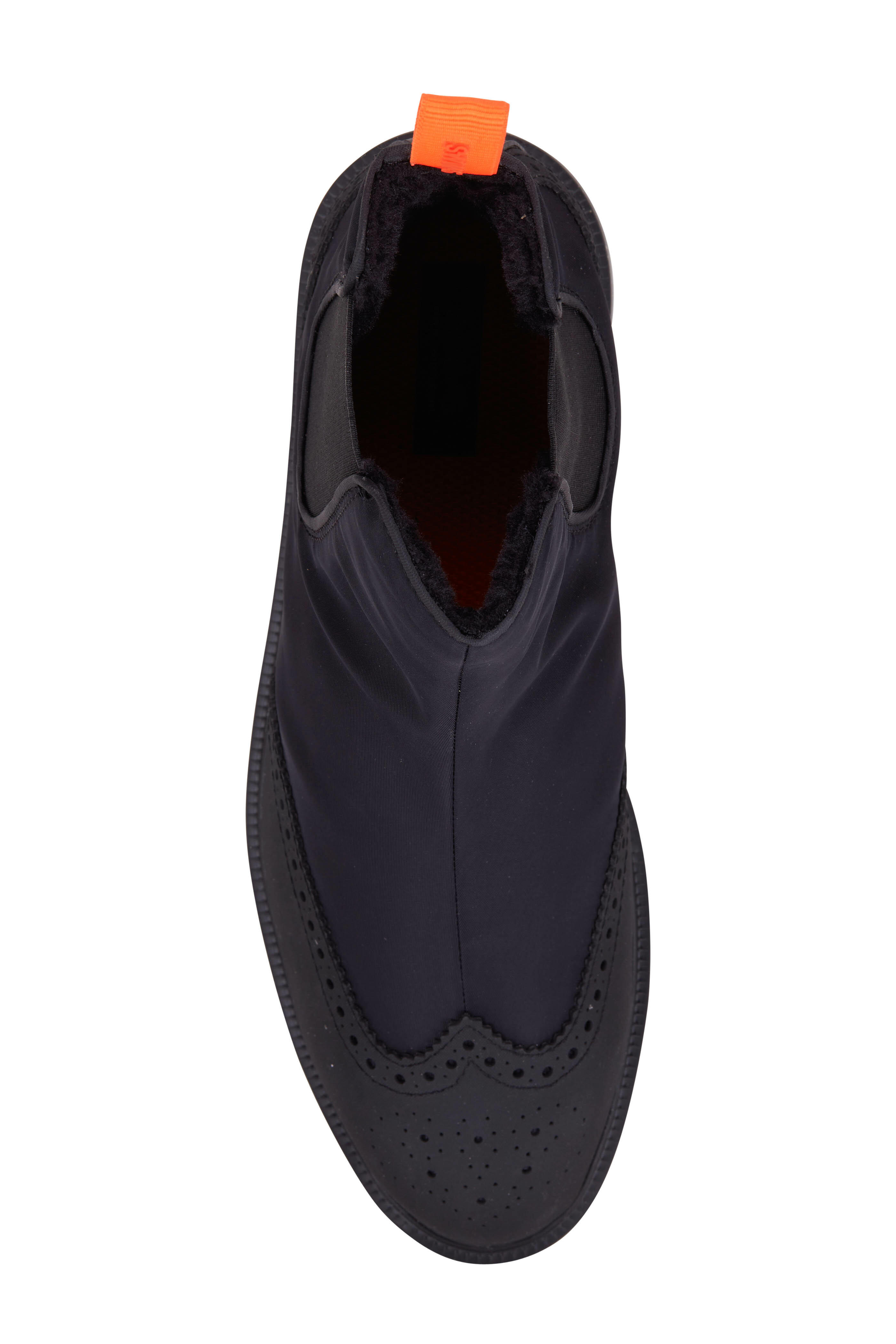 Nylon upper. Wingtip detailed toe. Back pull tab. Elasticized knit side gores. Faux fur lined; cushioned insole. Treaded rubber sole. Imported.