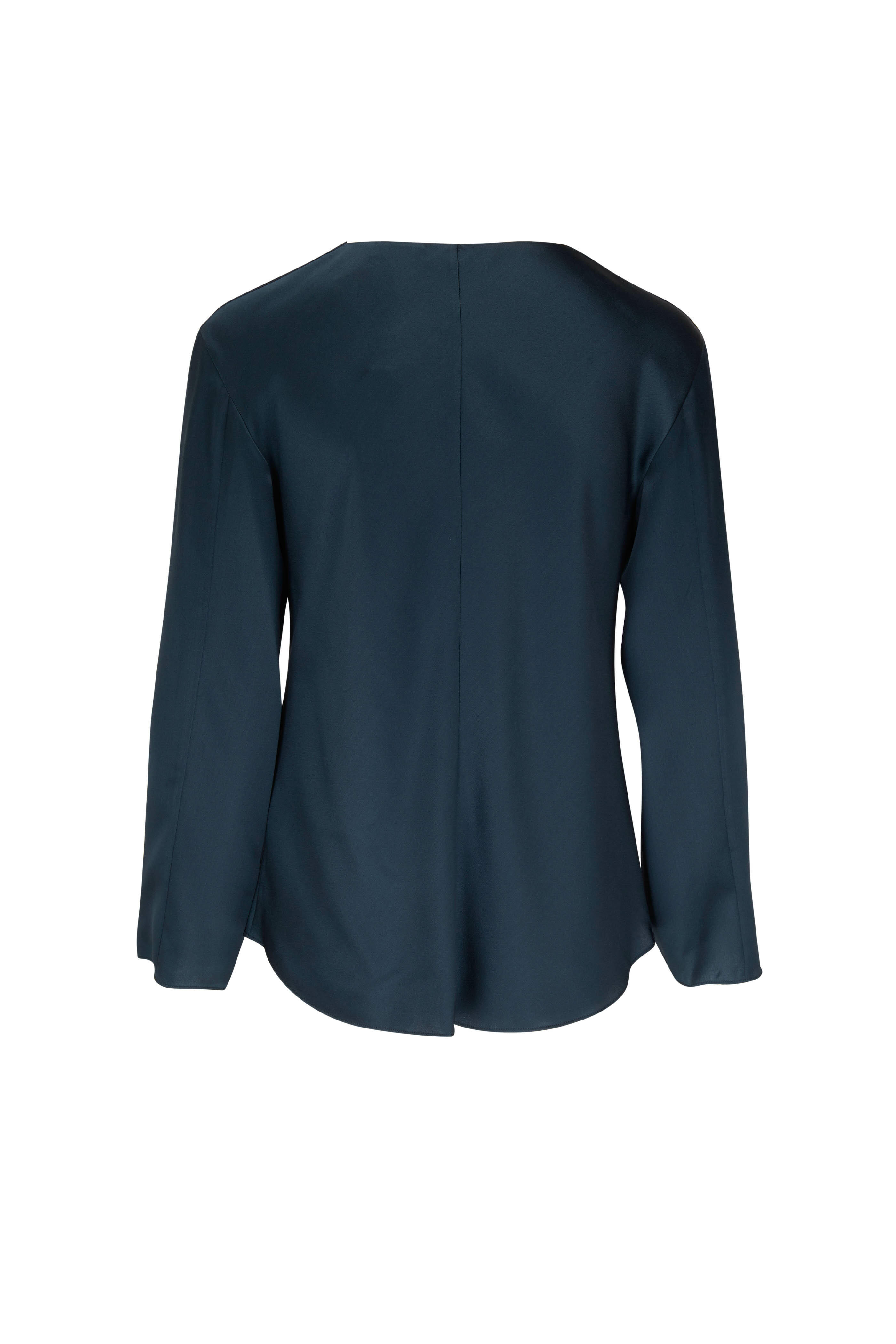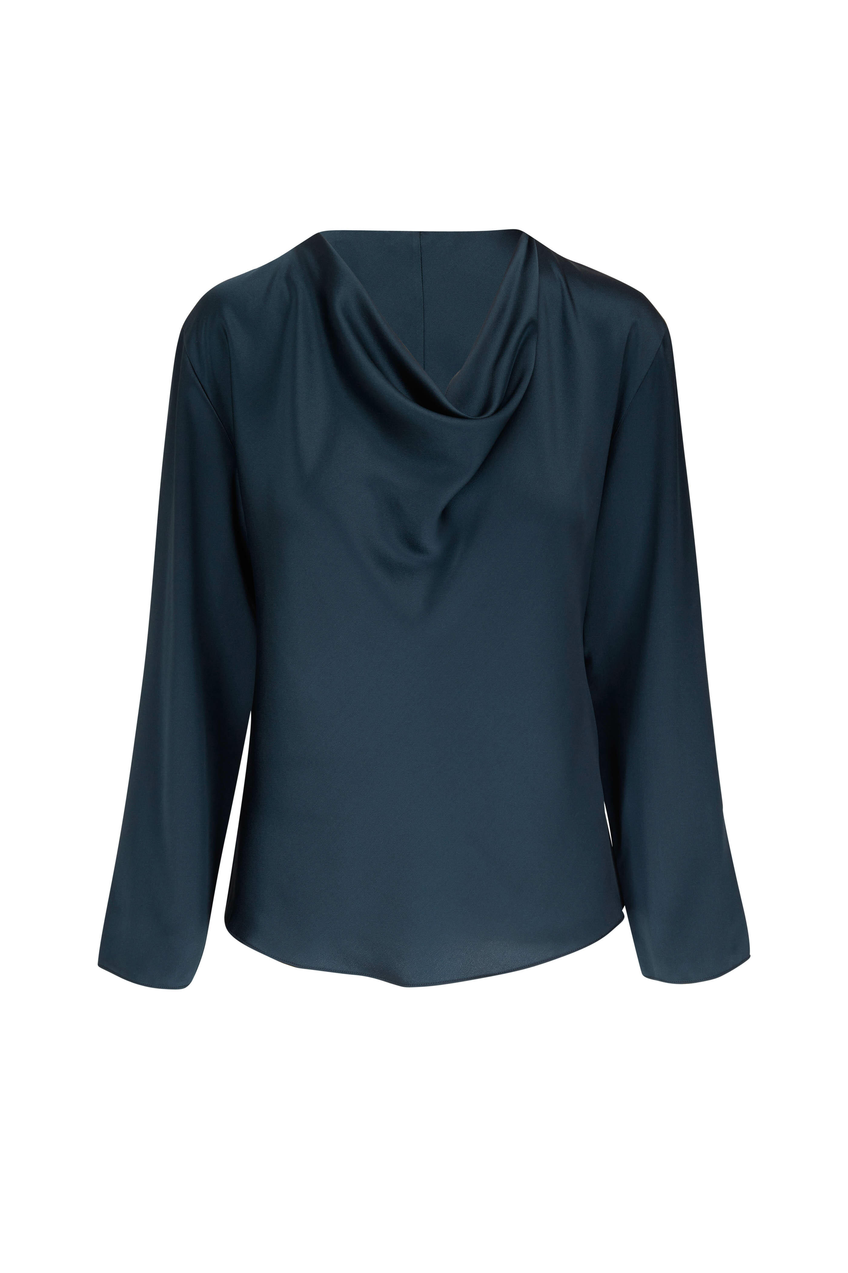 Slips on. Cowl neck. Imported. 100% silk. Hand wash cold or dry clean.