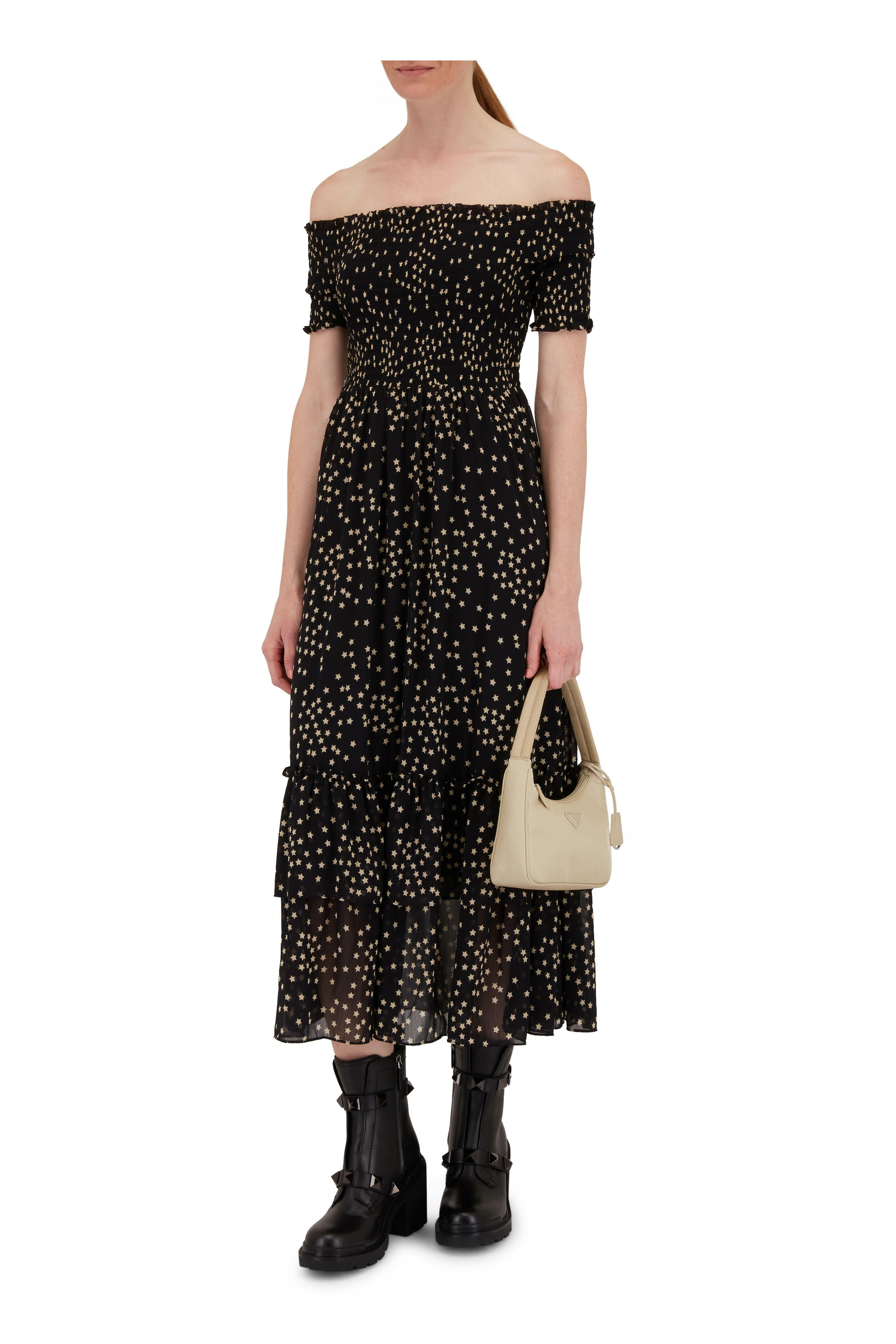 Oriel Black & Tan Star Off-The-Shoulder Dress