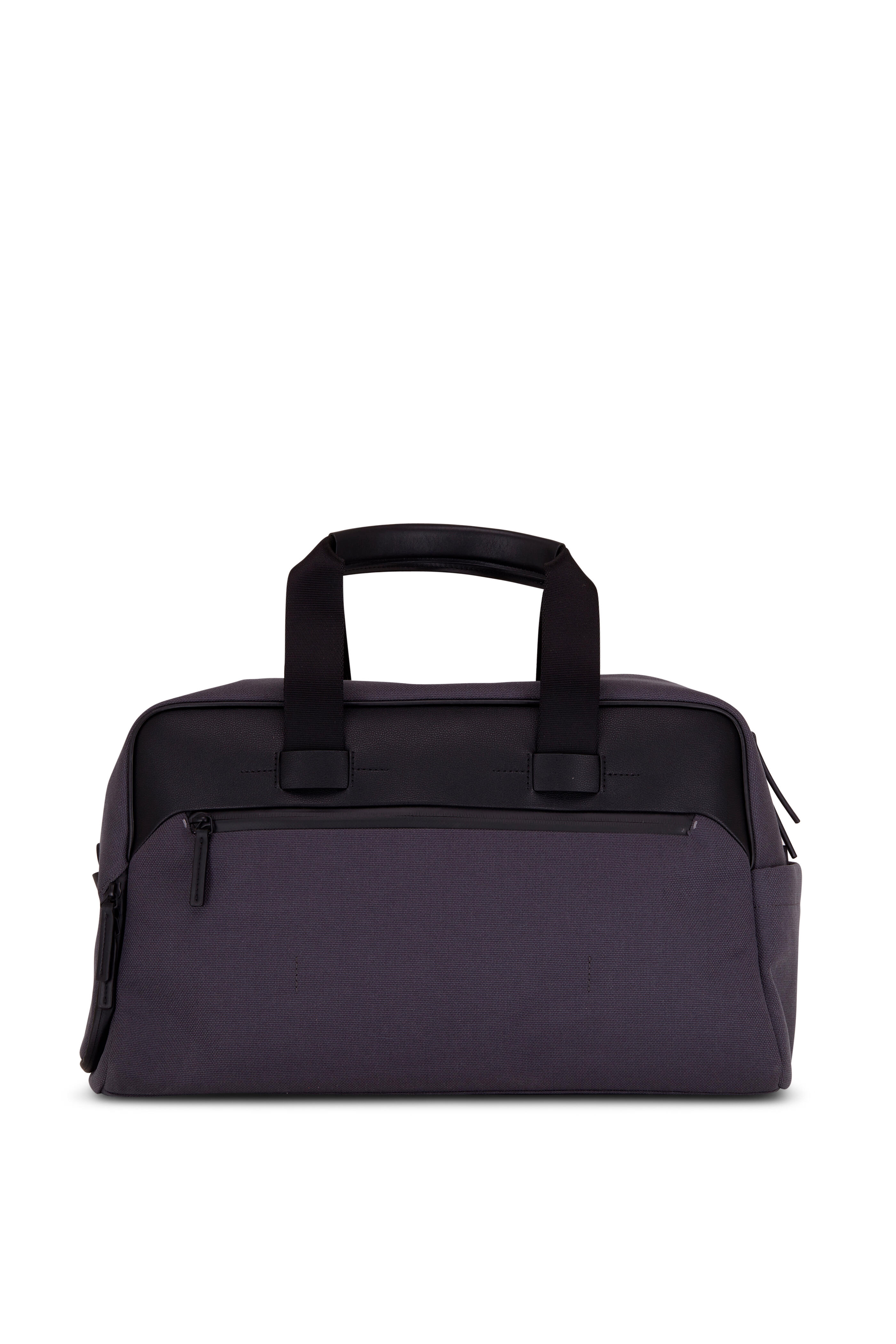 Nylon. Dual top handles; removable woven shoulder strap. Top two-way zip. Exterior slip and patch pocket. Exterior shoe compartment. Interior mesh zip pocket. Leather trim. Imported. 17½" width. 11" height. 7½" depth. 5½" handle drop.